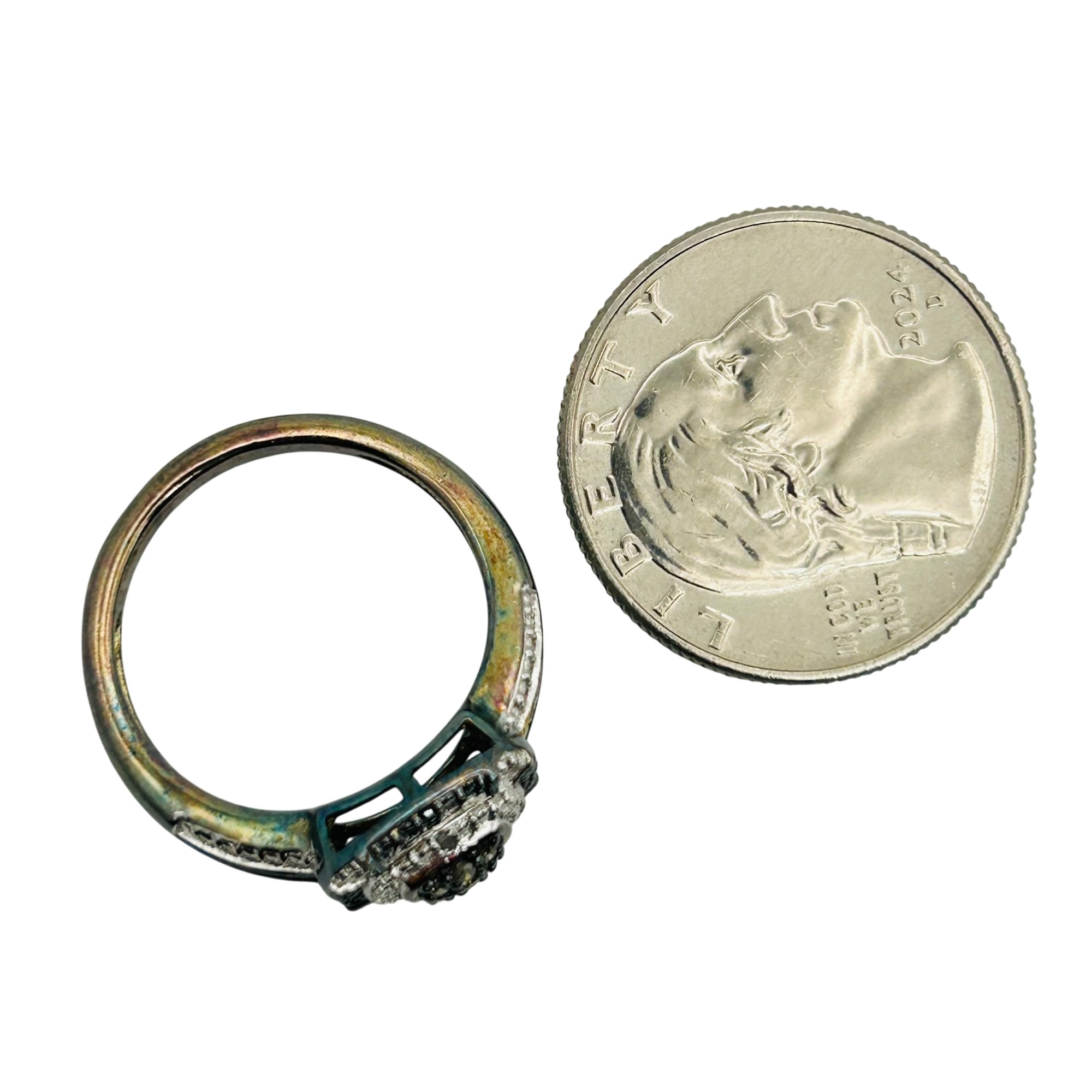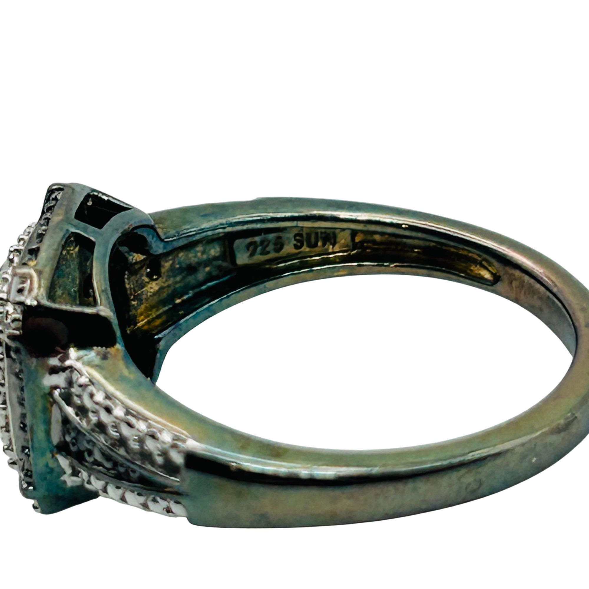 SUN Sterling diamond sapphire engagement ring. Size 8. 4.20g