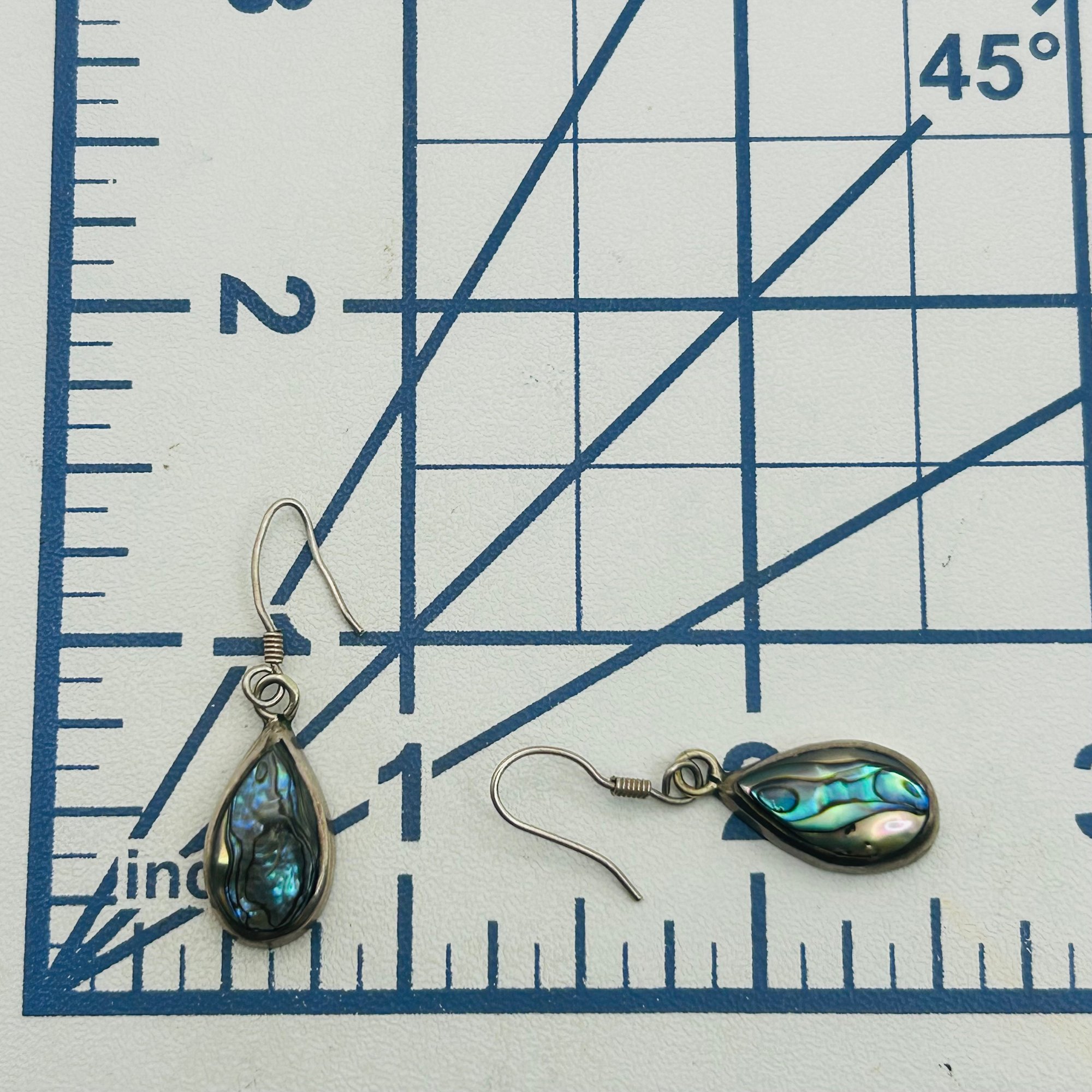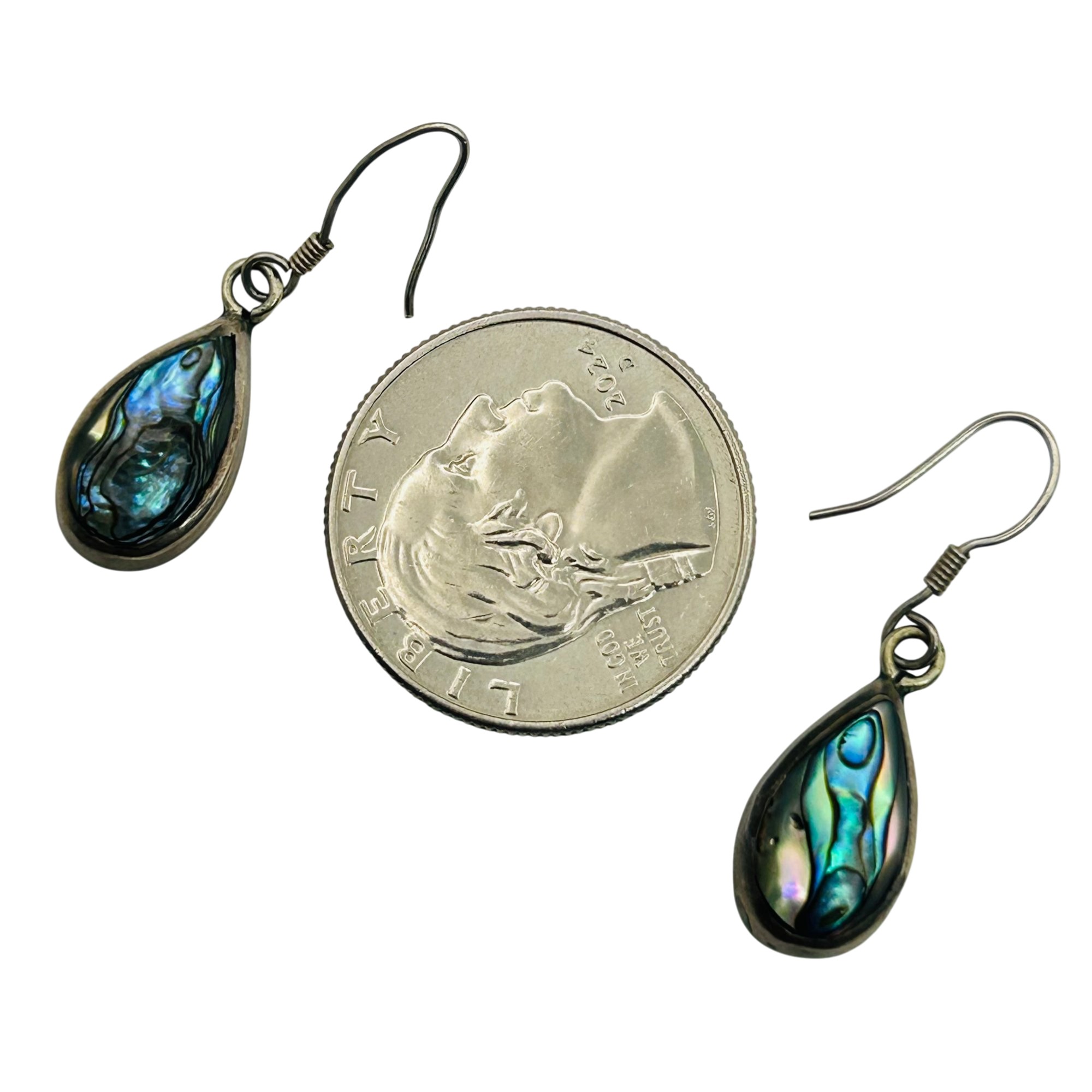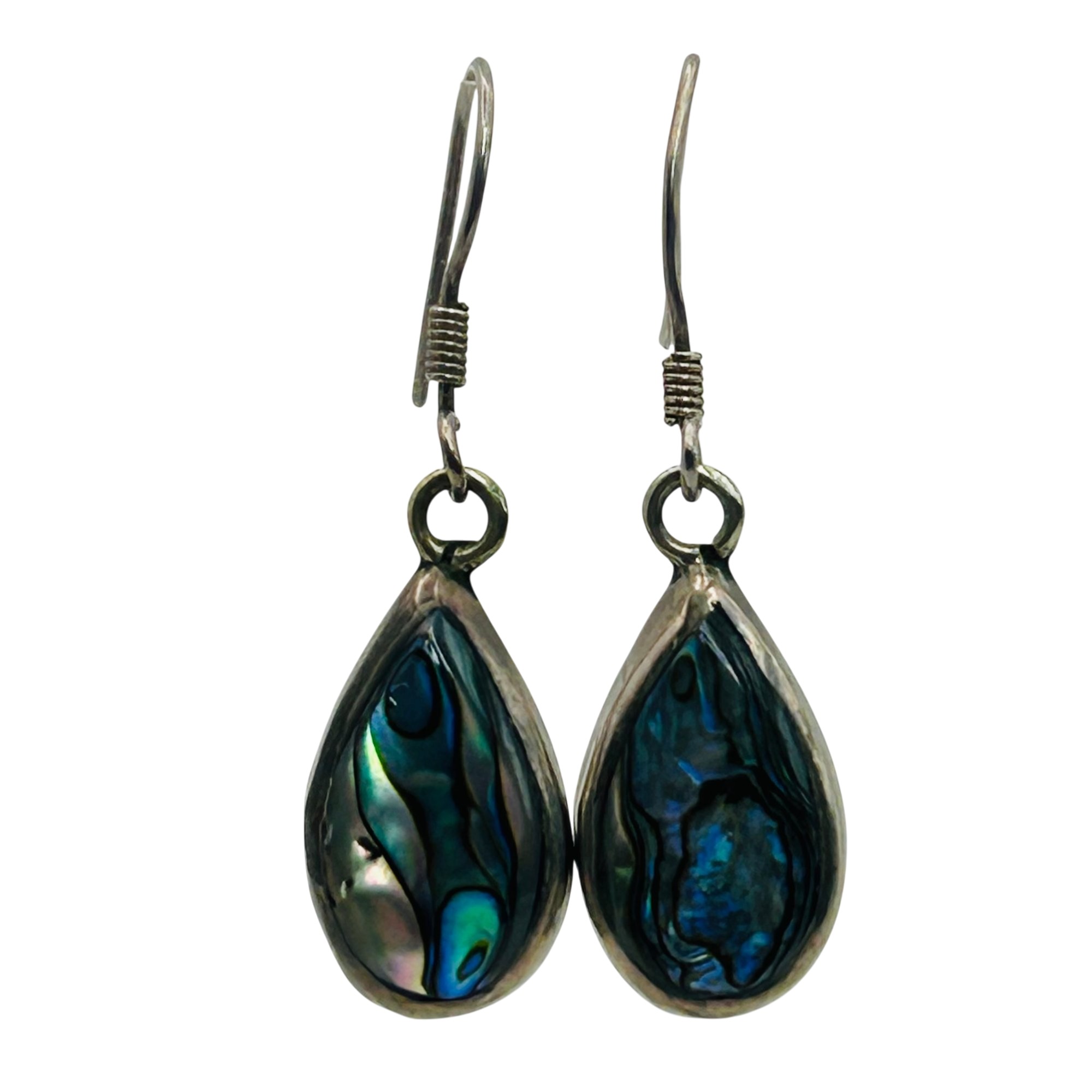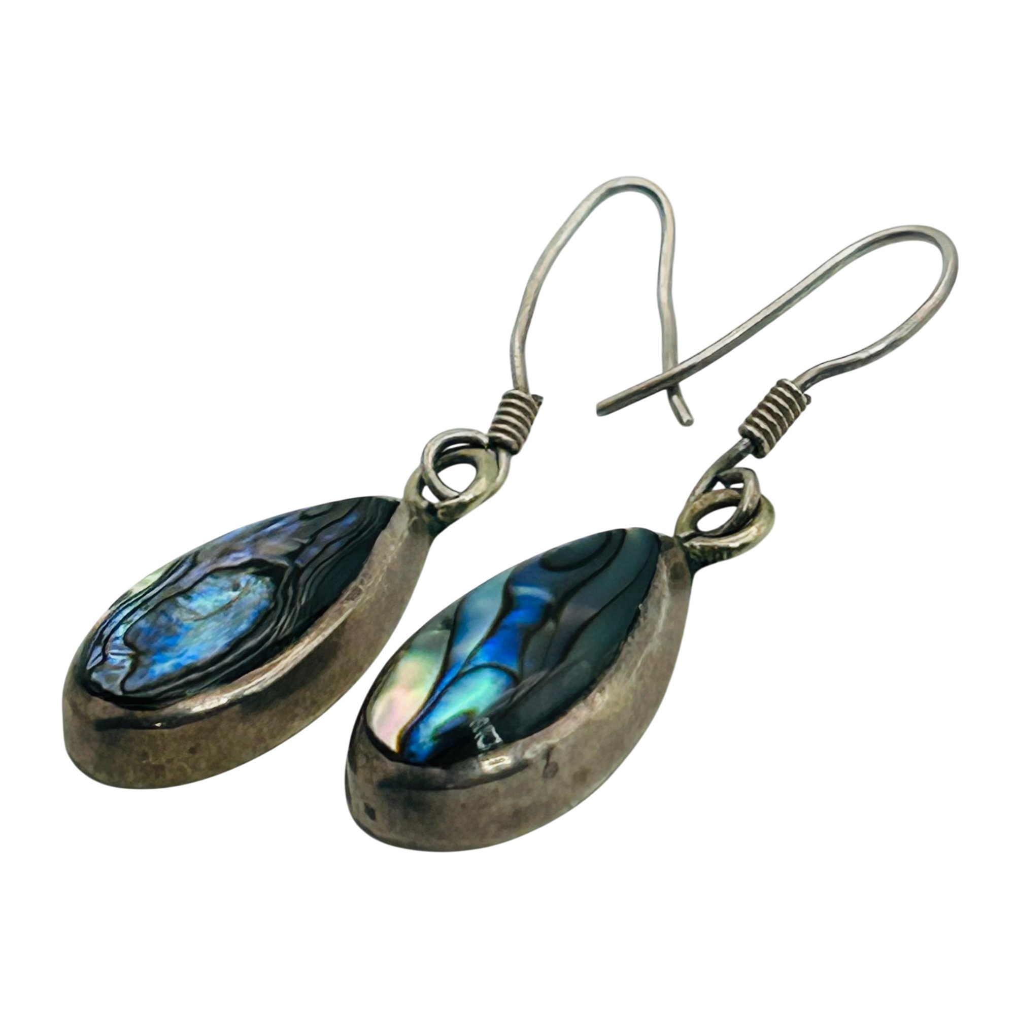 Sterling abalone Teardrop hook back earrings. 1.90g