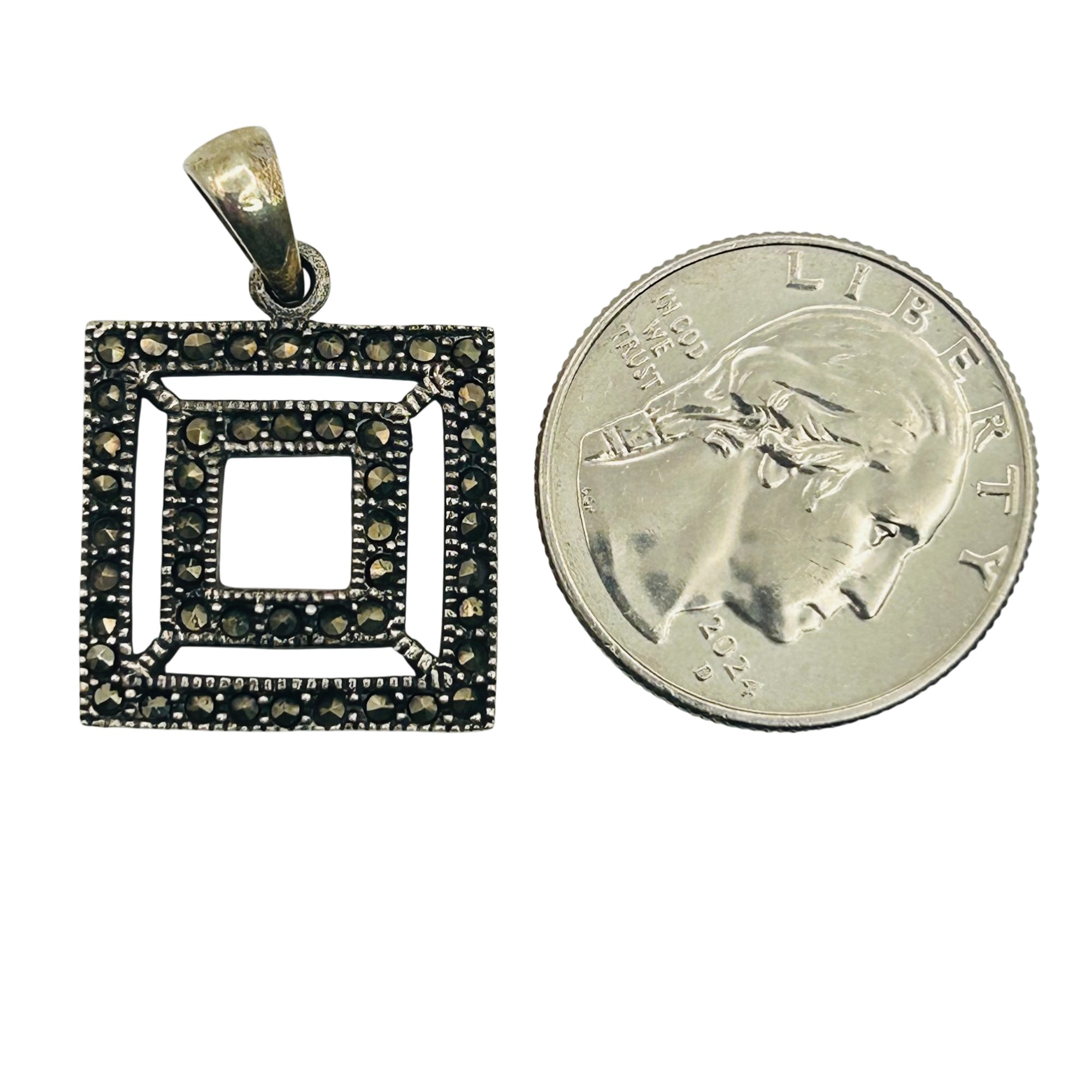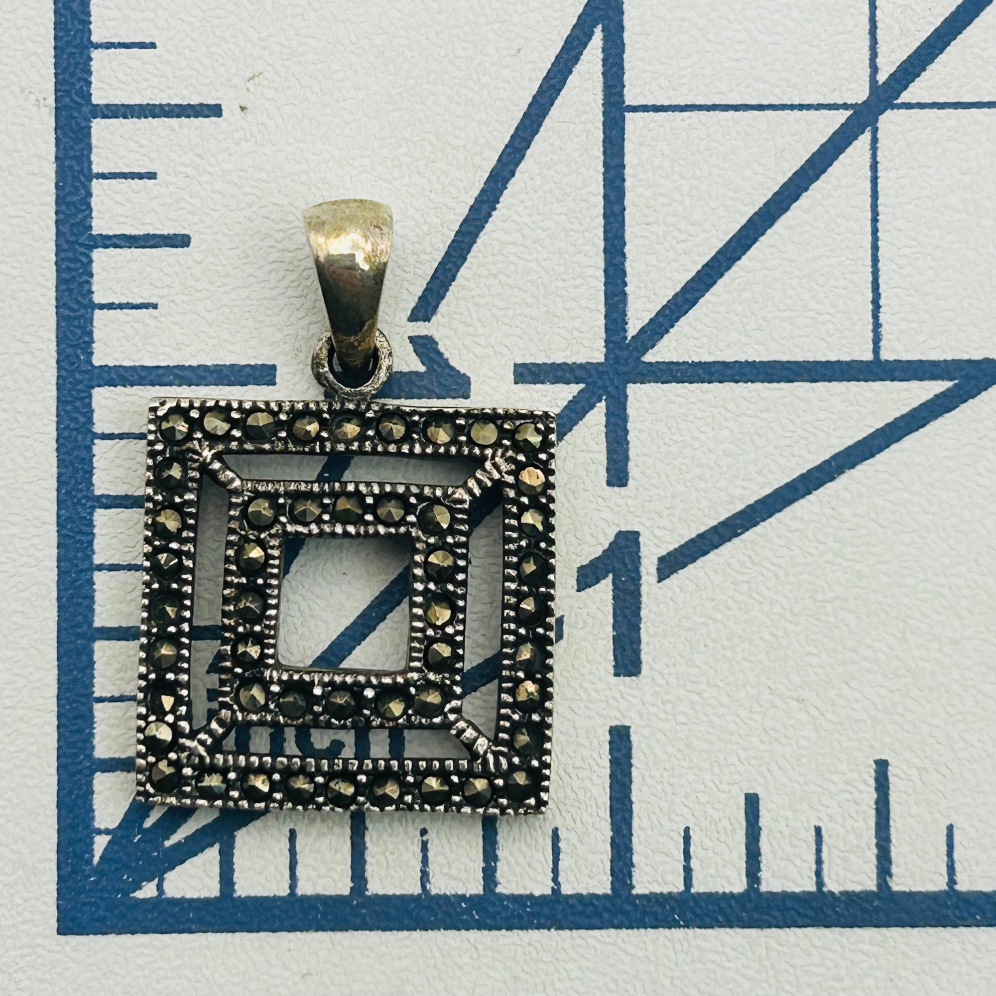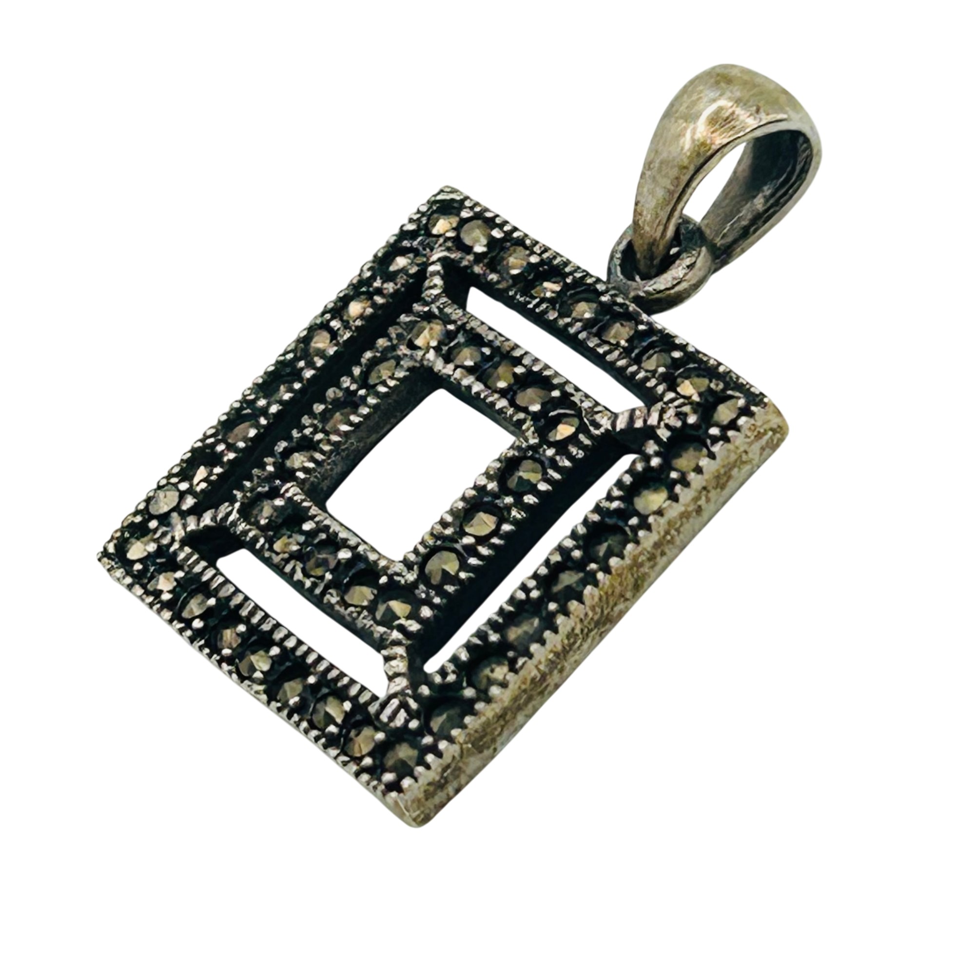 Sterling marcasite square pendant. 5.10g