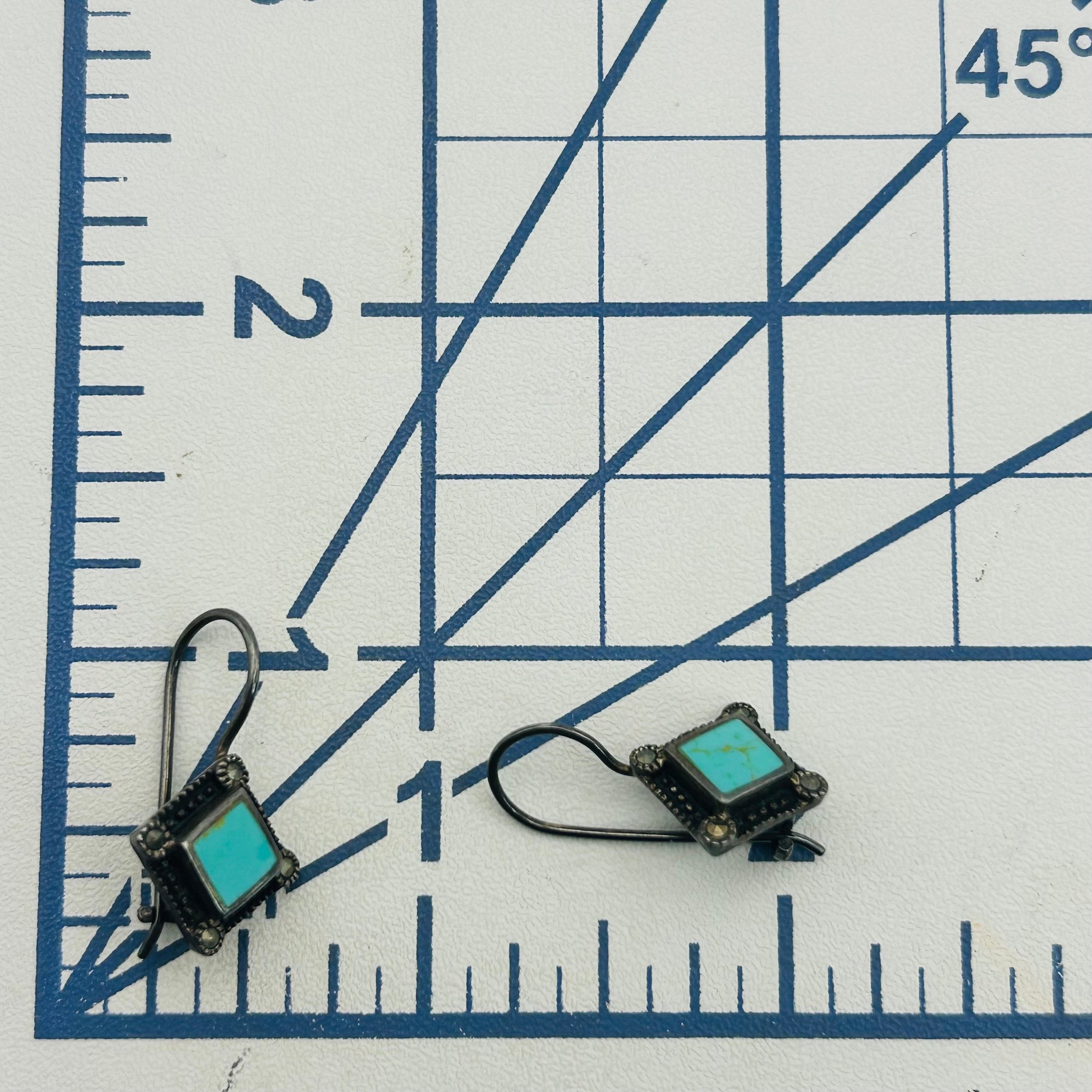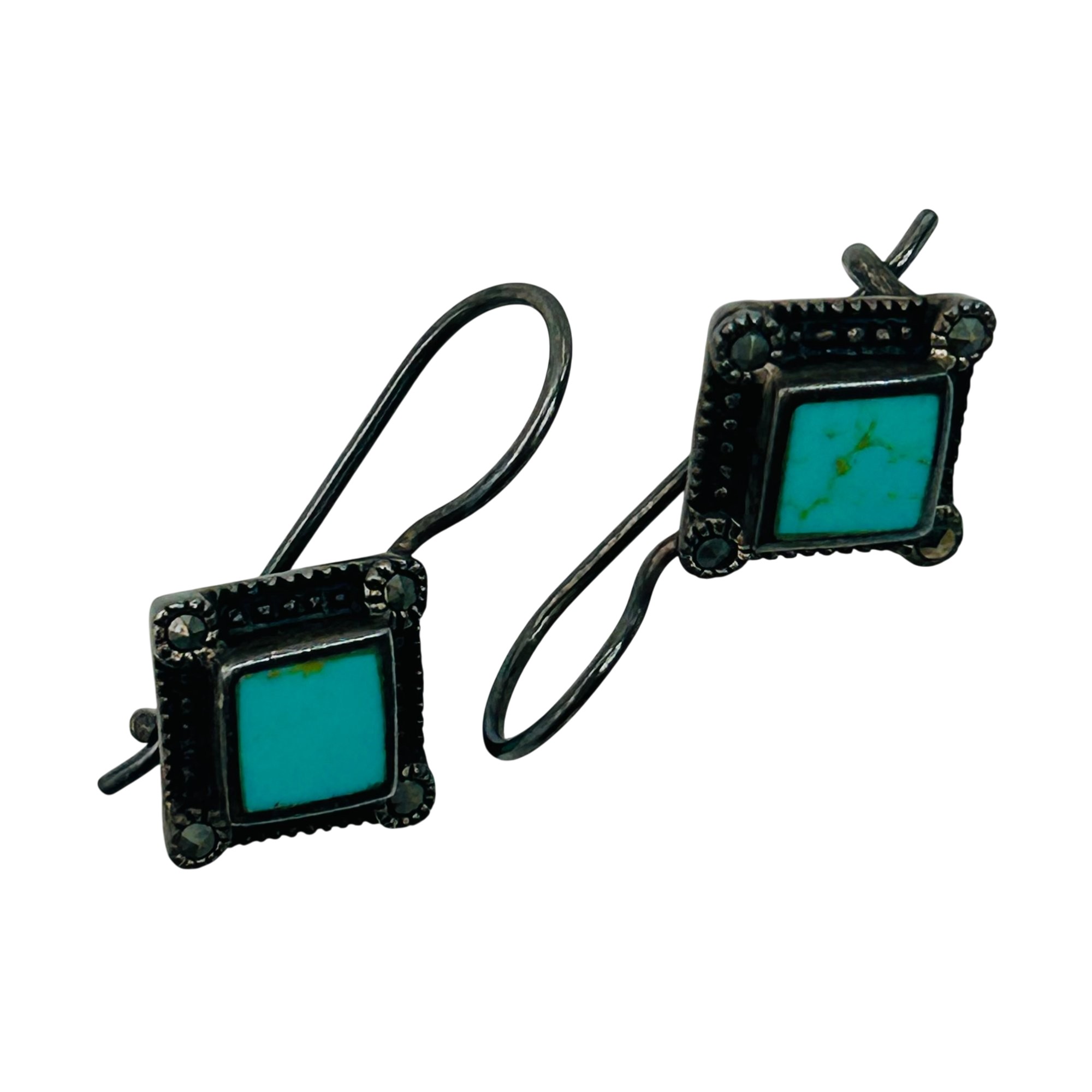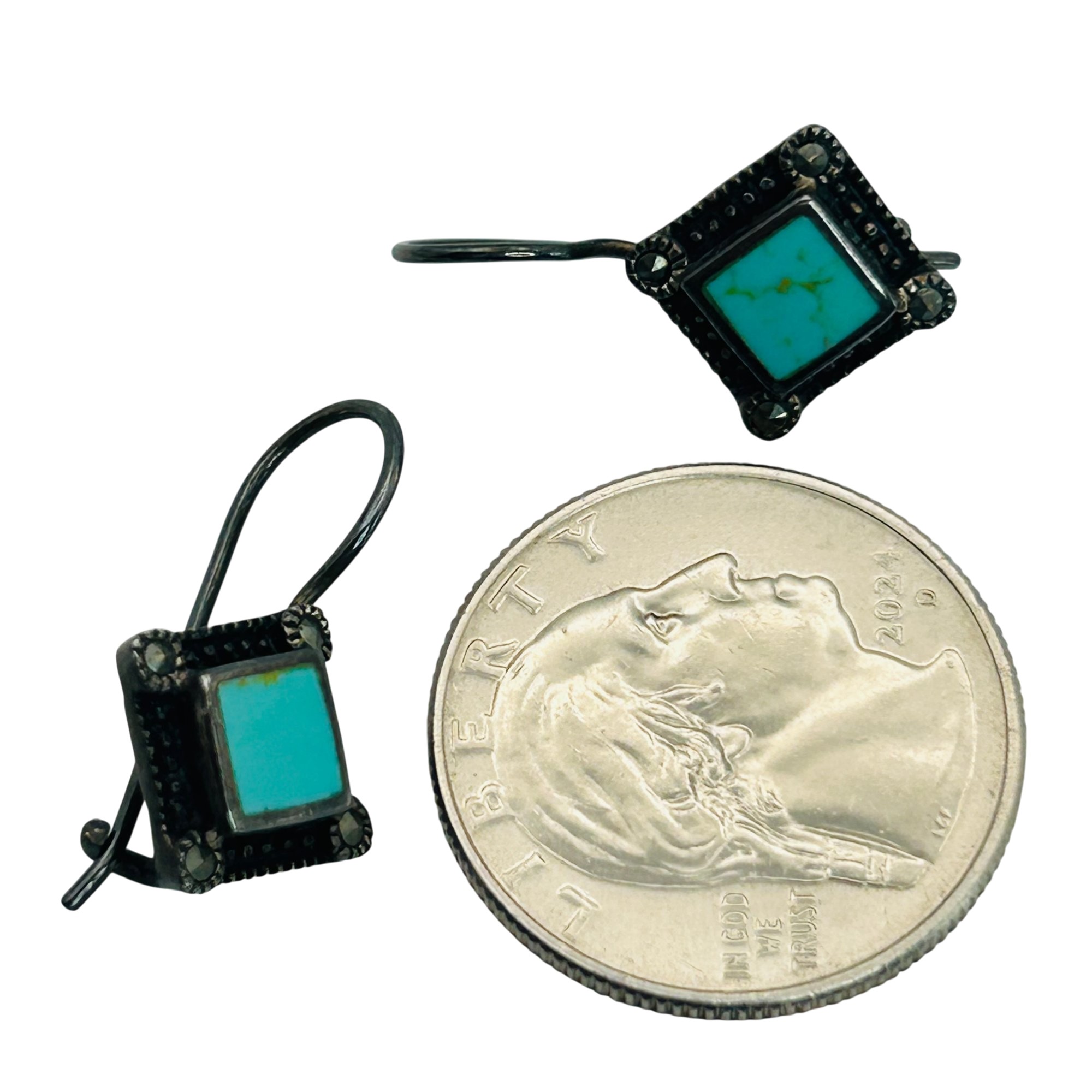 FAS Sterling turquoise marcasite square earrings. 3.00g