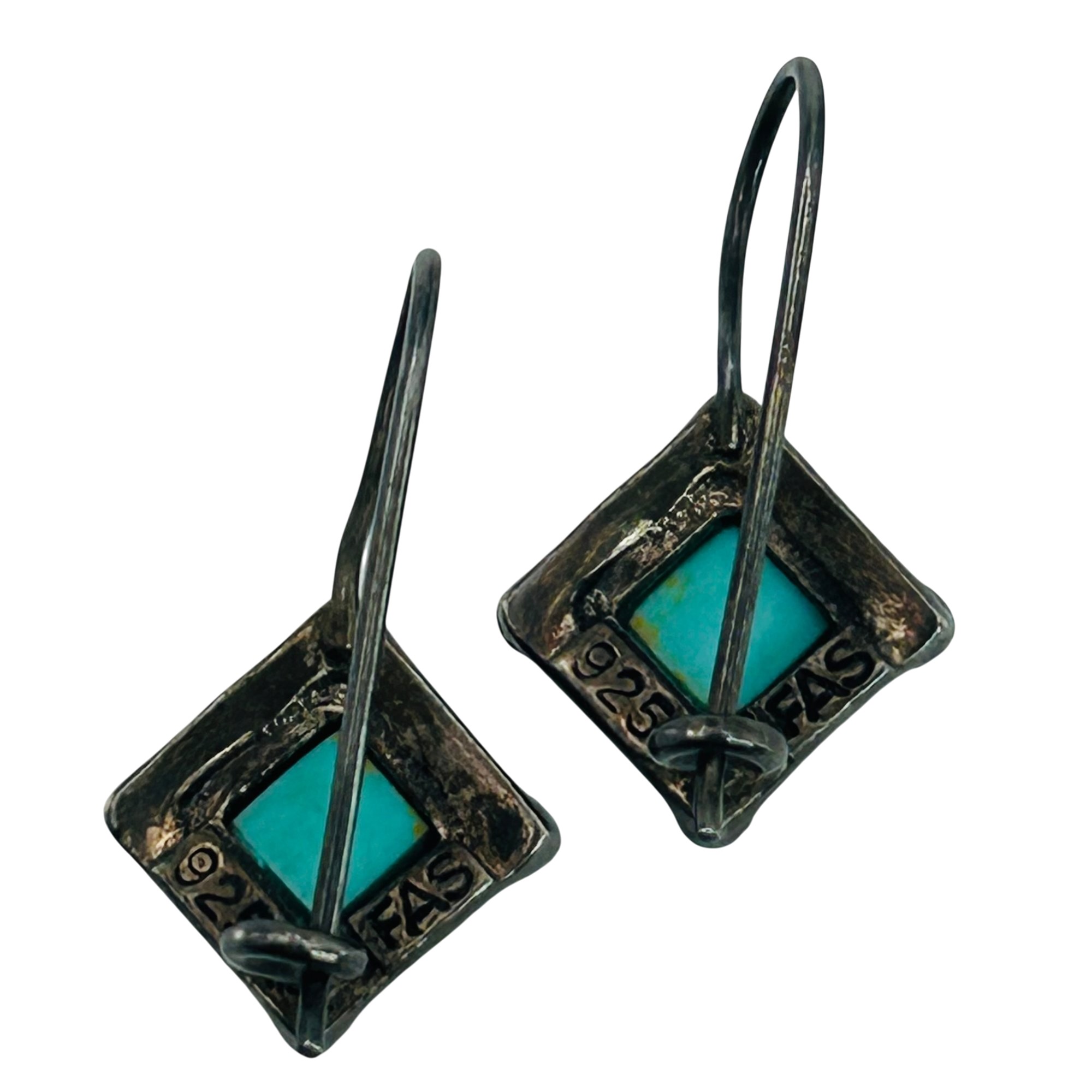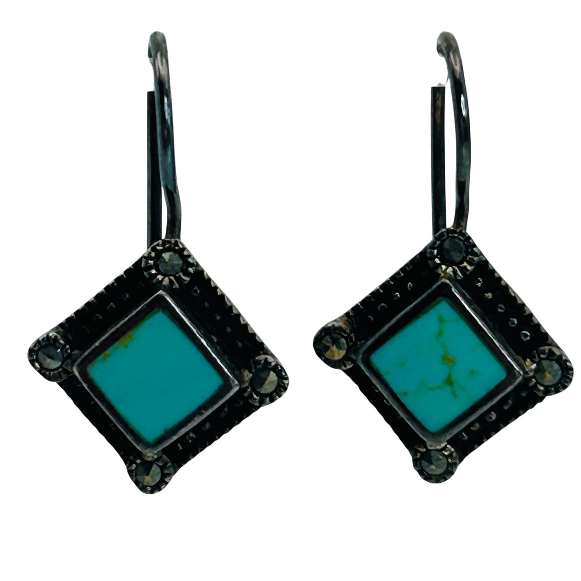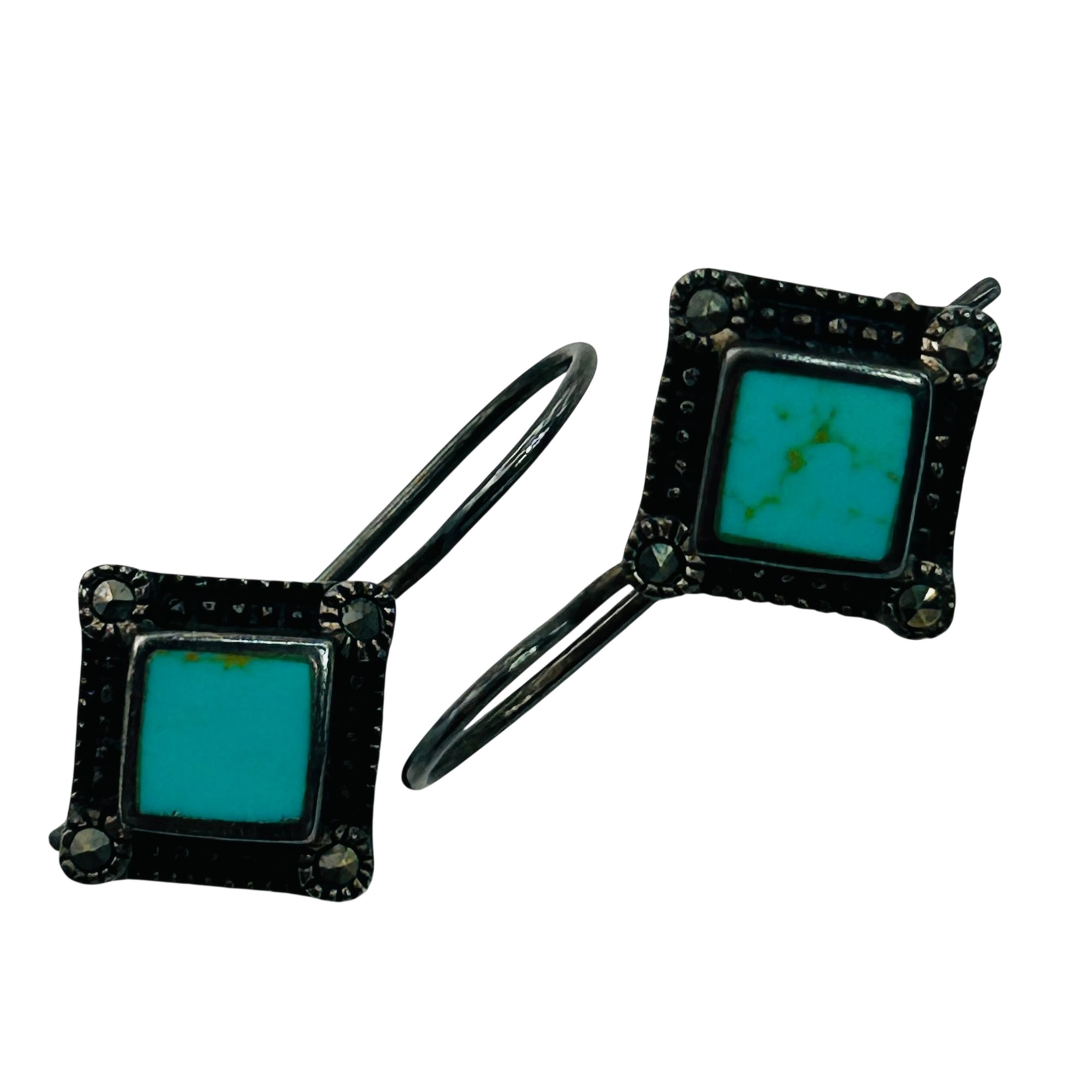 FAS Sterling turquoise marcasite square earrings. 3.00g