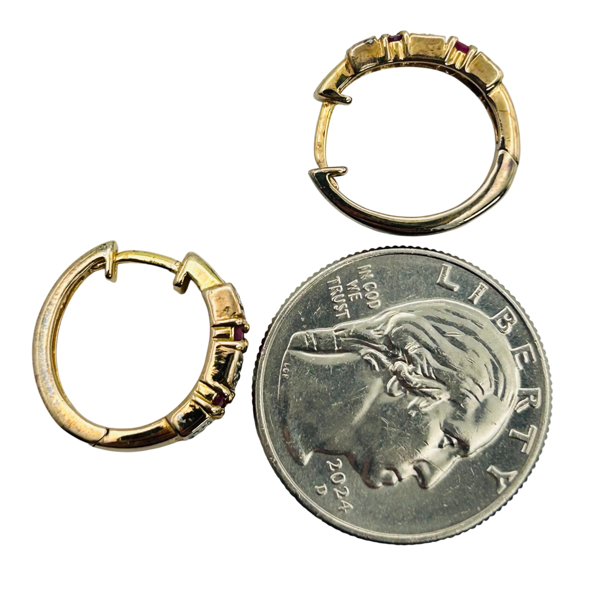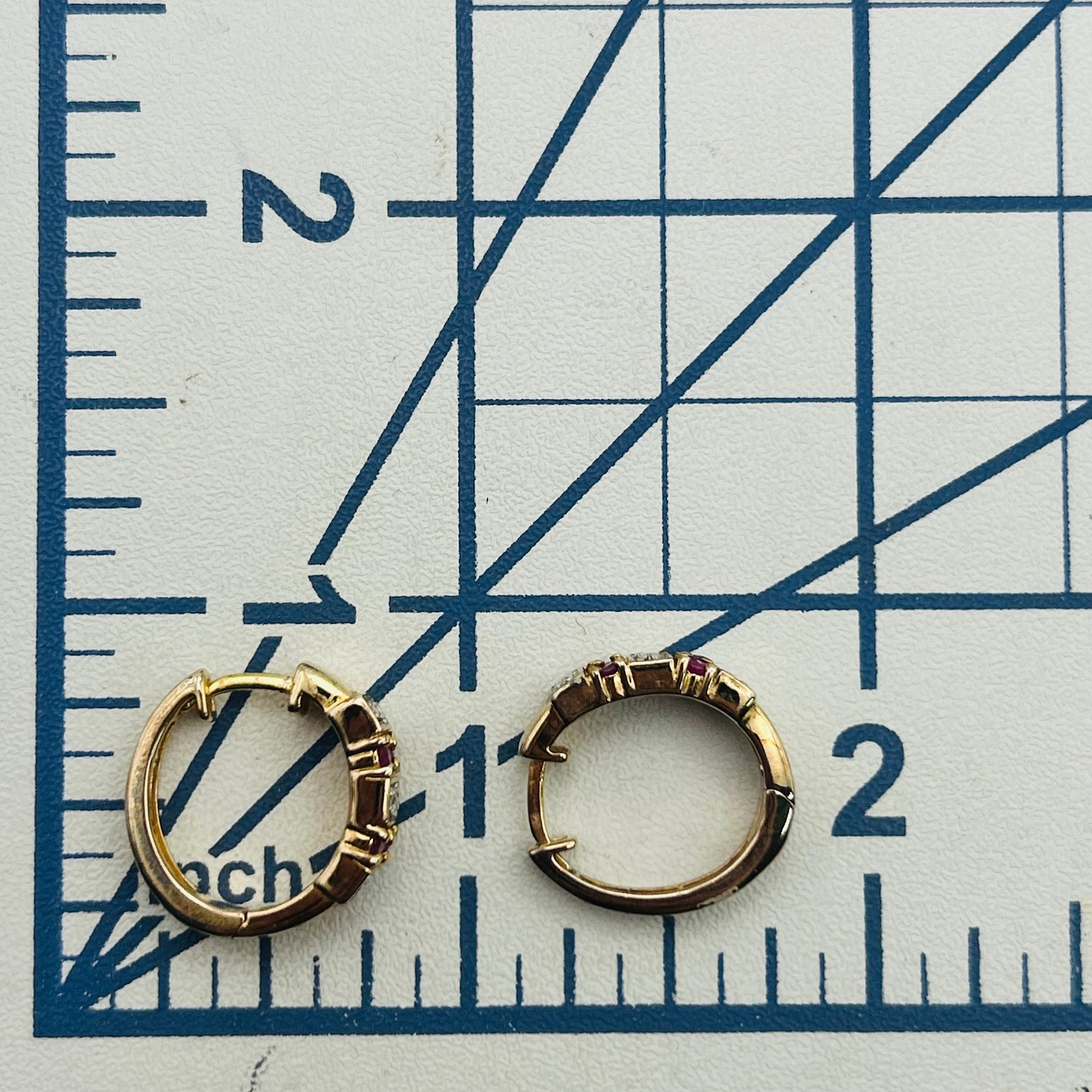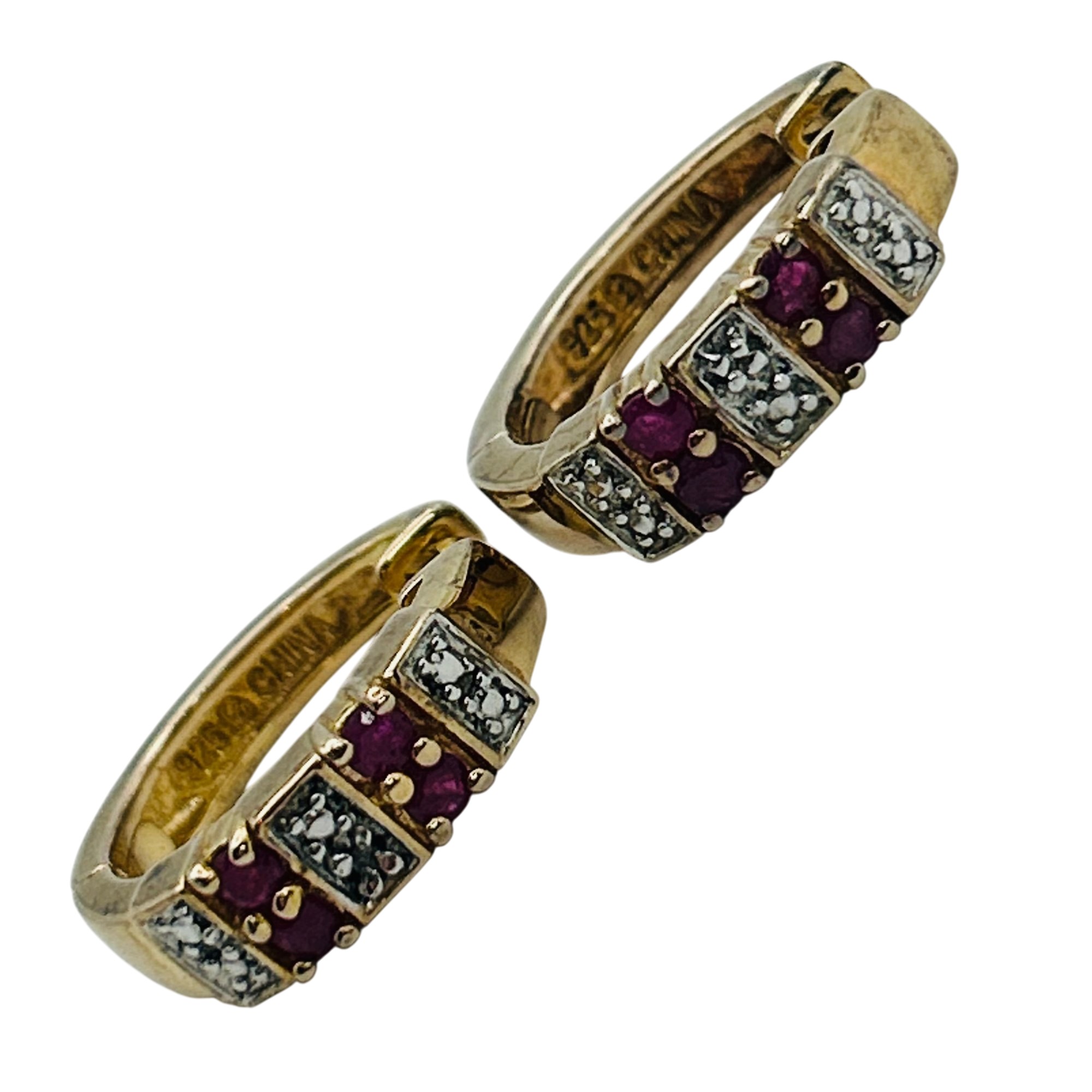 Sterling ruby diamond accent latch back hoop earrings. 4.40g