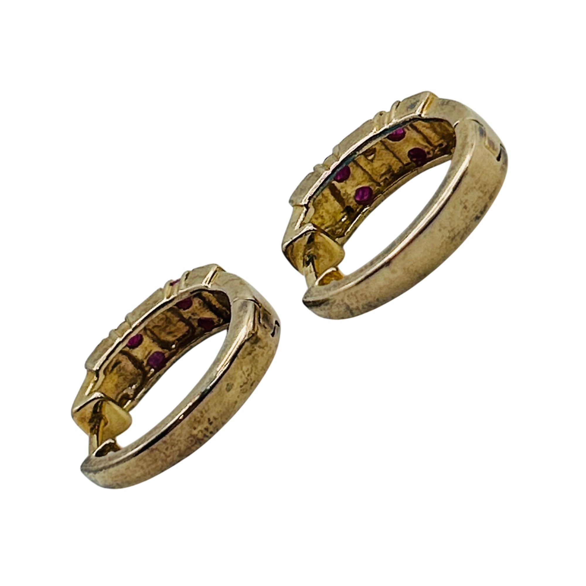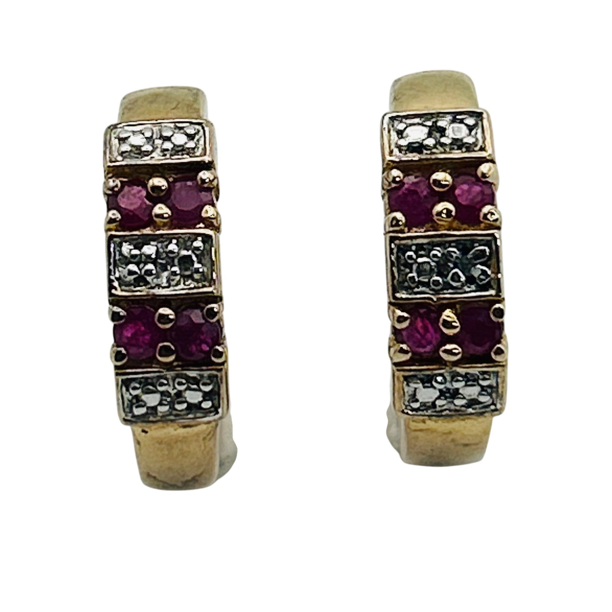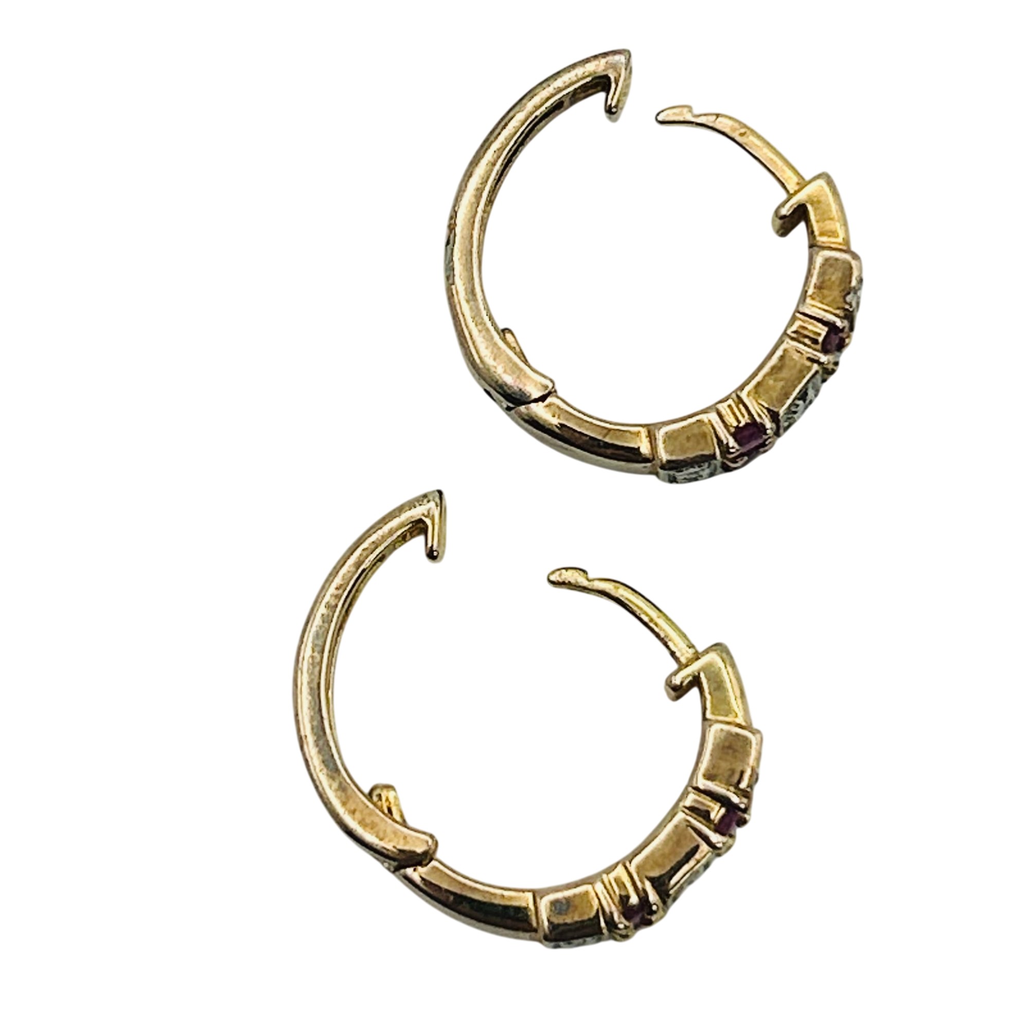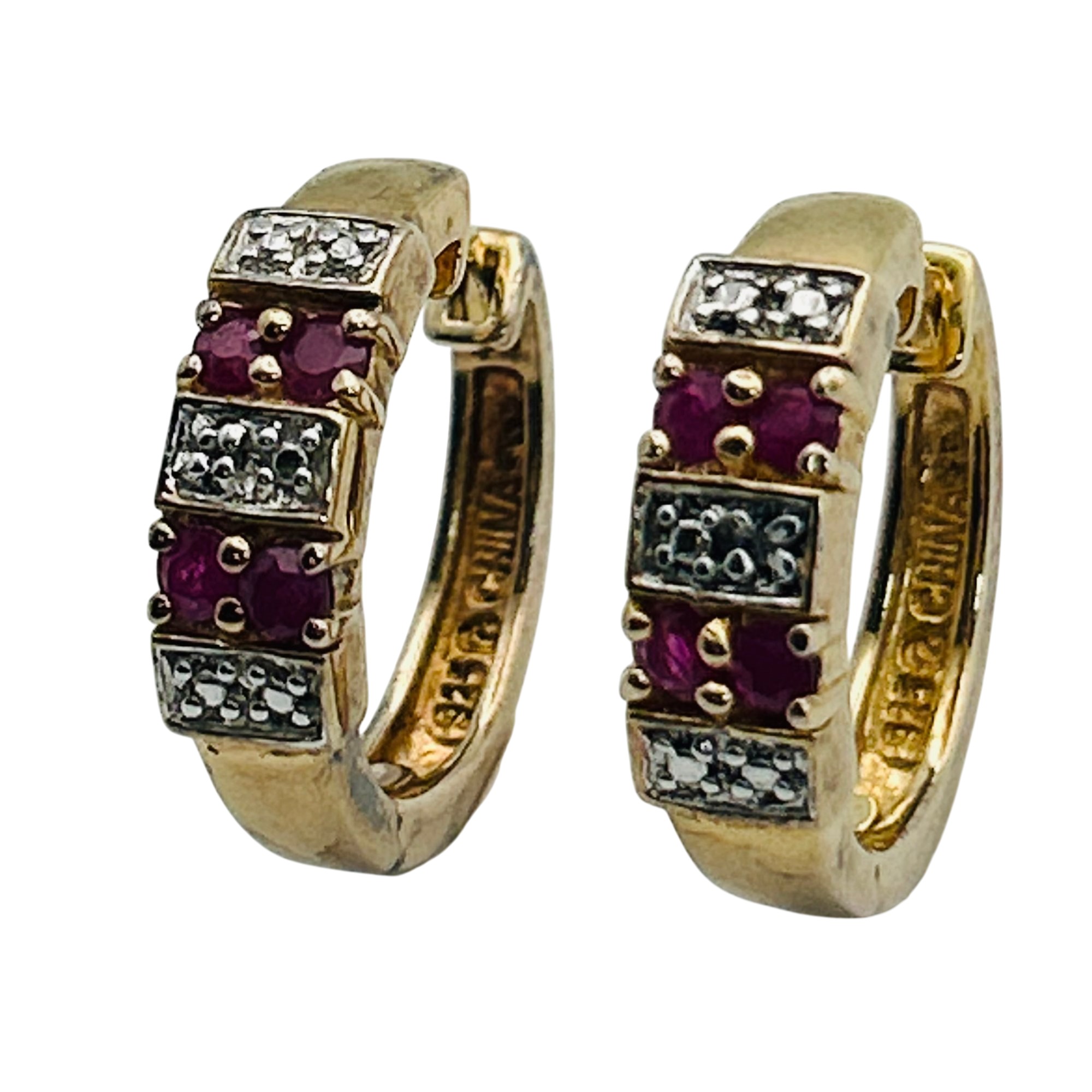 Sterling ruby diamond accent latch back hoop earrings. 4.40g
