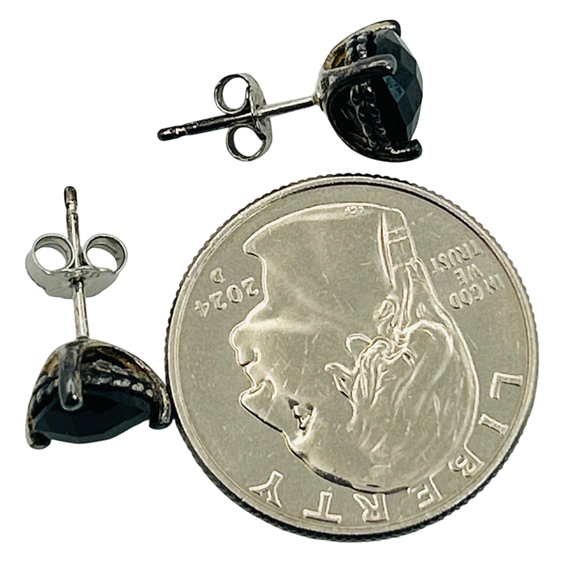 Sterling onyx stud earrings. 2.50g