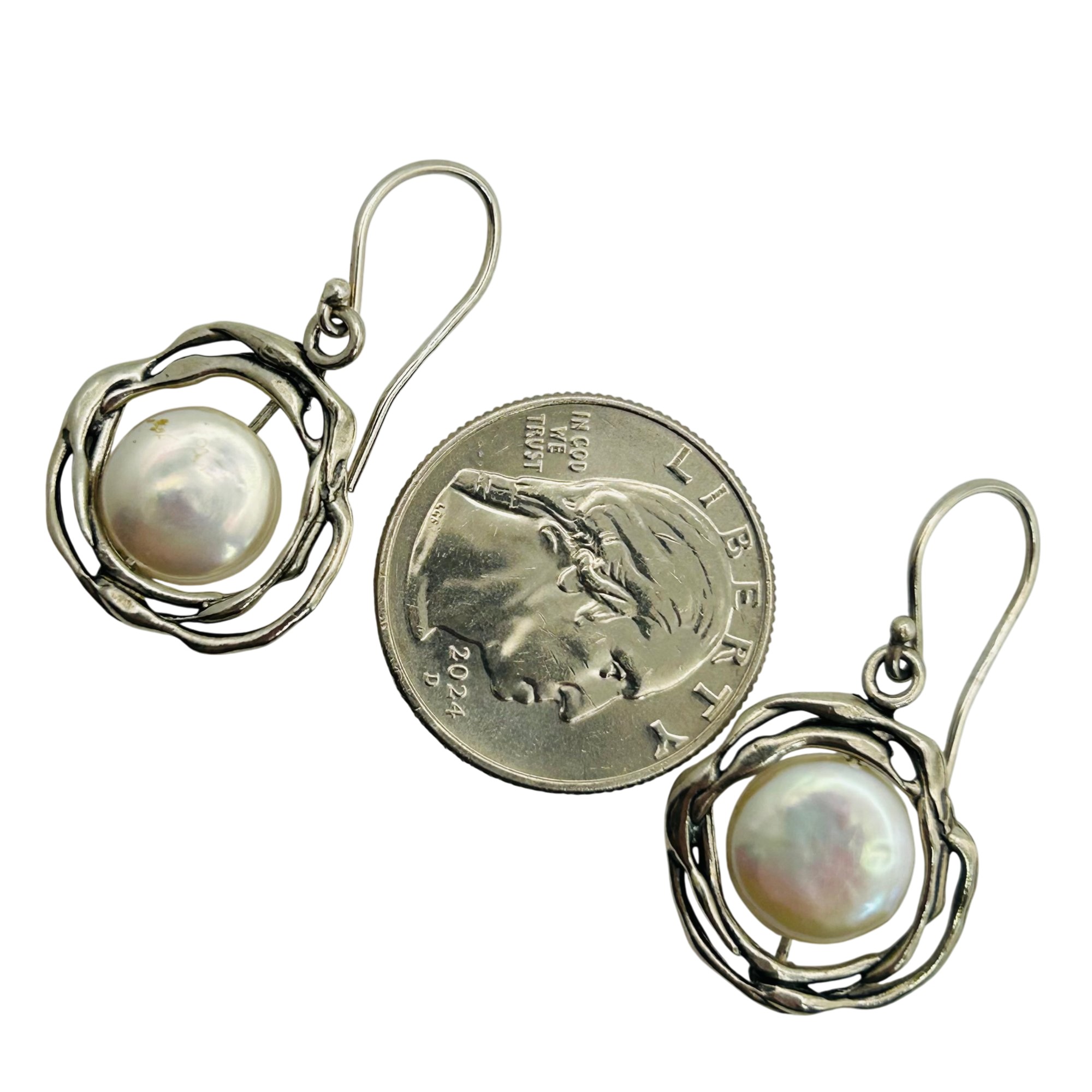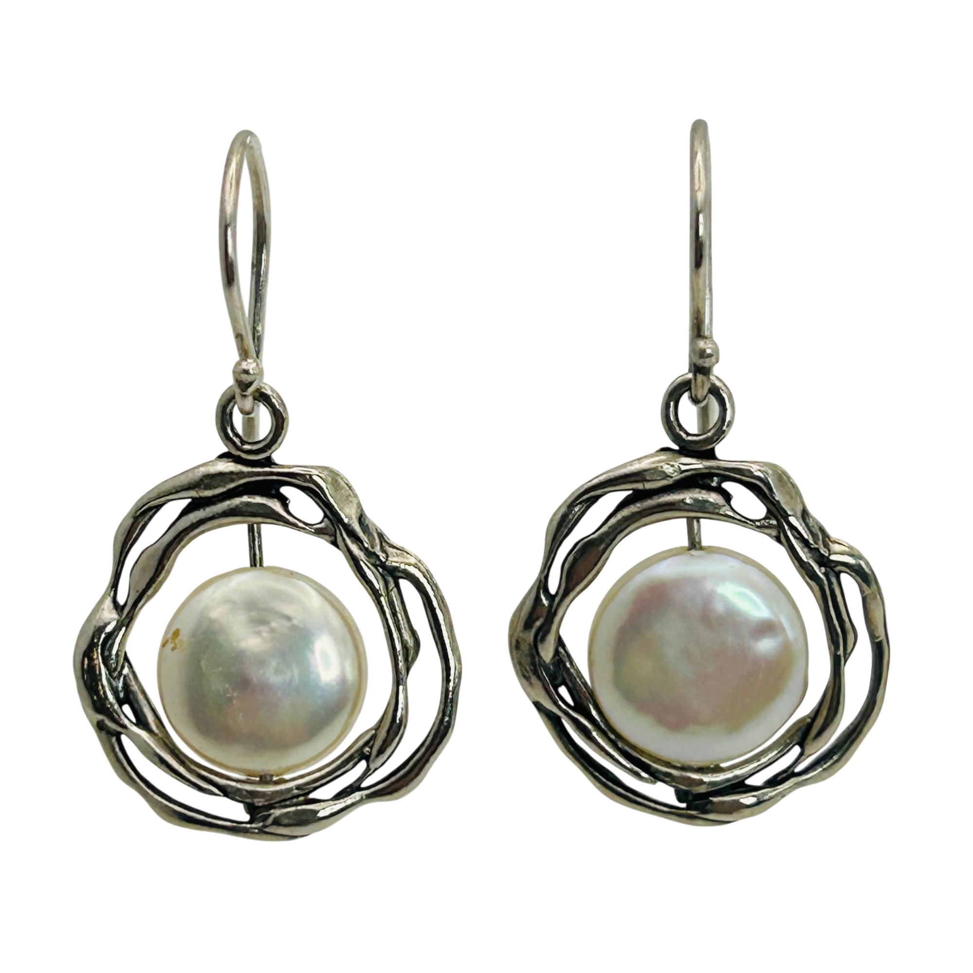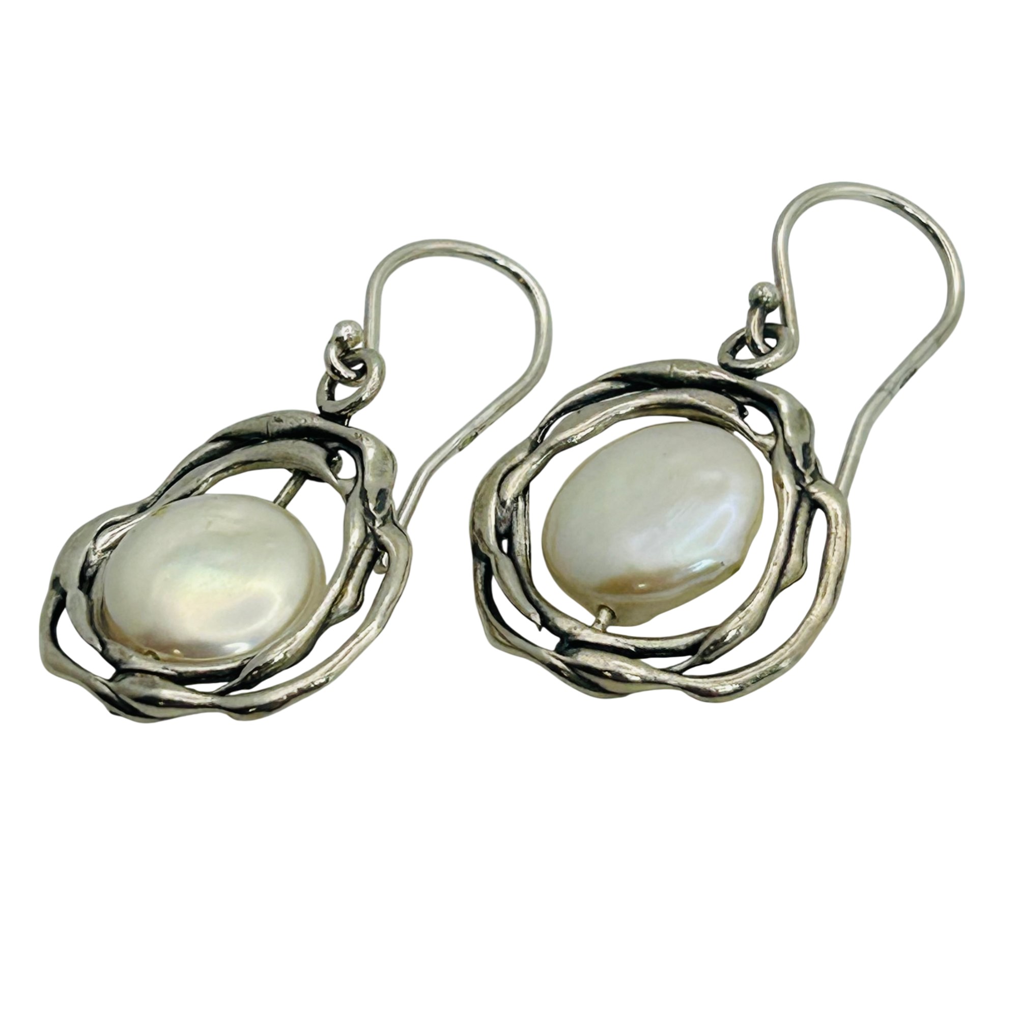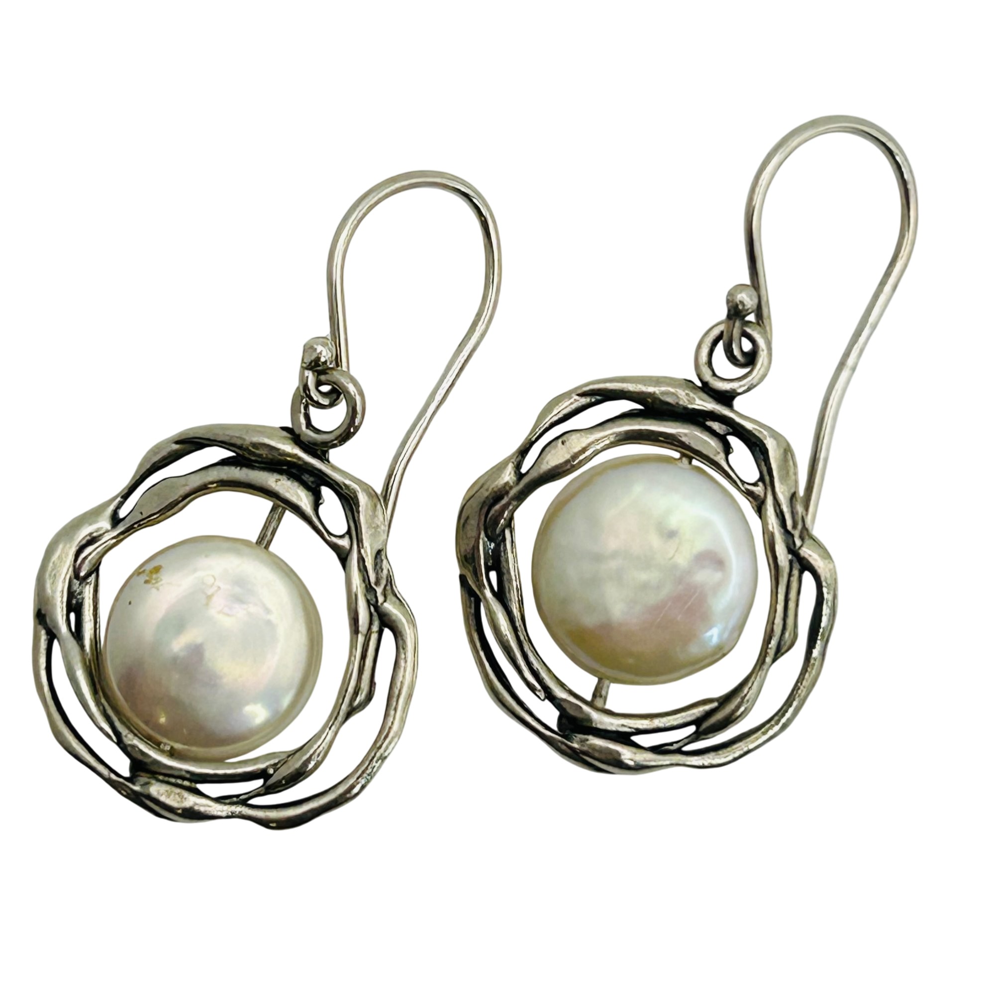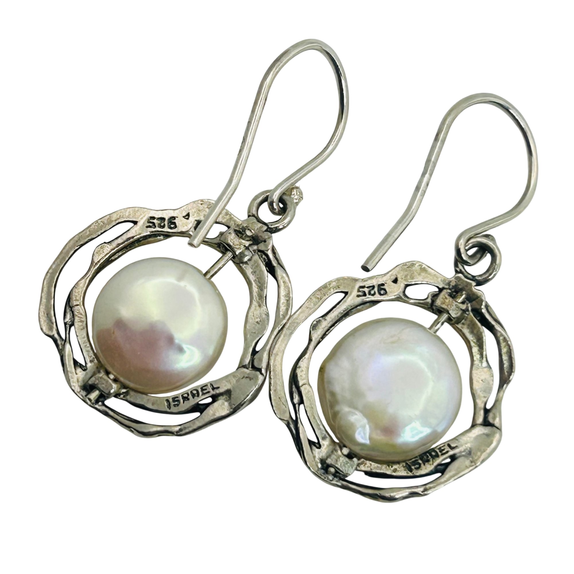 Israel Sterling Pearl Flower Hook Back Earrings