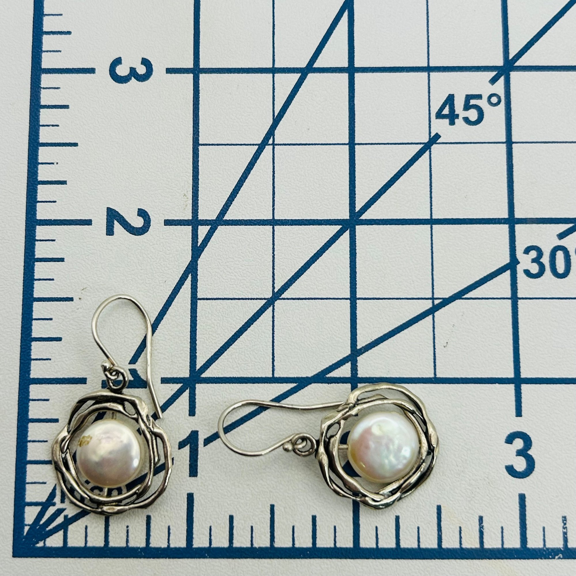 Israel Sterling pearl flower hook back earrings. 4.60g