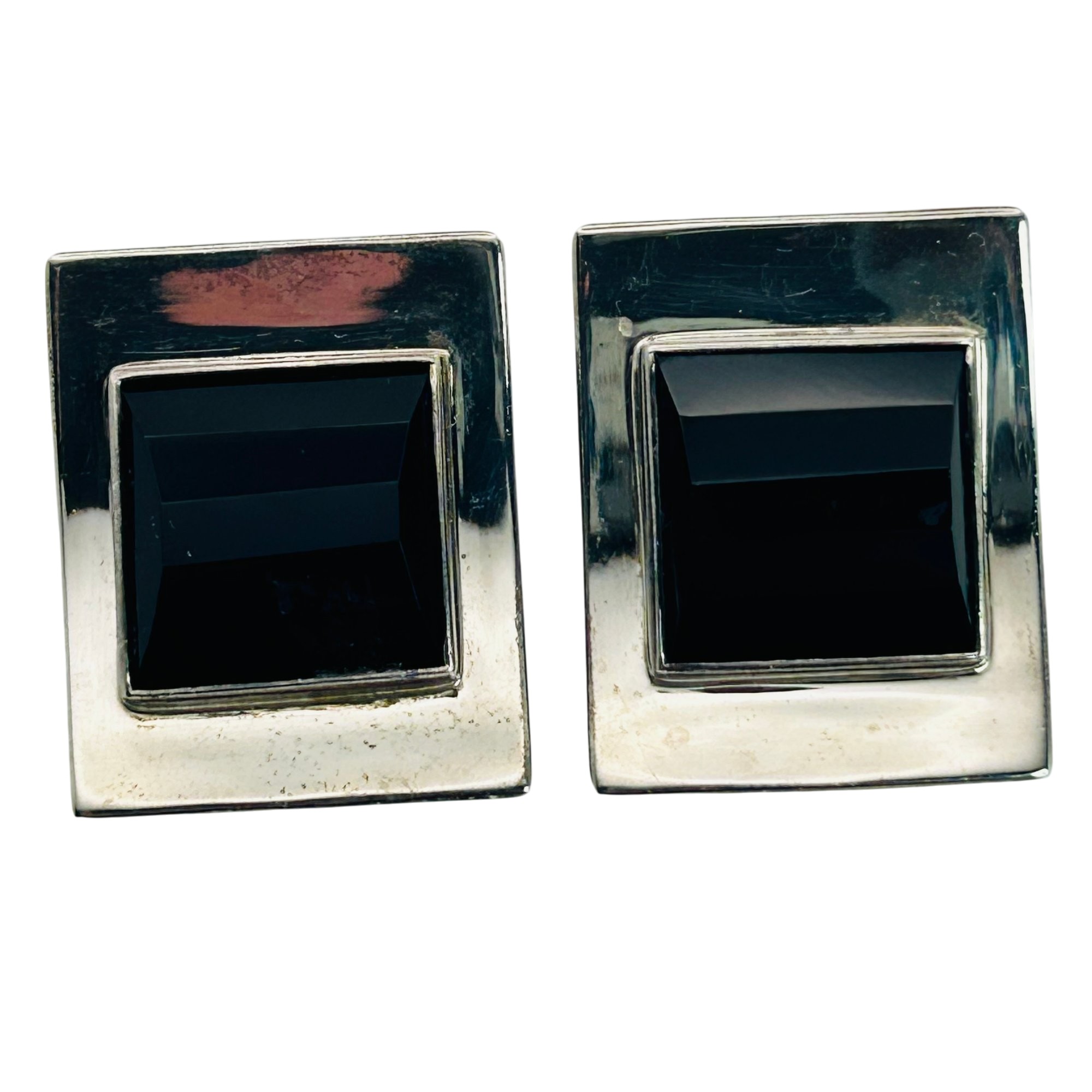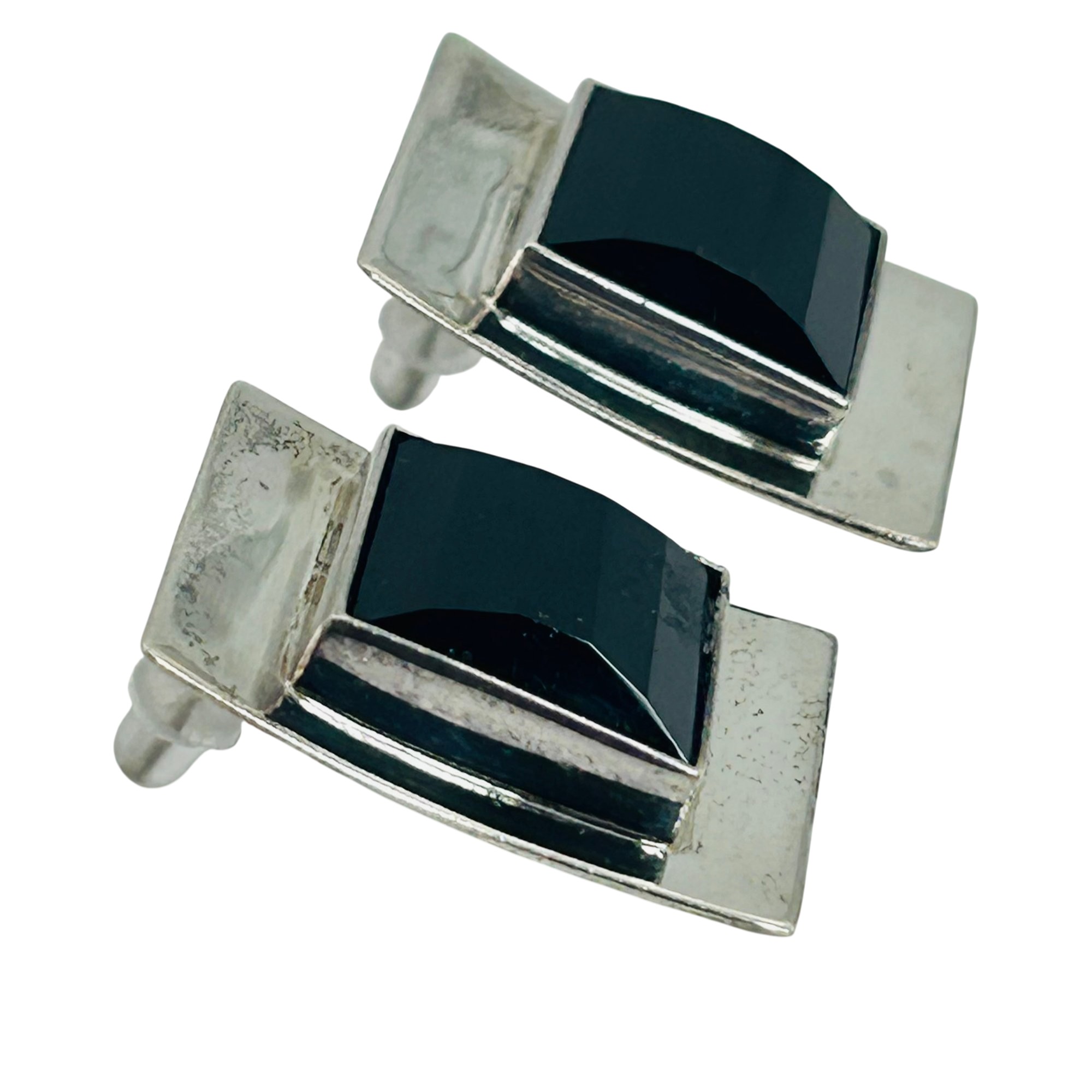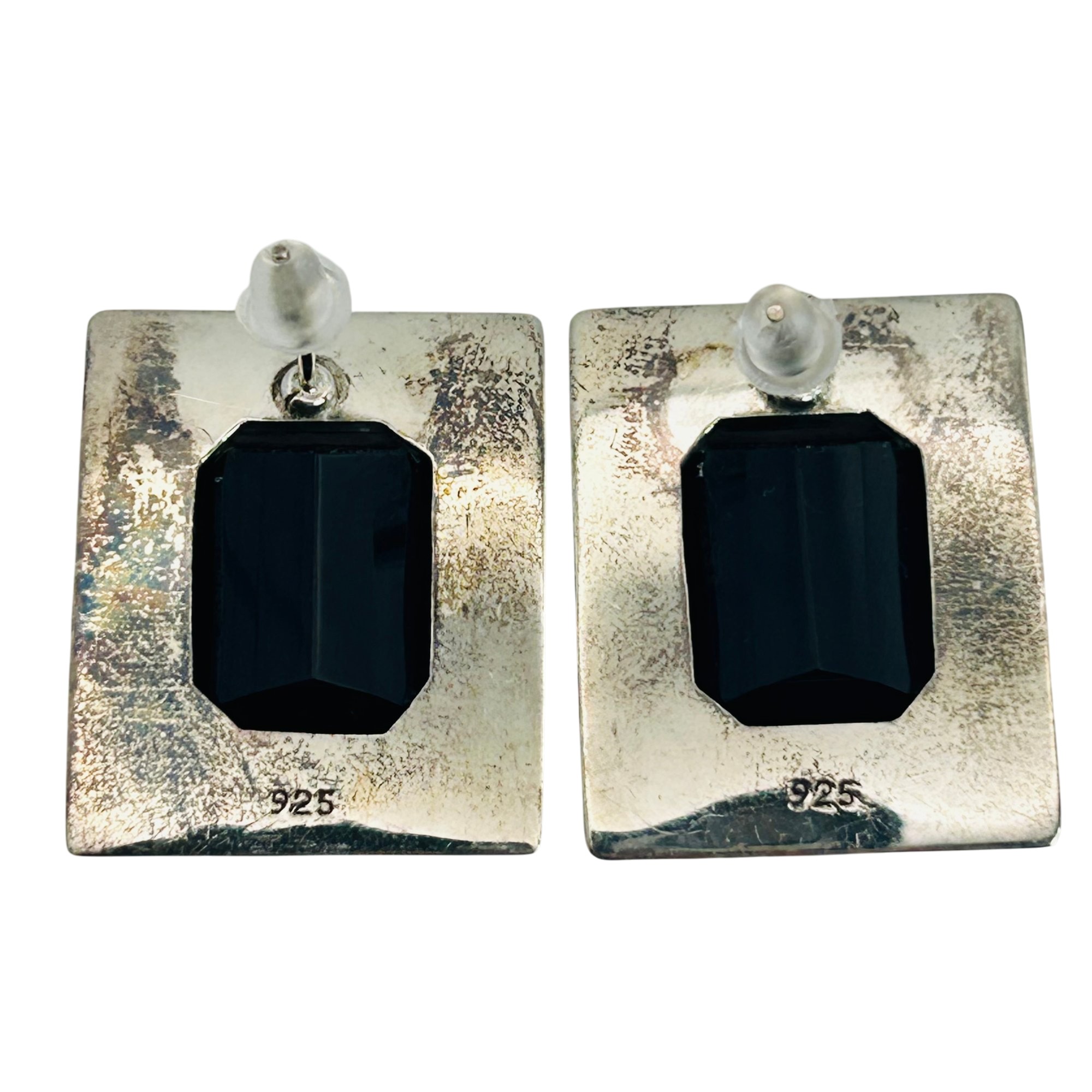 Sterling black stone square stud earrings. 13.00g