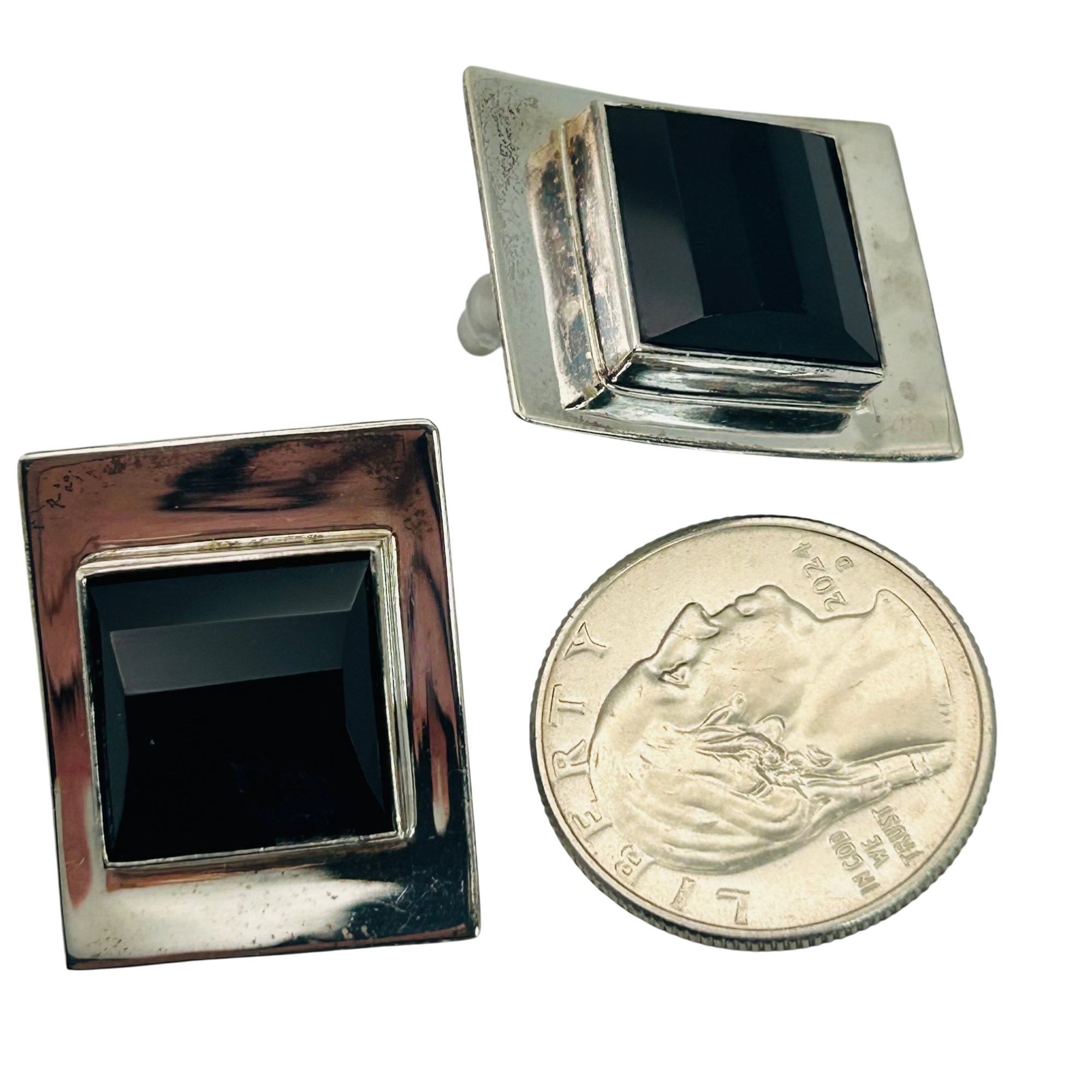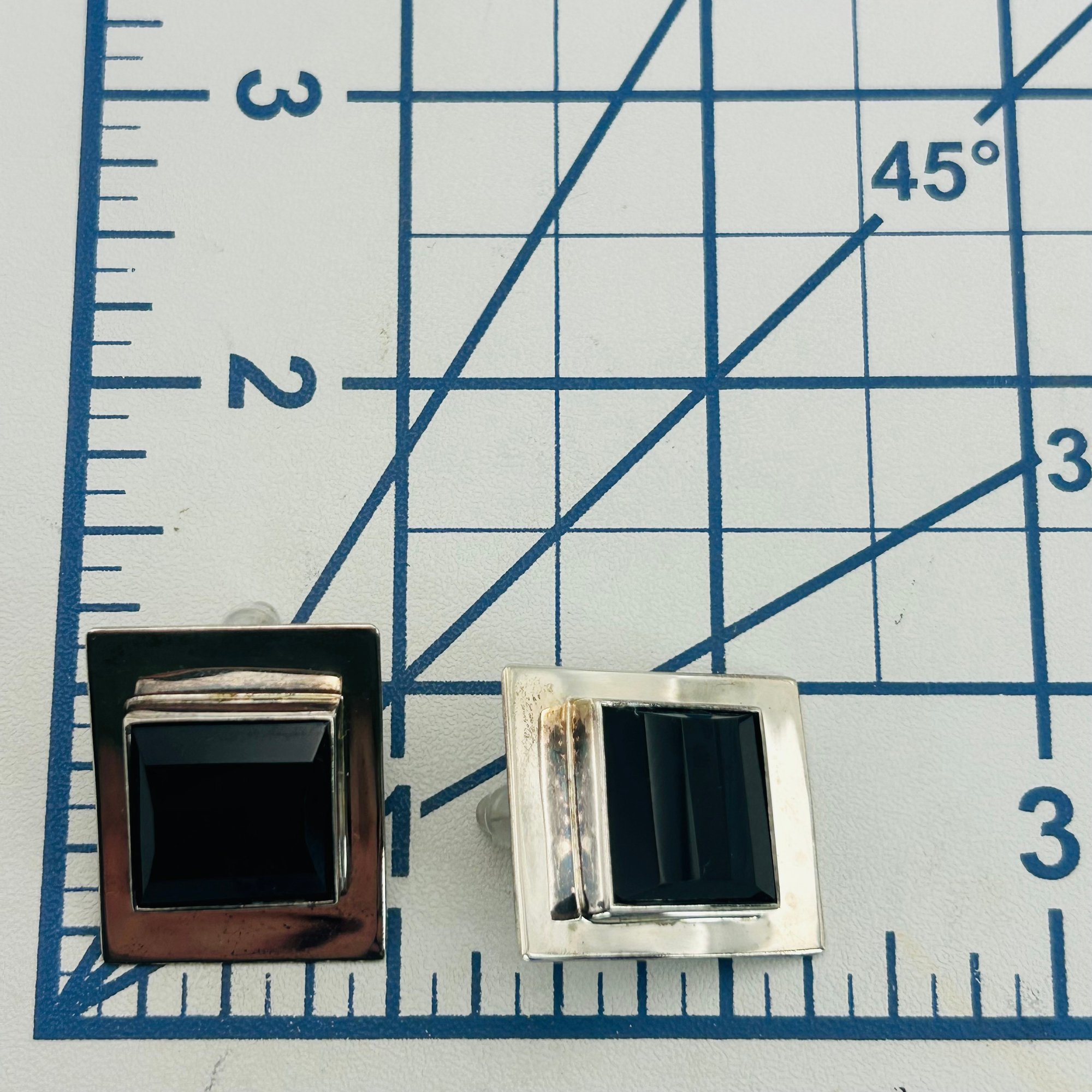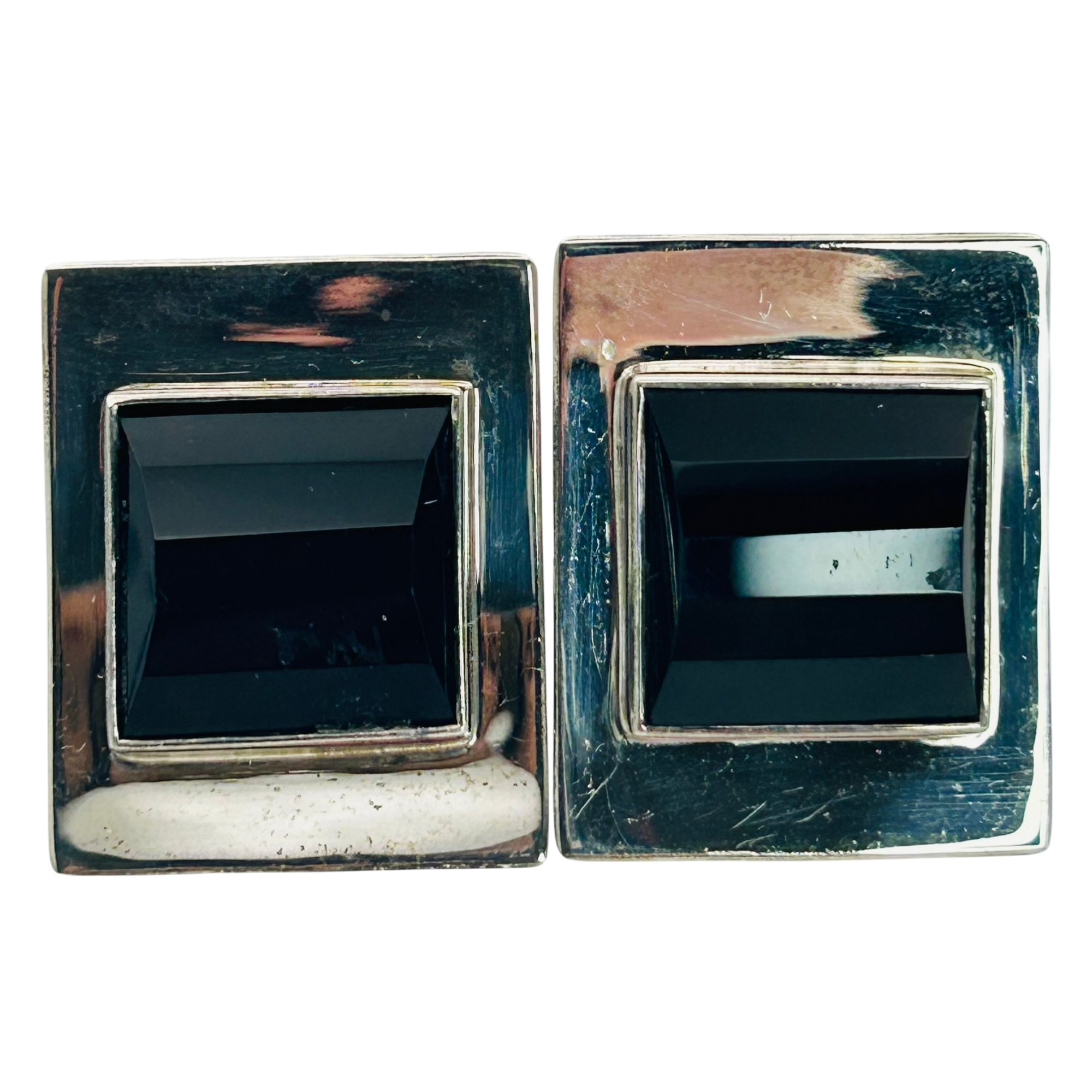 Sterling black stone square stud earrings. 13.00g
