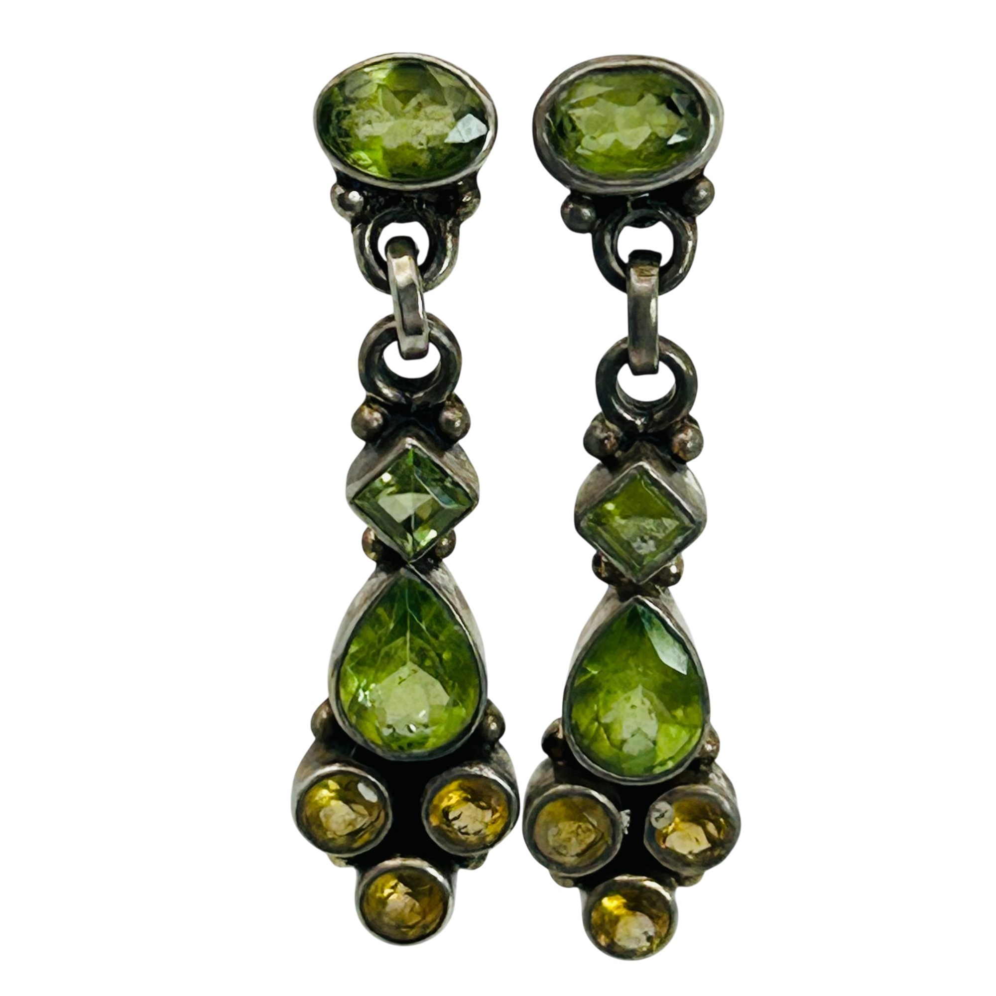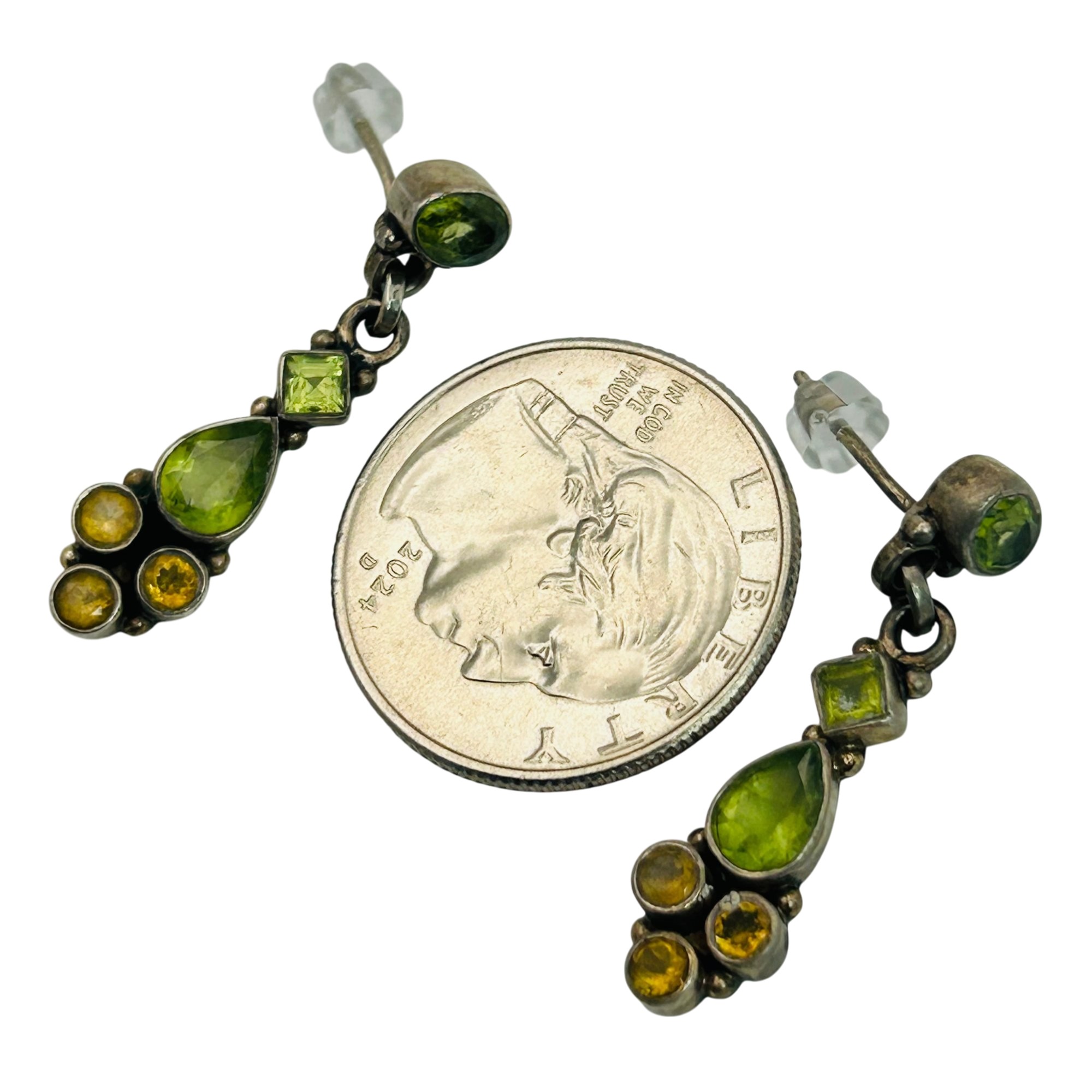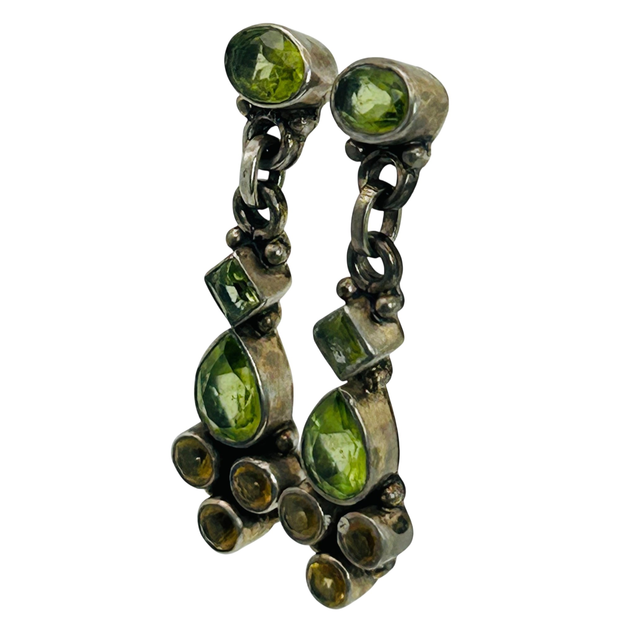 Sterling peridot and citrine dangle stud earrings. 4.90g