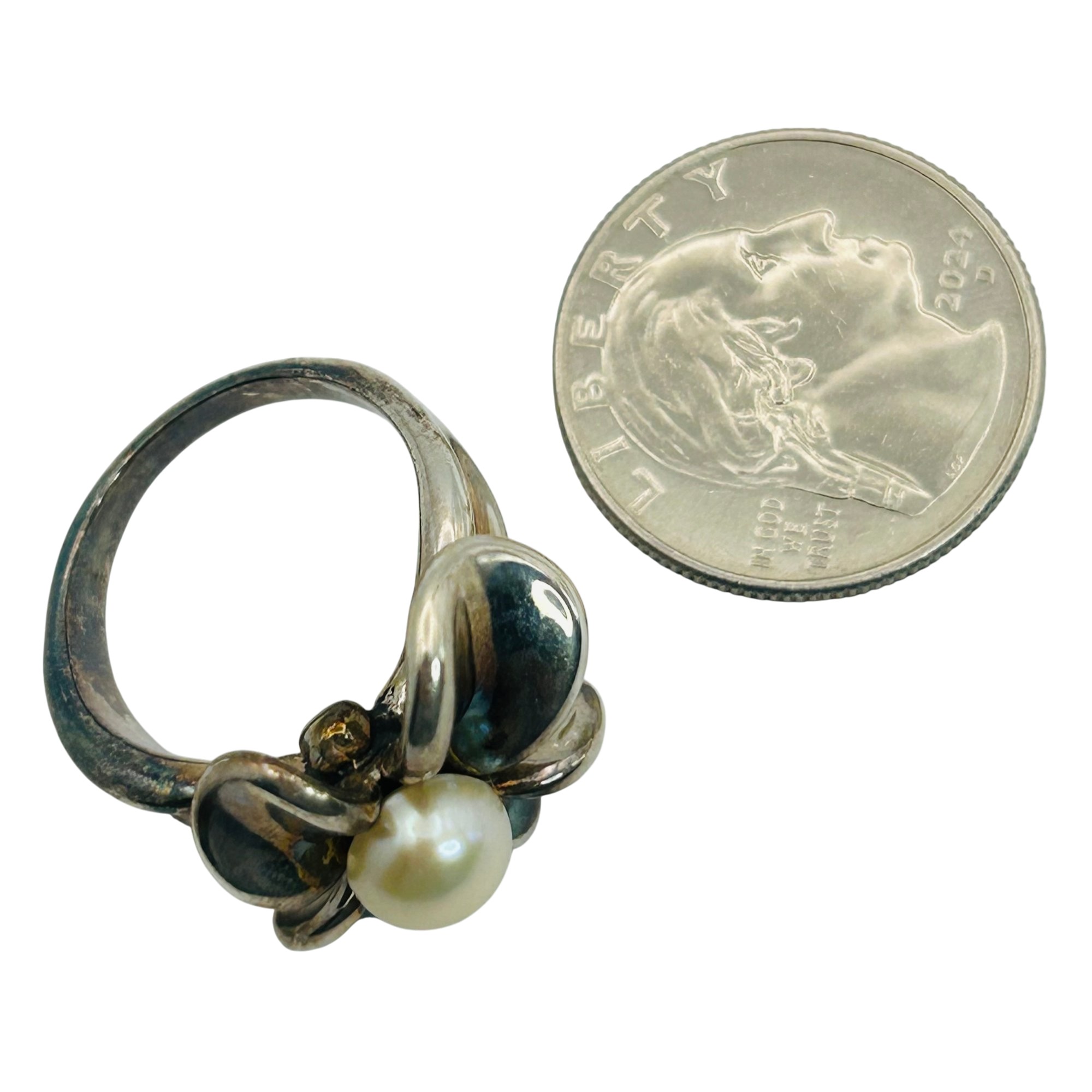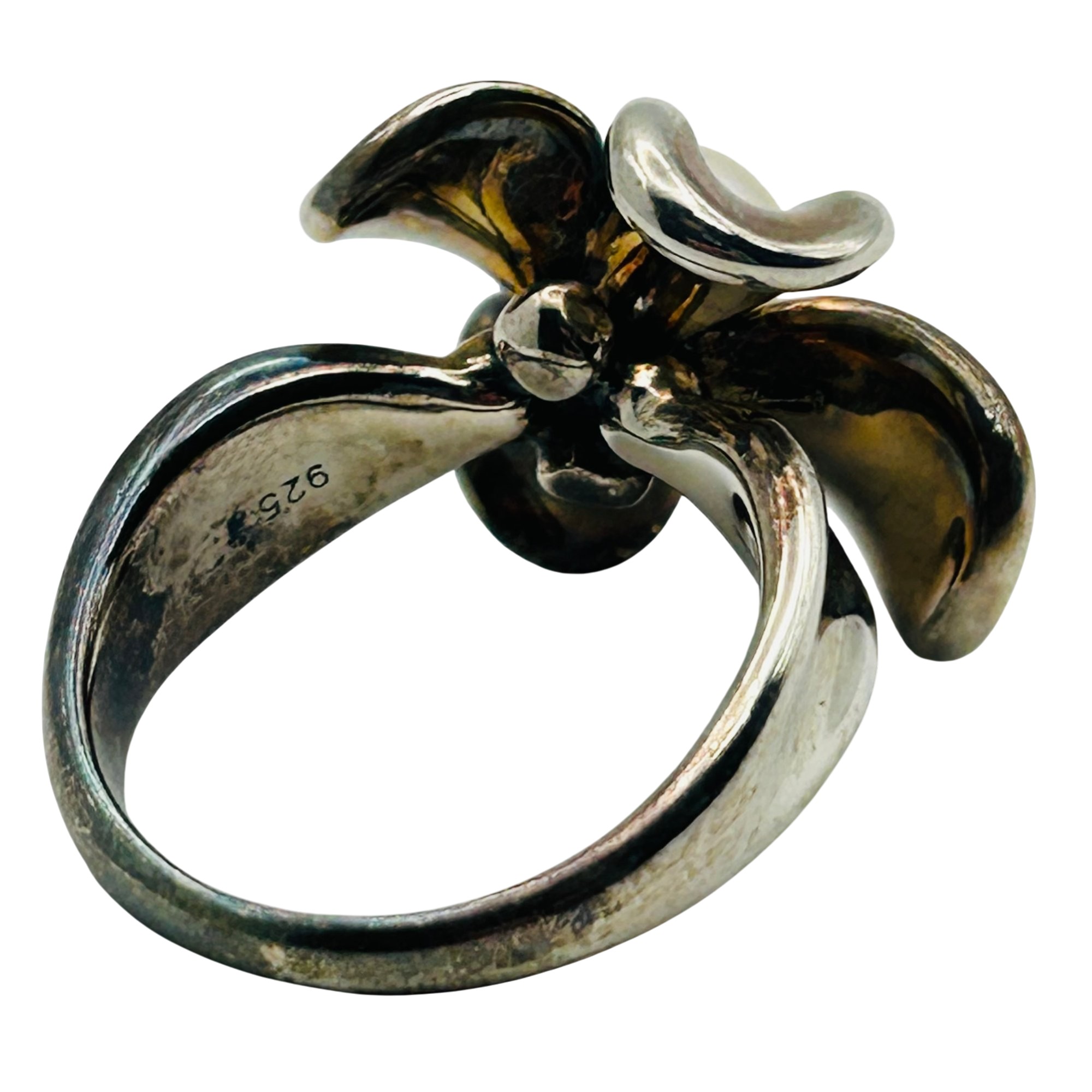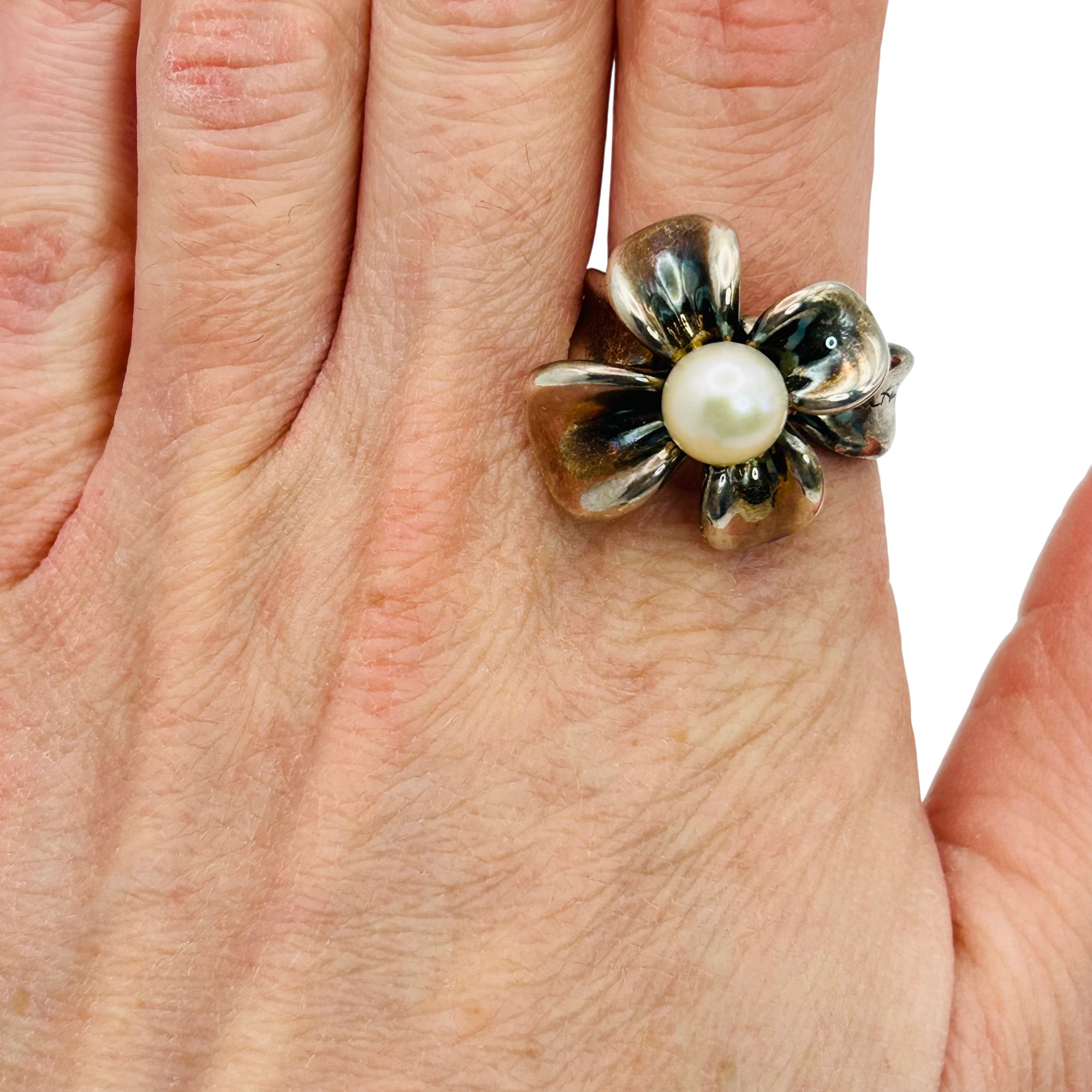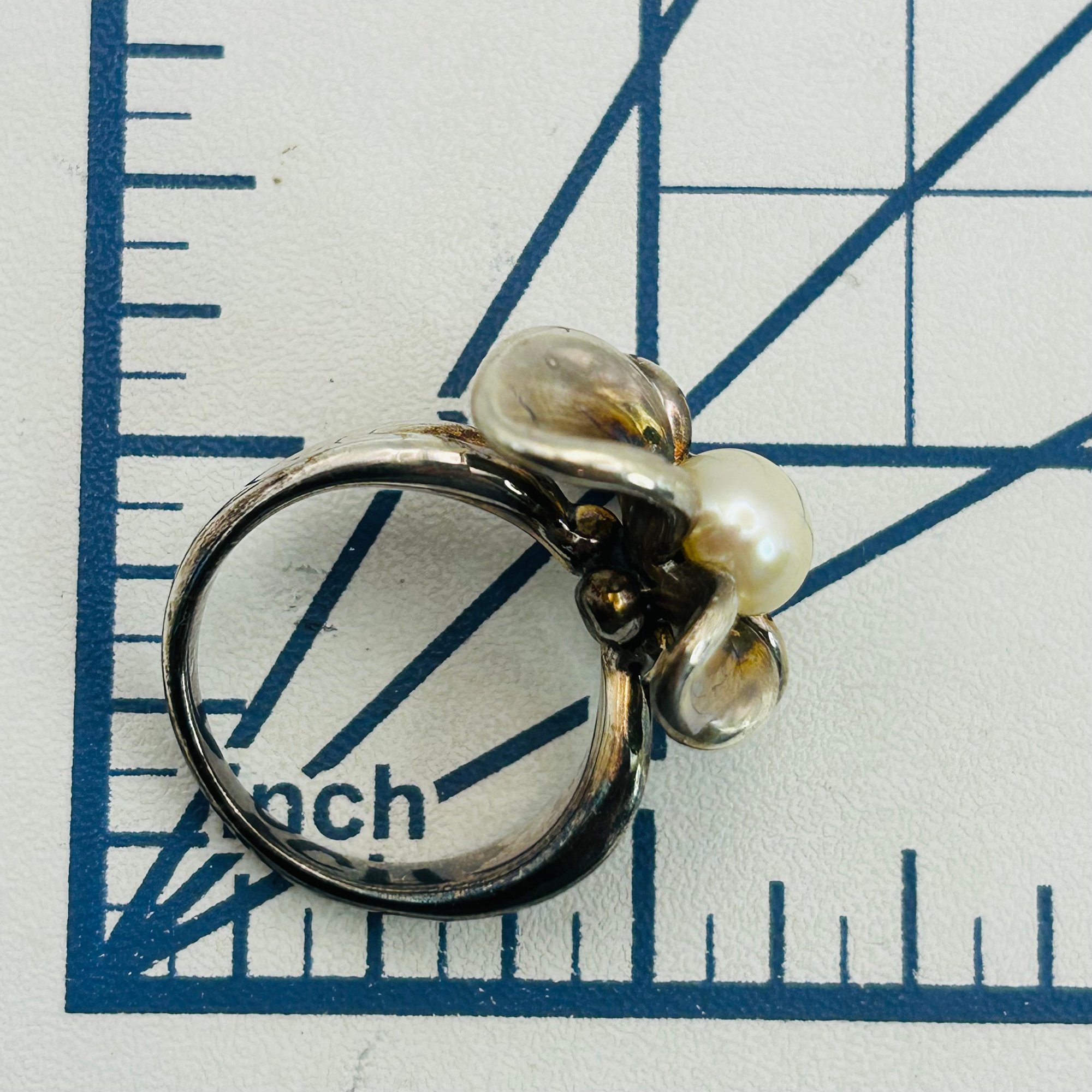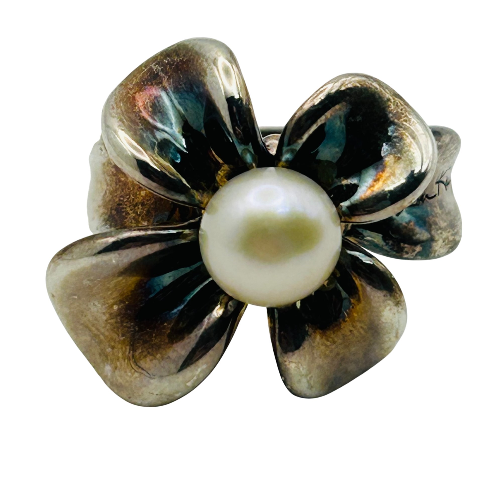 Ann King Sterling pearl flower ring. Size 9. 12.70g