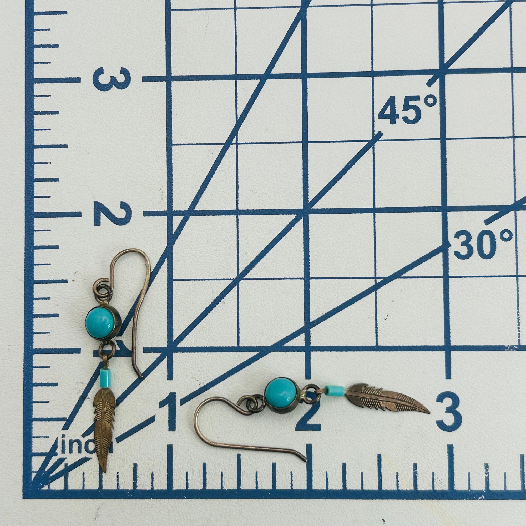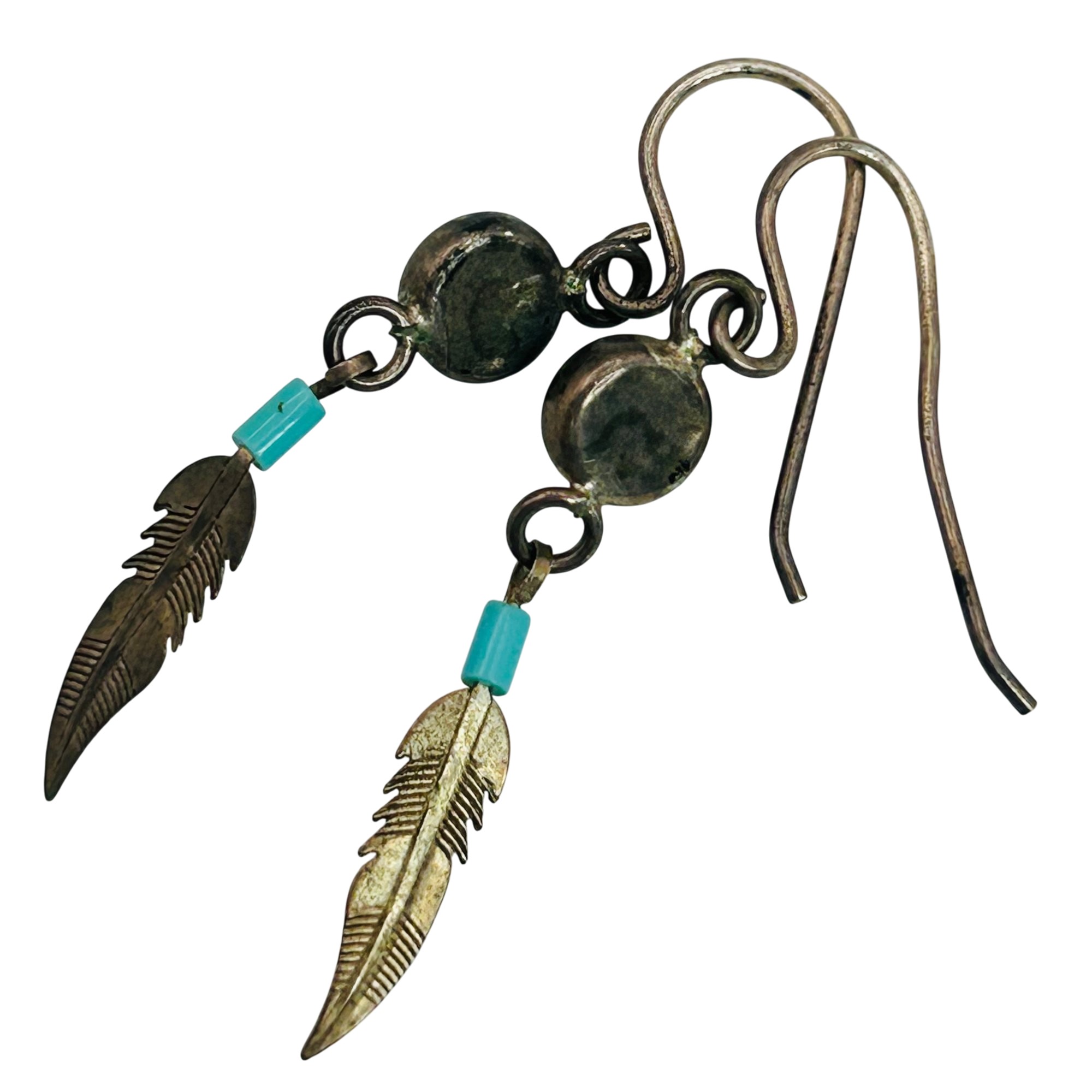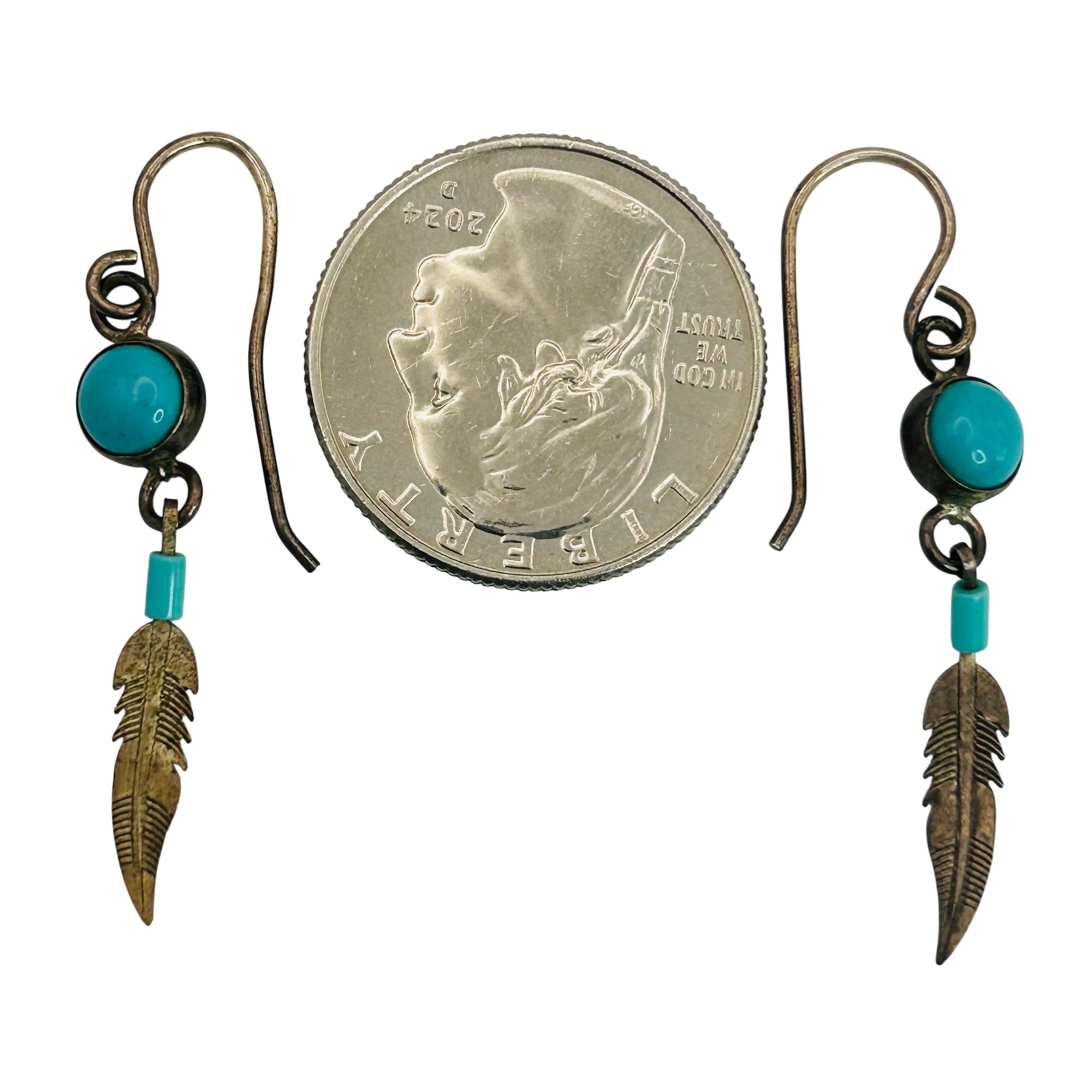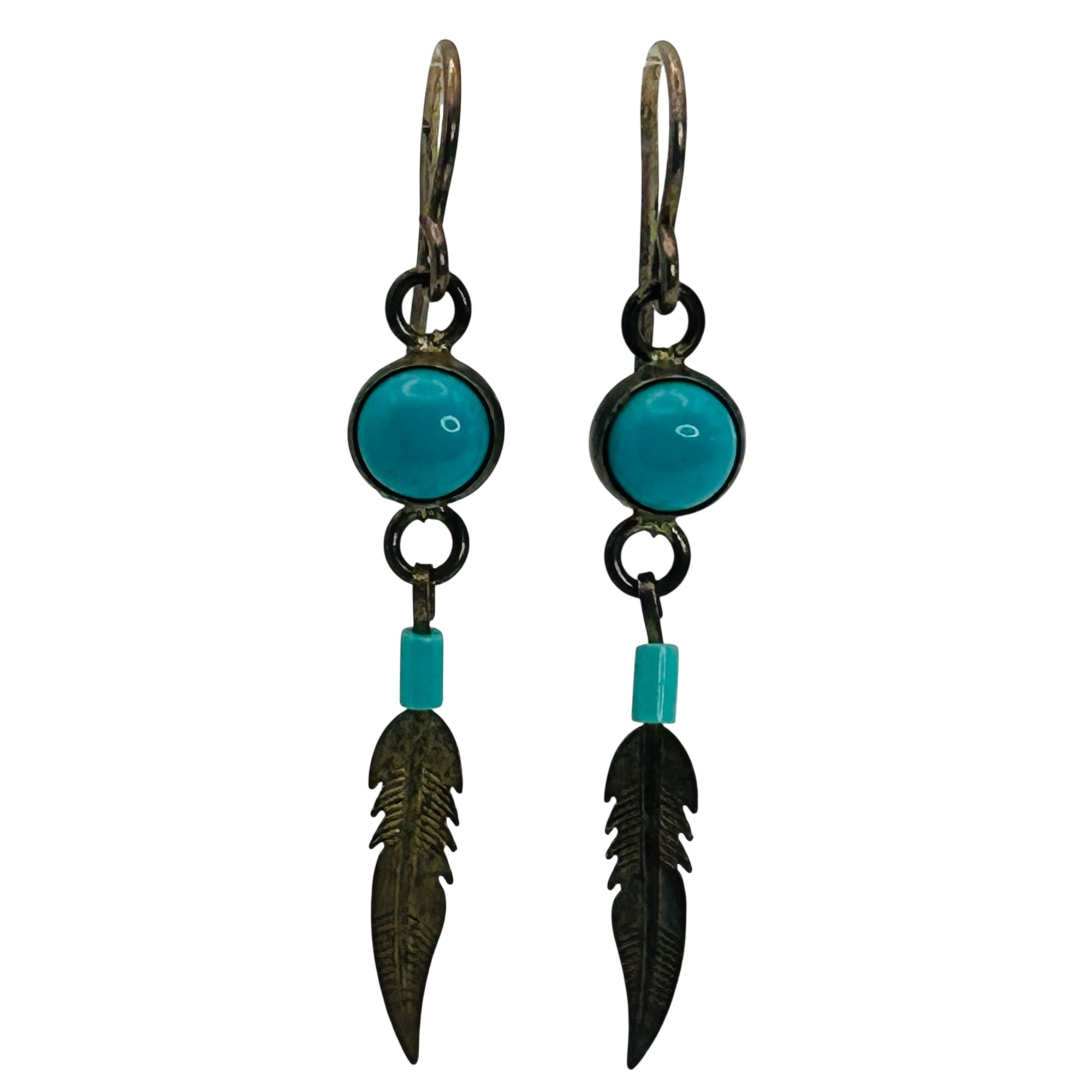 Sterling turquoise southwest leaf hook back earrings. 1.60g