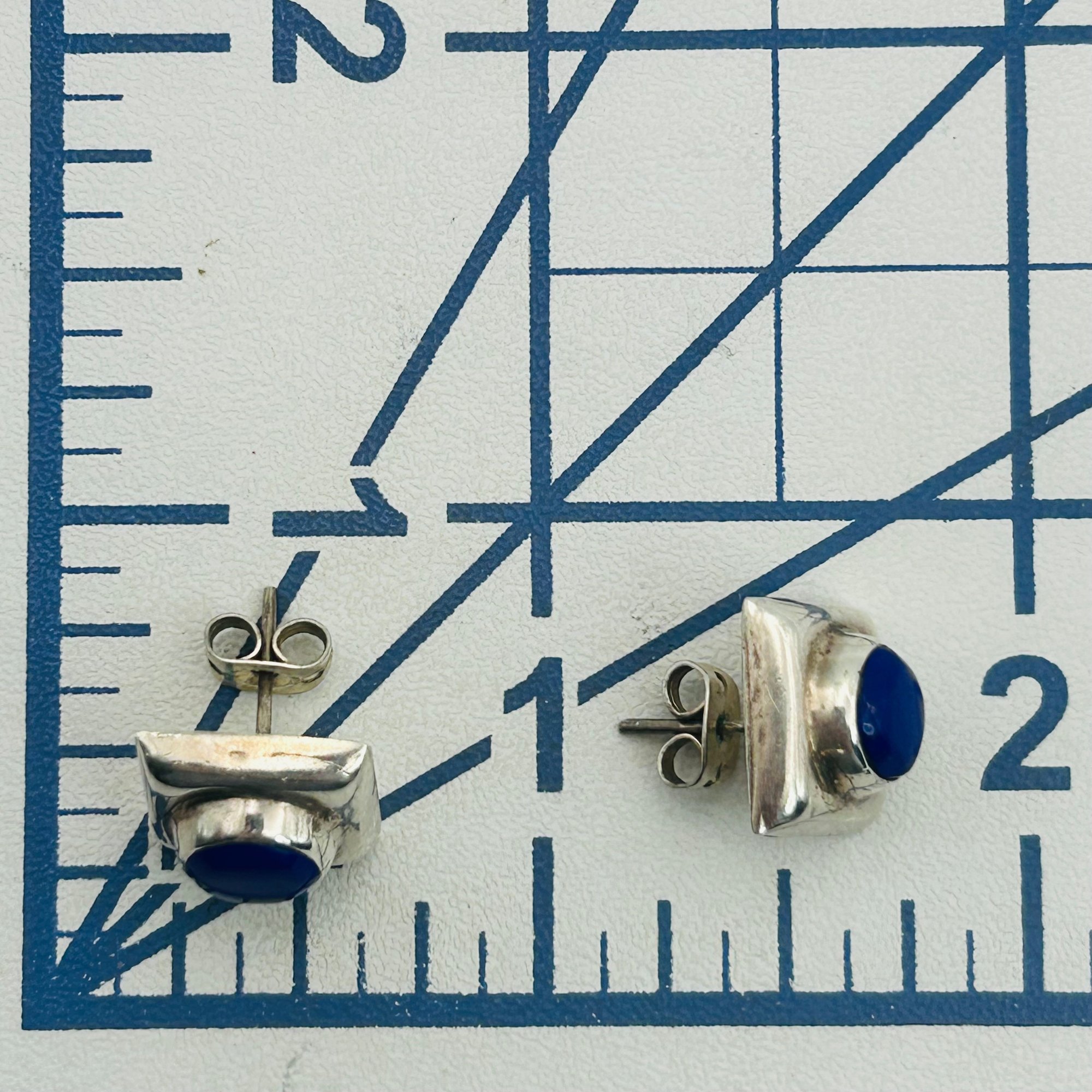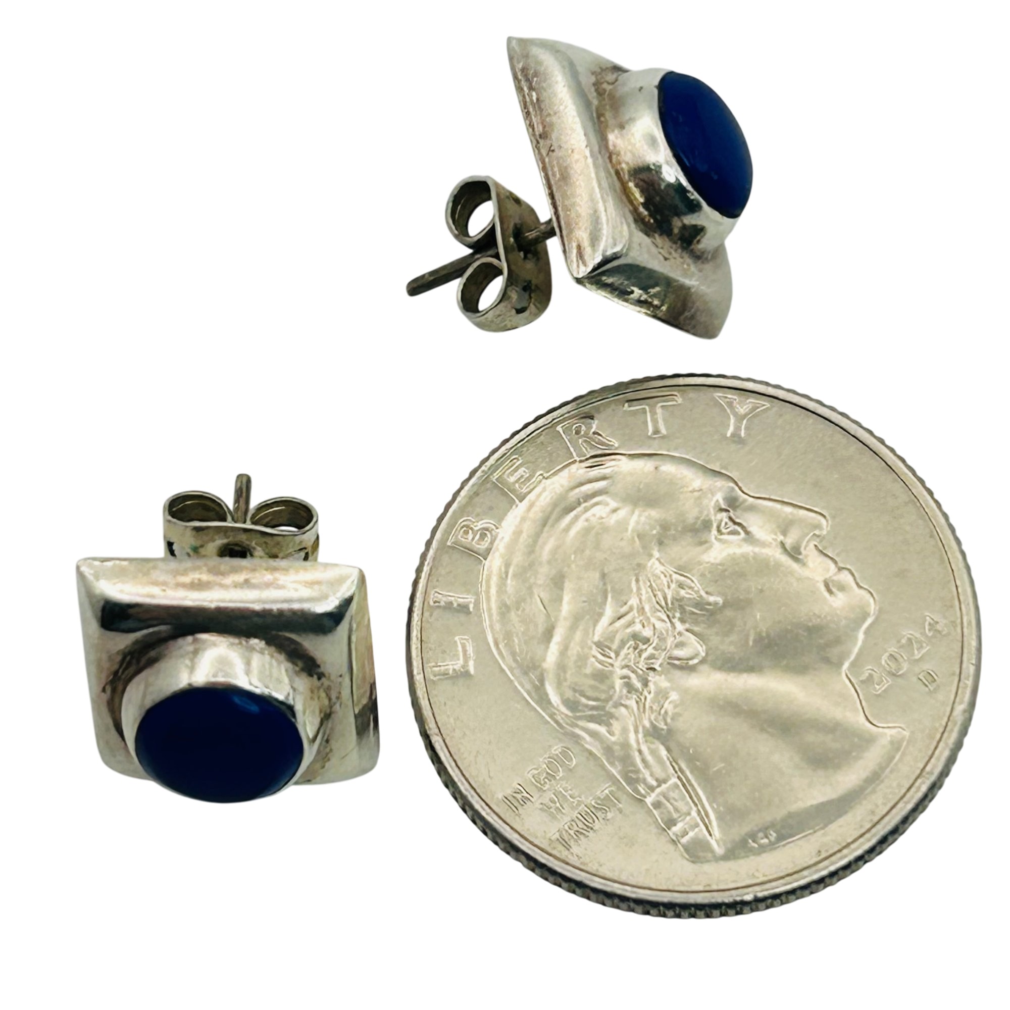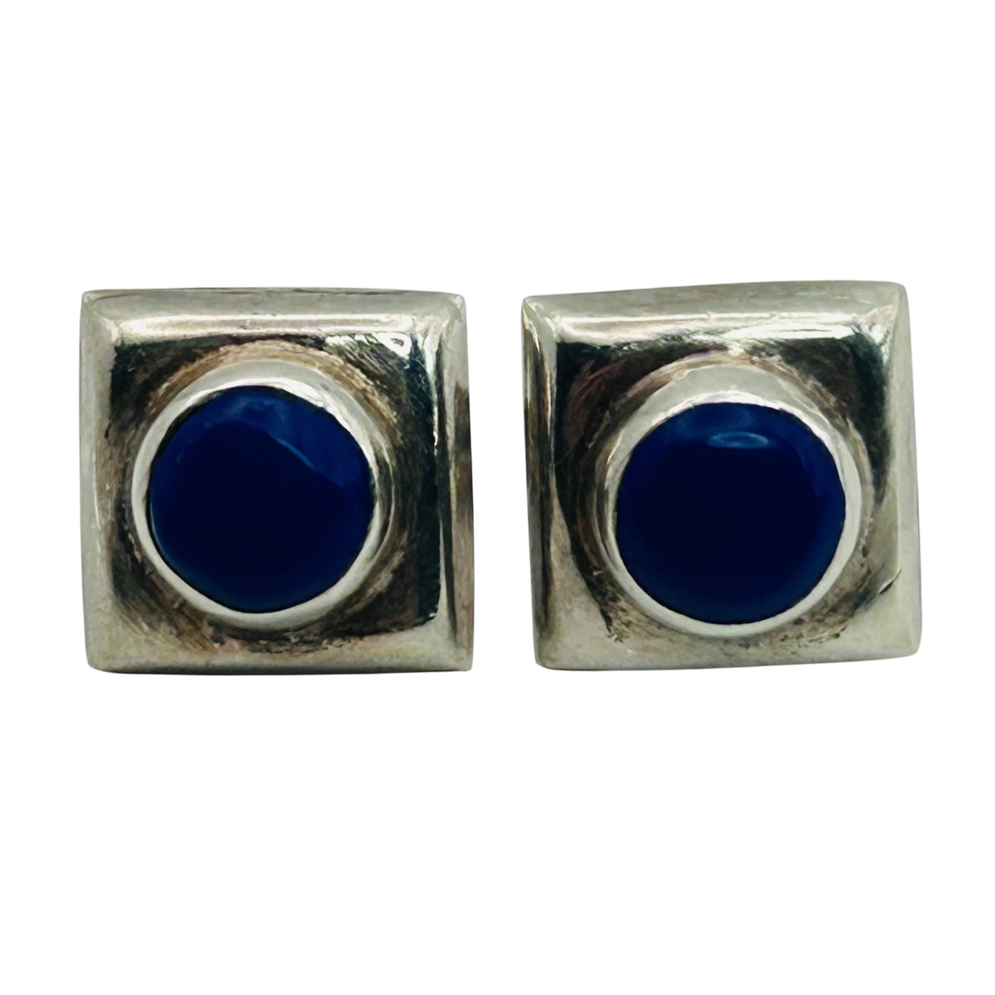 Mexico Sterling lapis lazuli square stud earrings. 4.10g