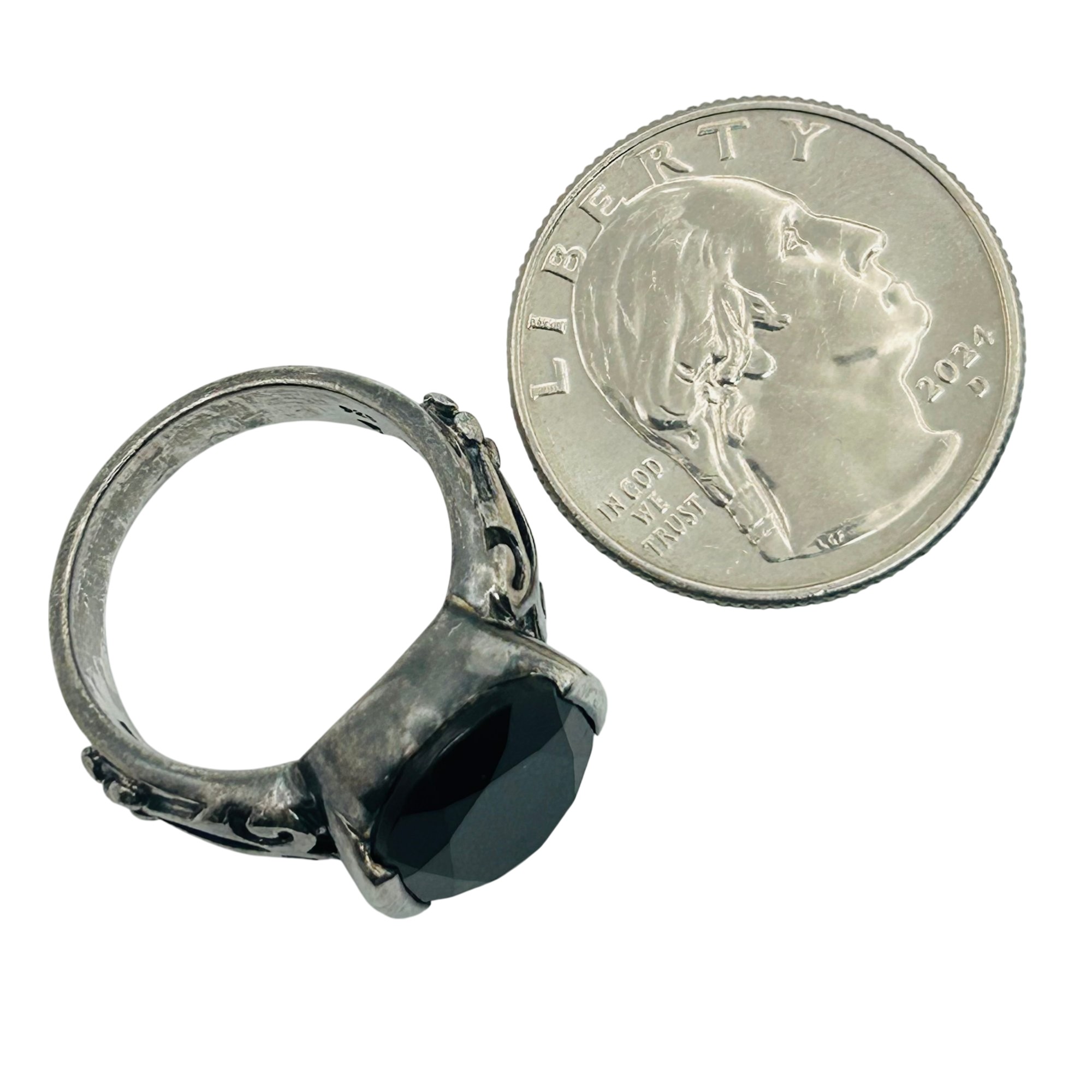 Sterling onyx statement ring. Size 8. 9.50g