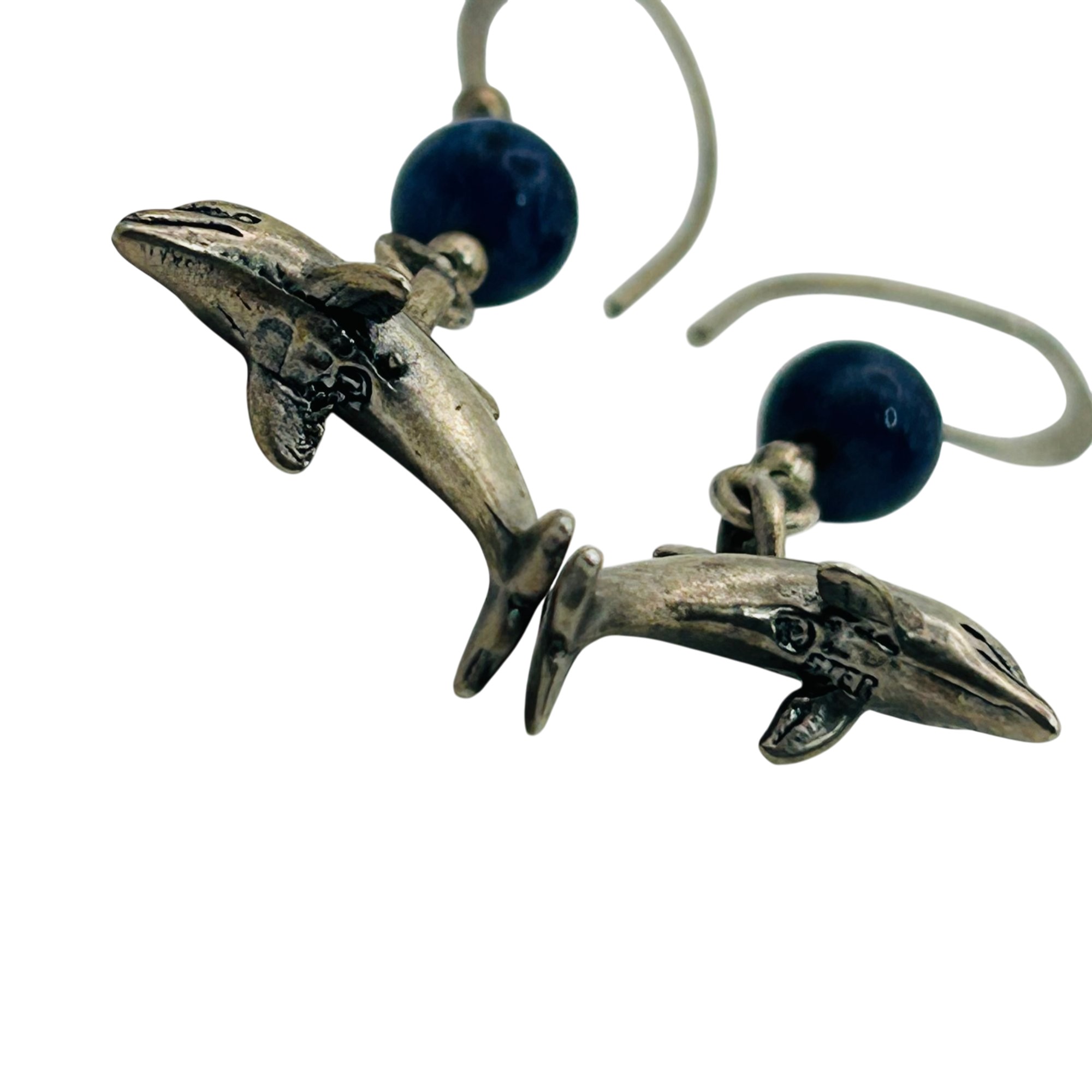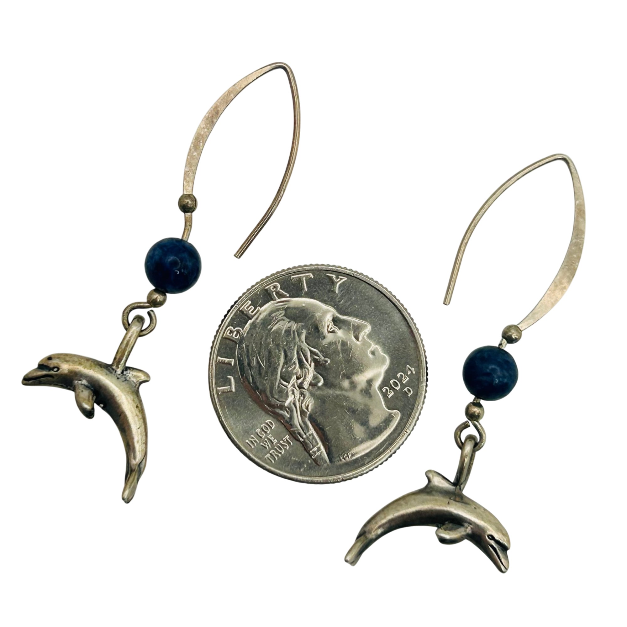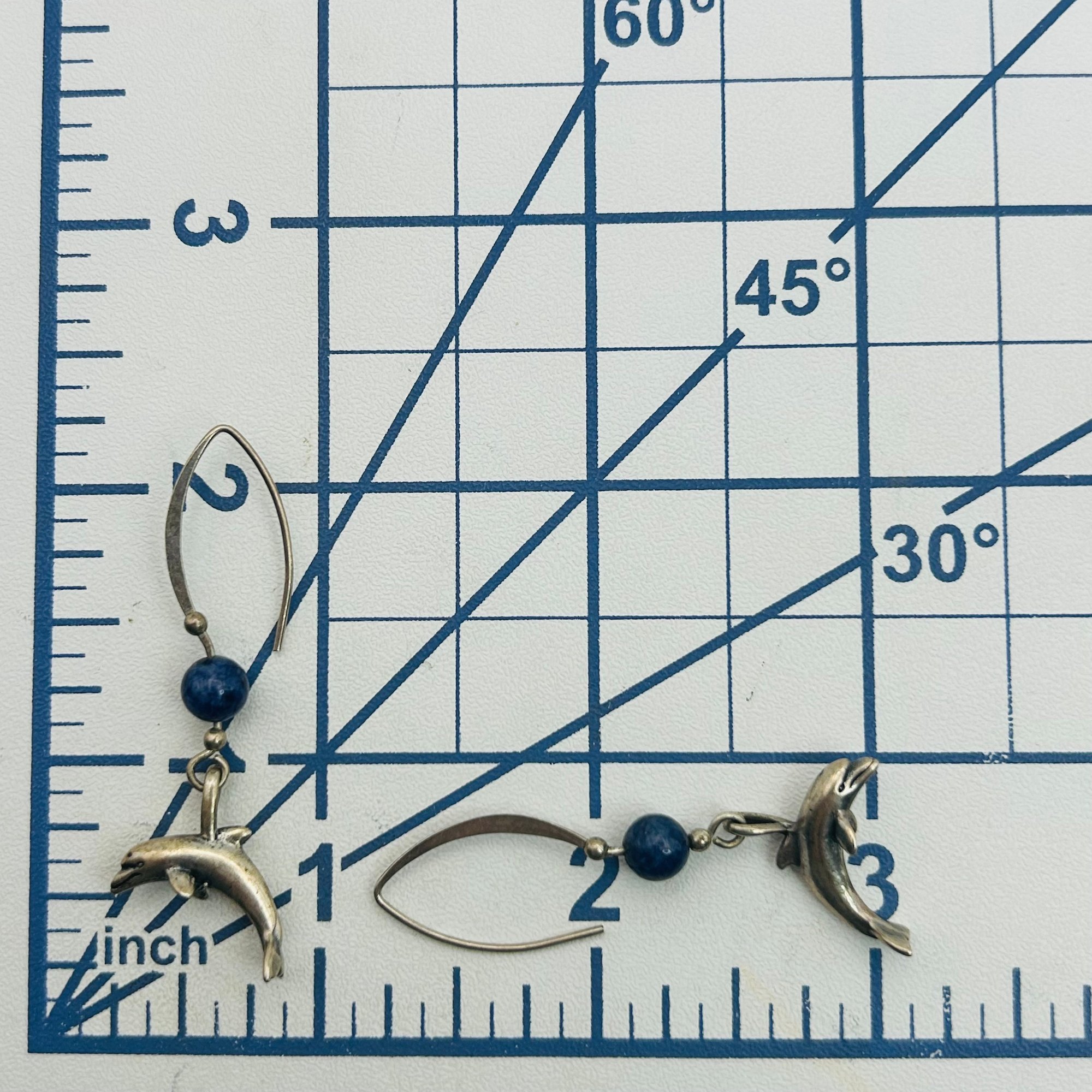 Sterling lapis lazuli dolphin hook back earrings. 5.10g