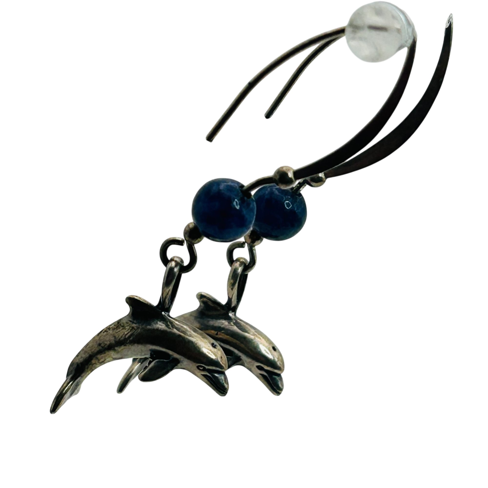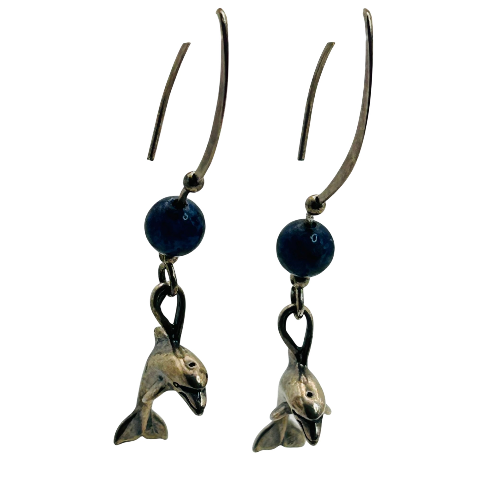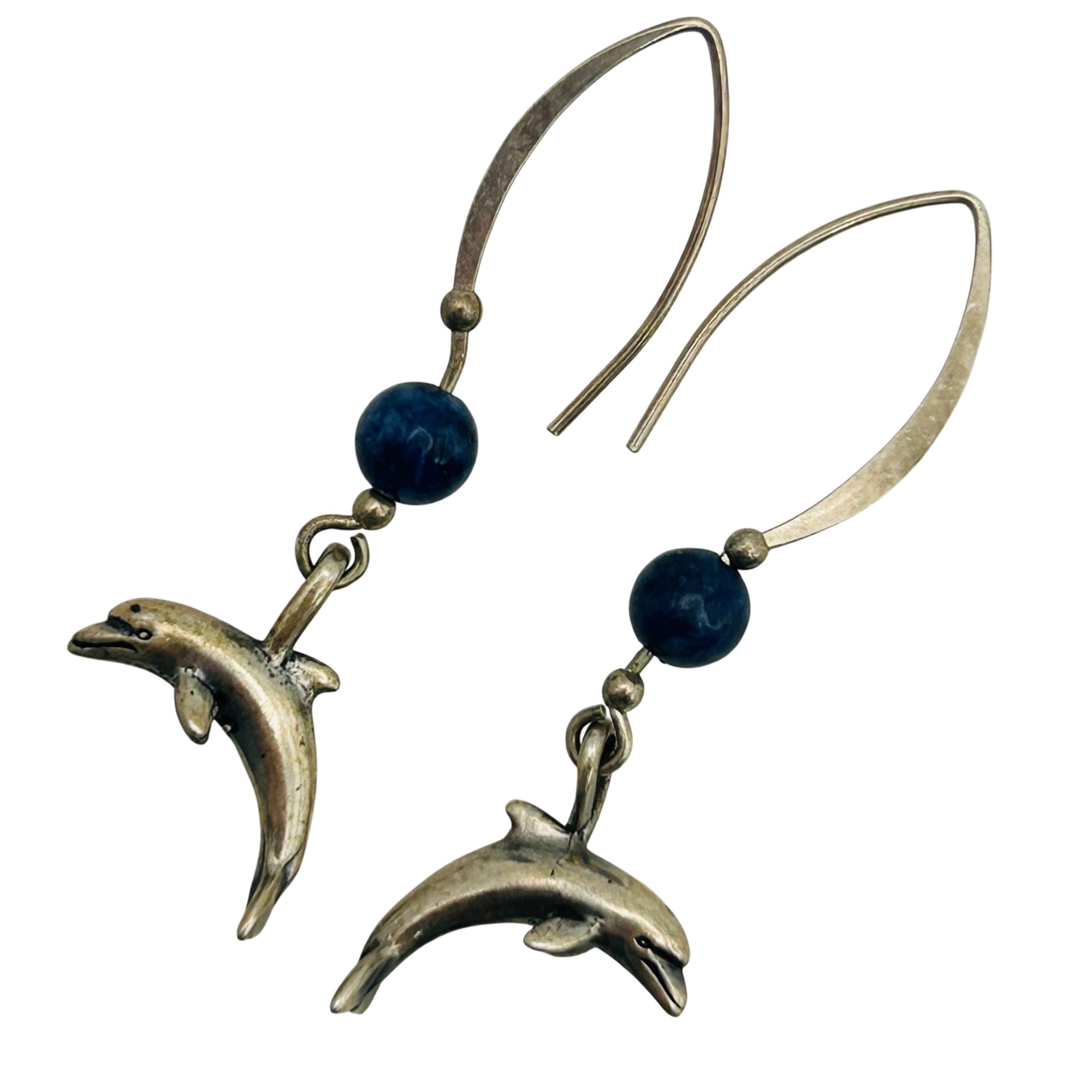 Sterling lapis lazuli dolphin hook back earrings. 5.10g