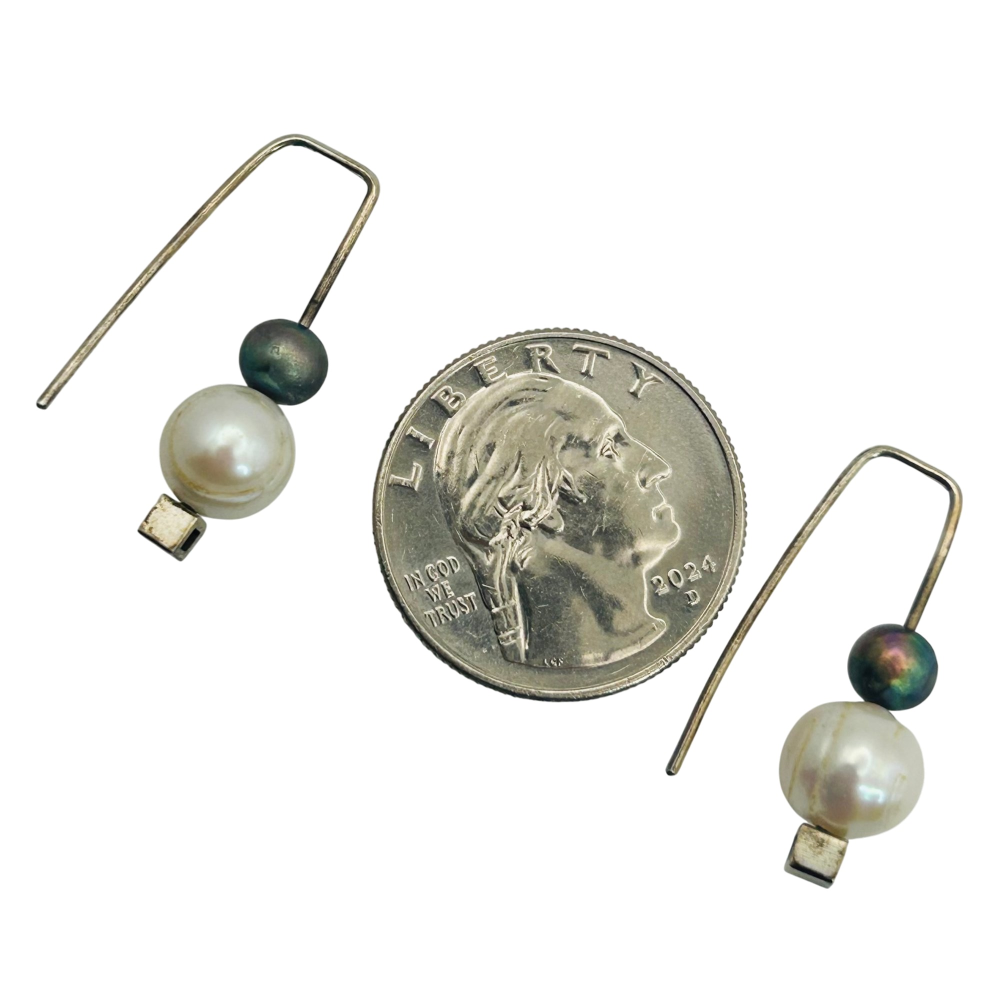 Sterling pearl modern earrings. 3.20g