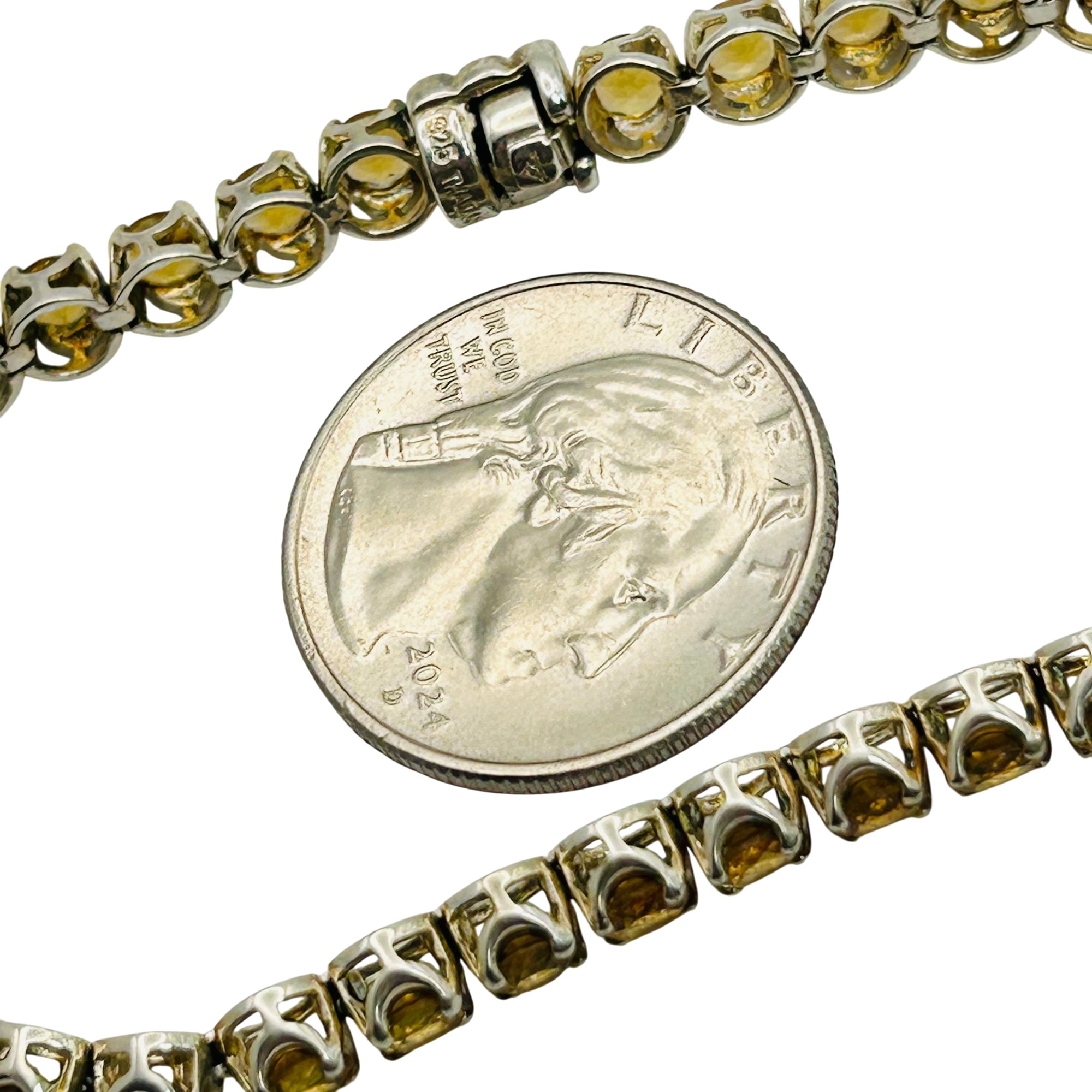 Sterling citrine magnetic clasp tennis bracelet. 10.70g