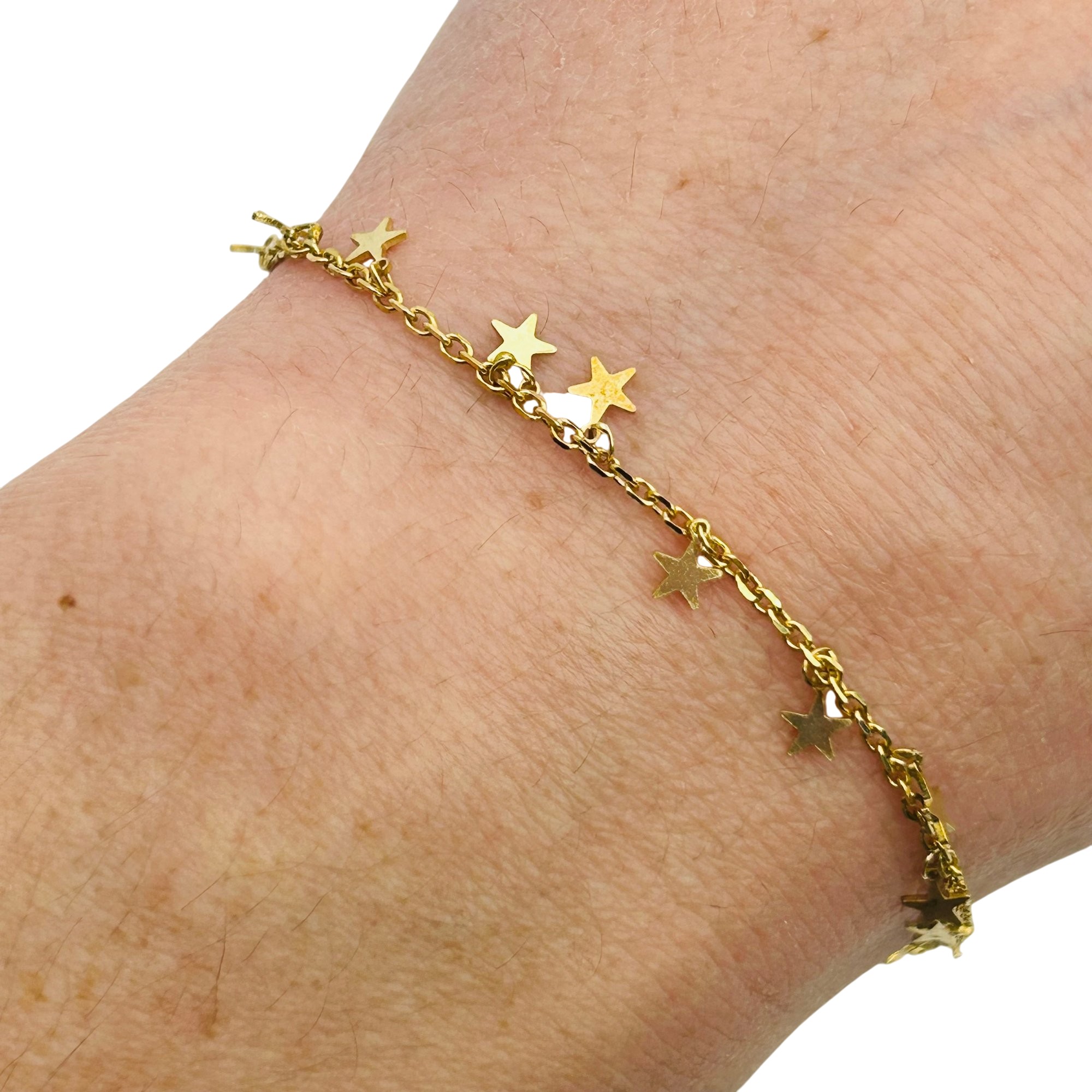 Sterling adjustable cable chain star charm anklet. 2.20g