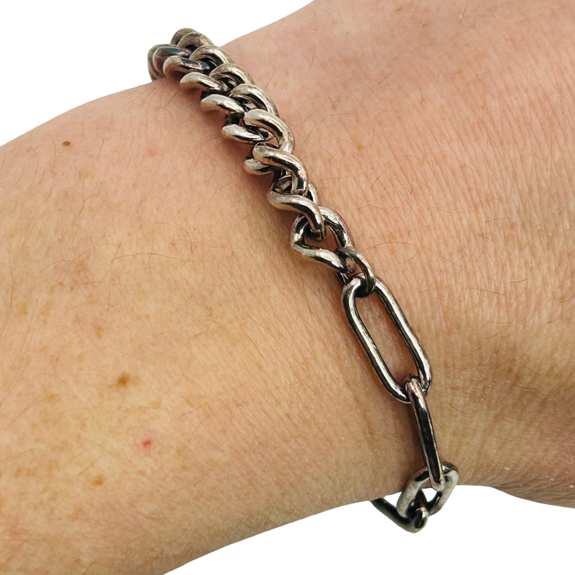 1758 AR Italy Sterling Link And Curb Chain Bracelet