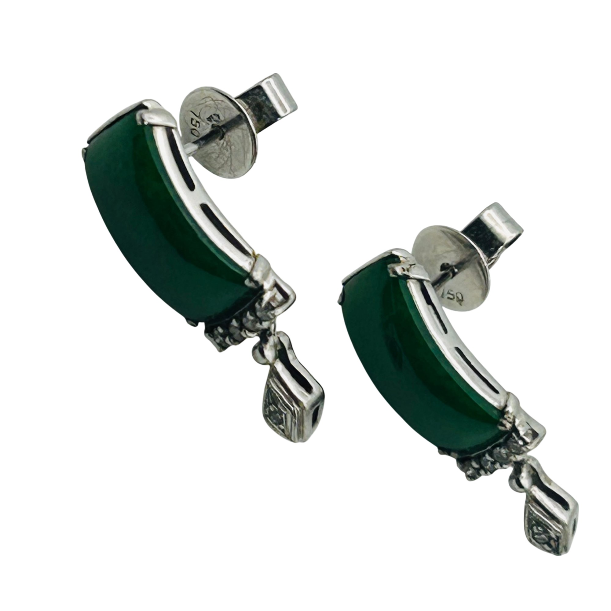 750 silver jade earrings. 4.50g