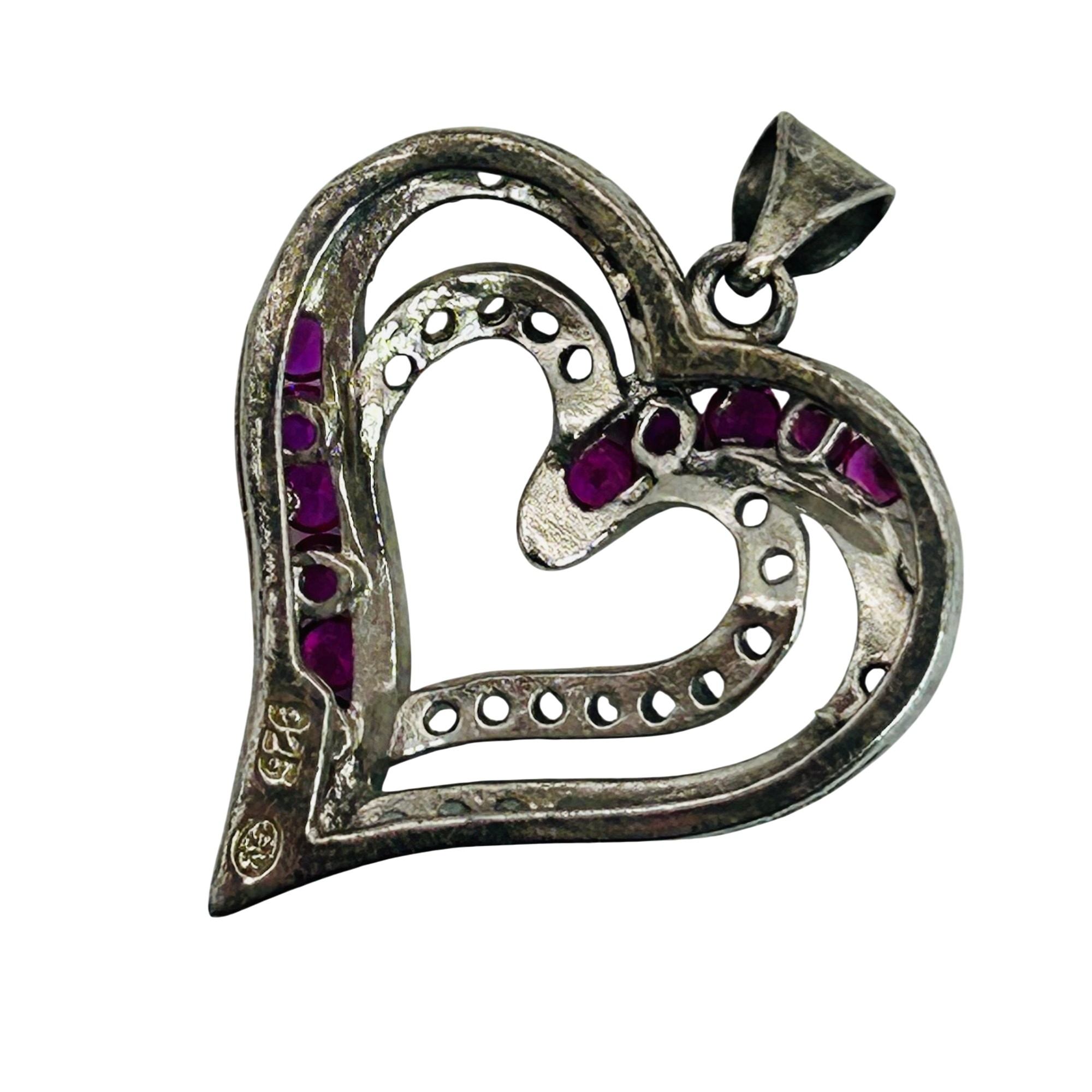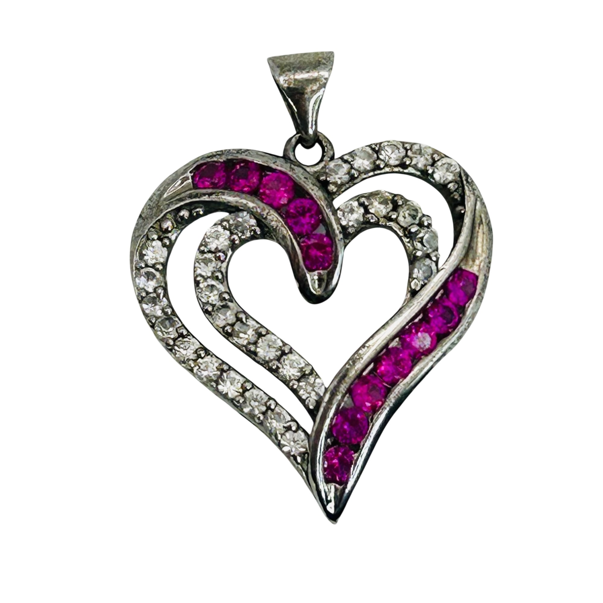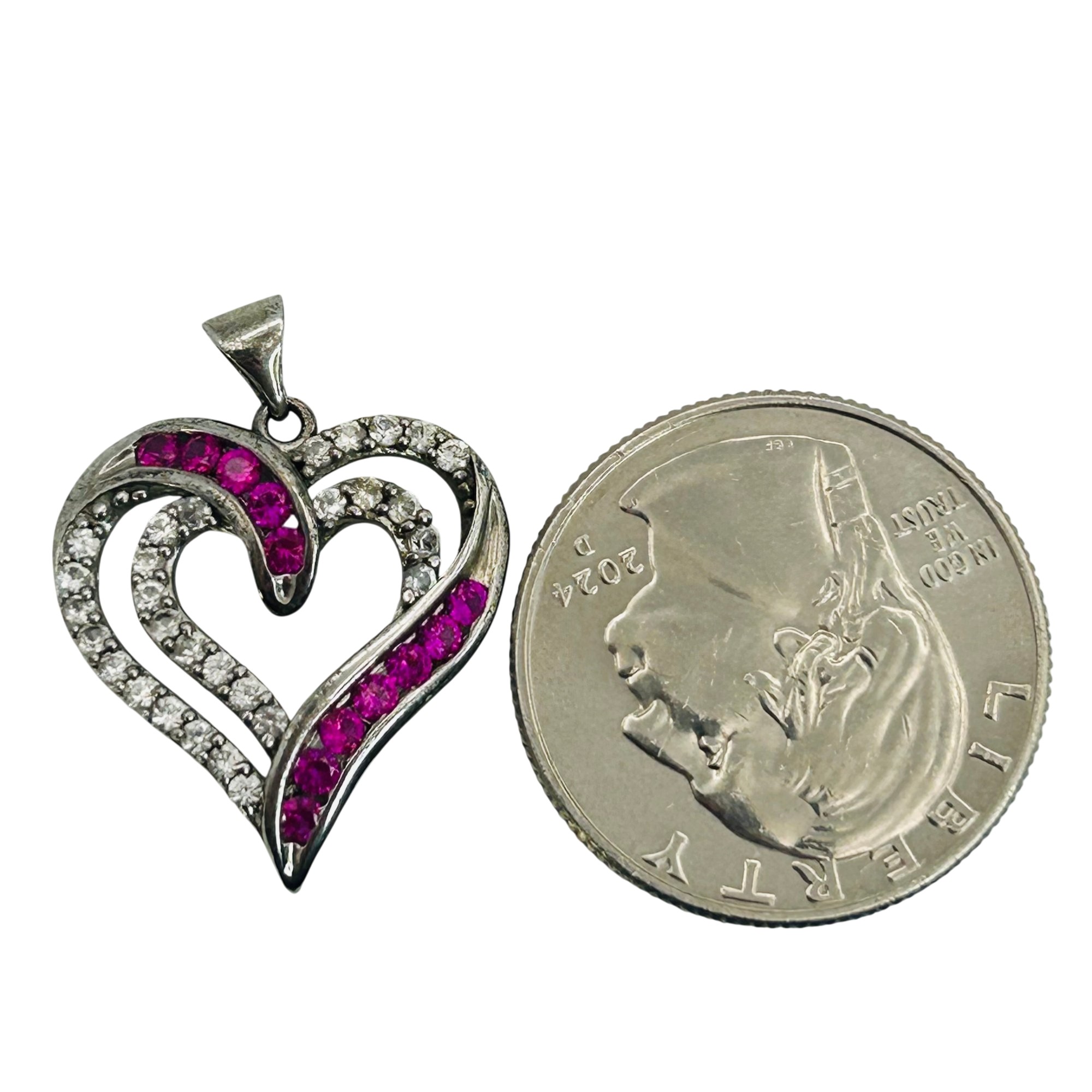 HN Sterling pink topaz and spinel heart pendant. 3.10g
