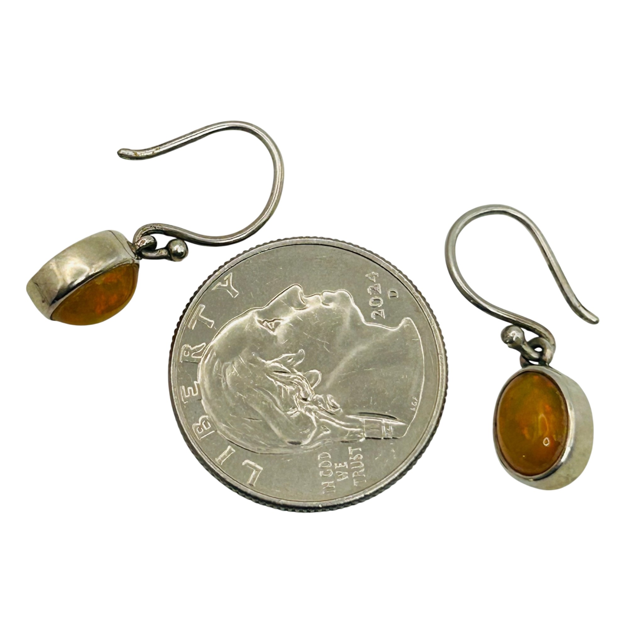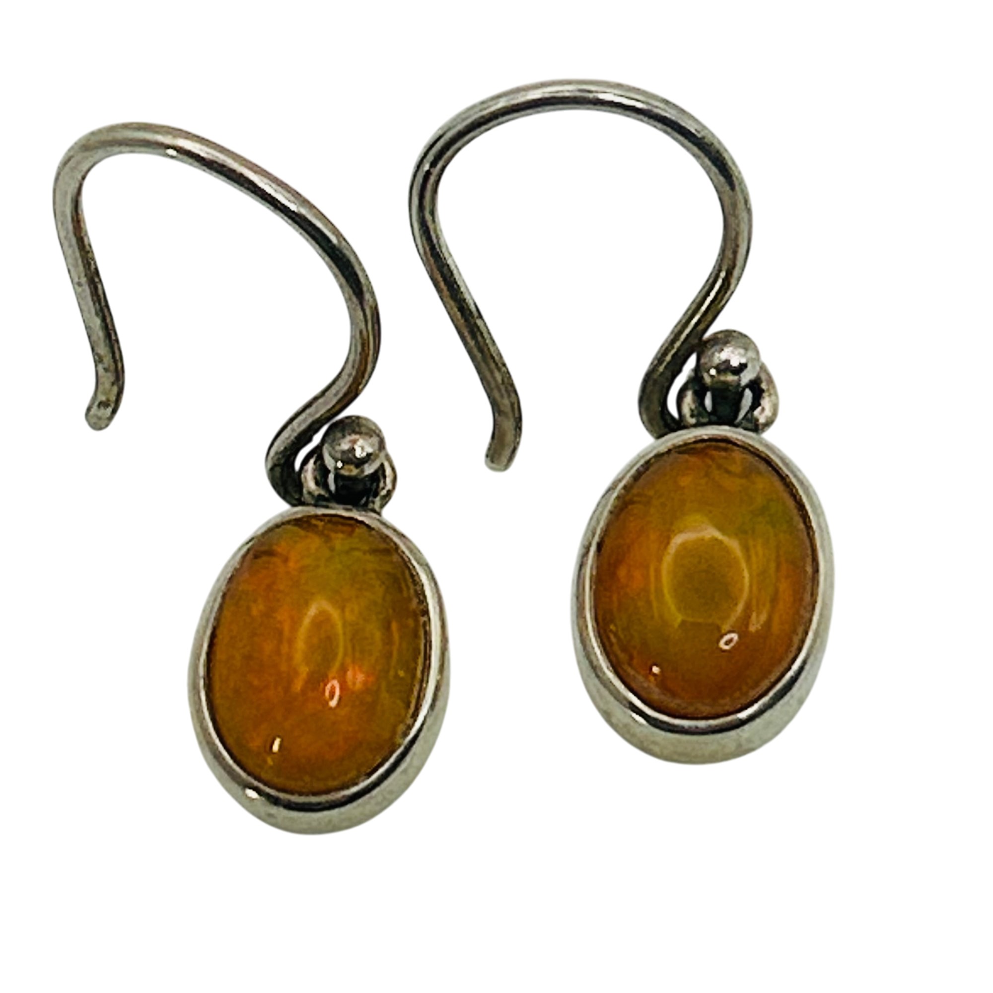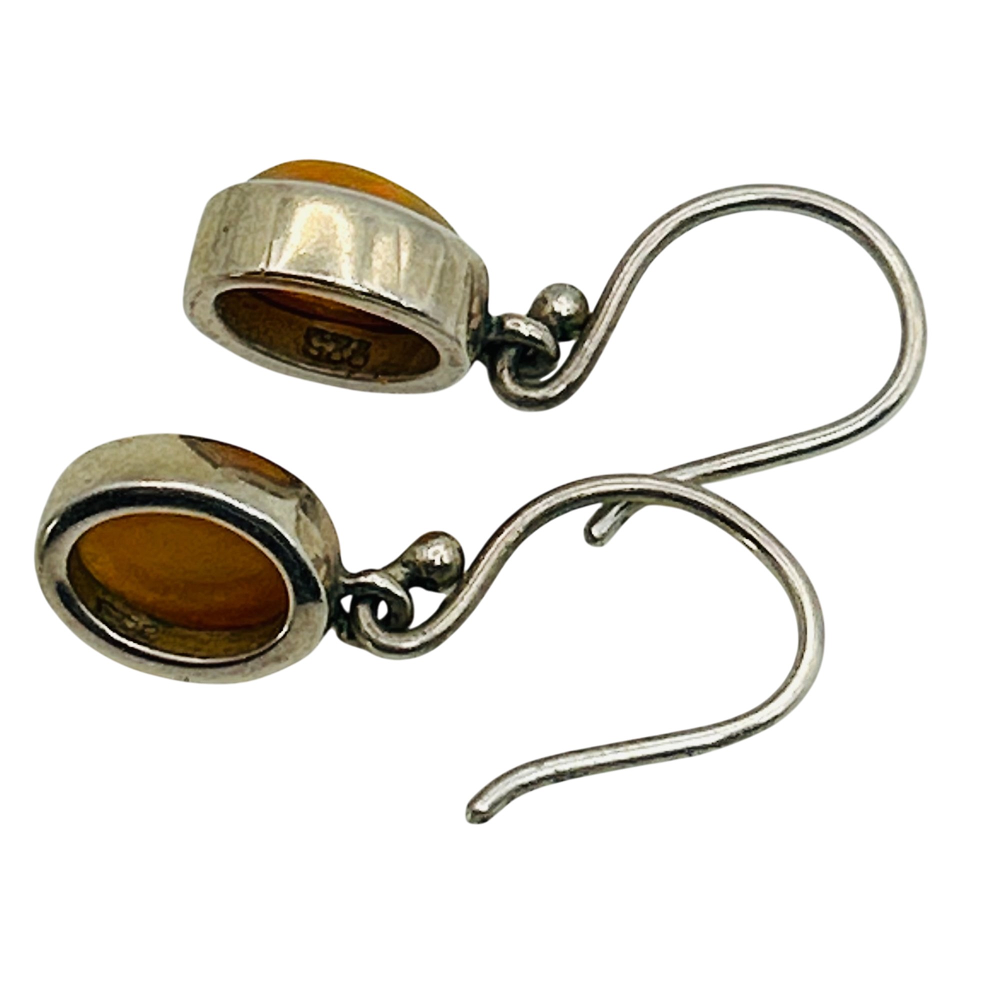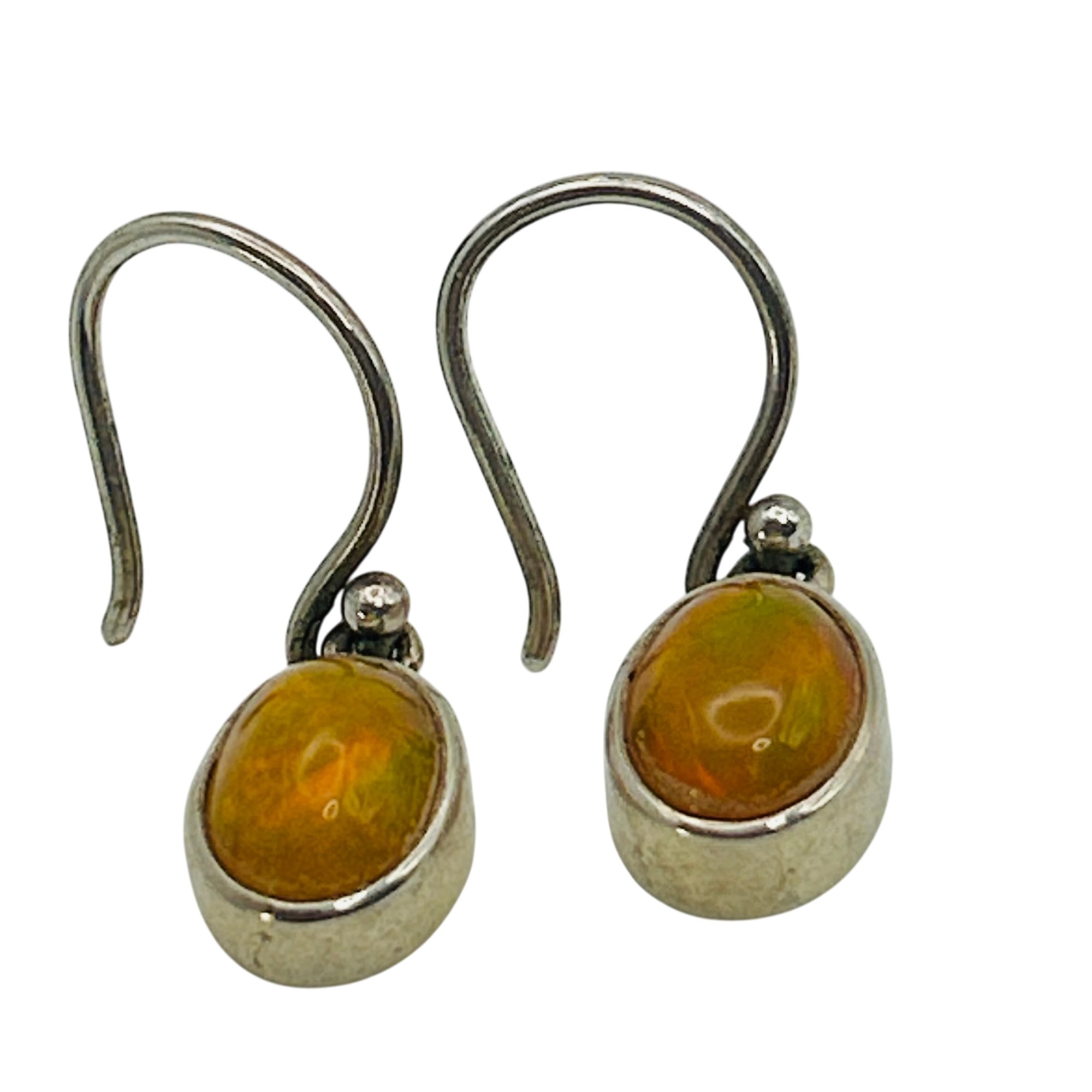 Sterling yellow opal hook back earrings. 3.10g