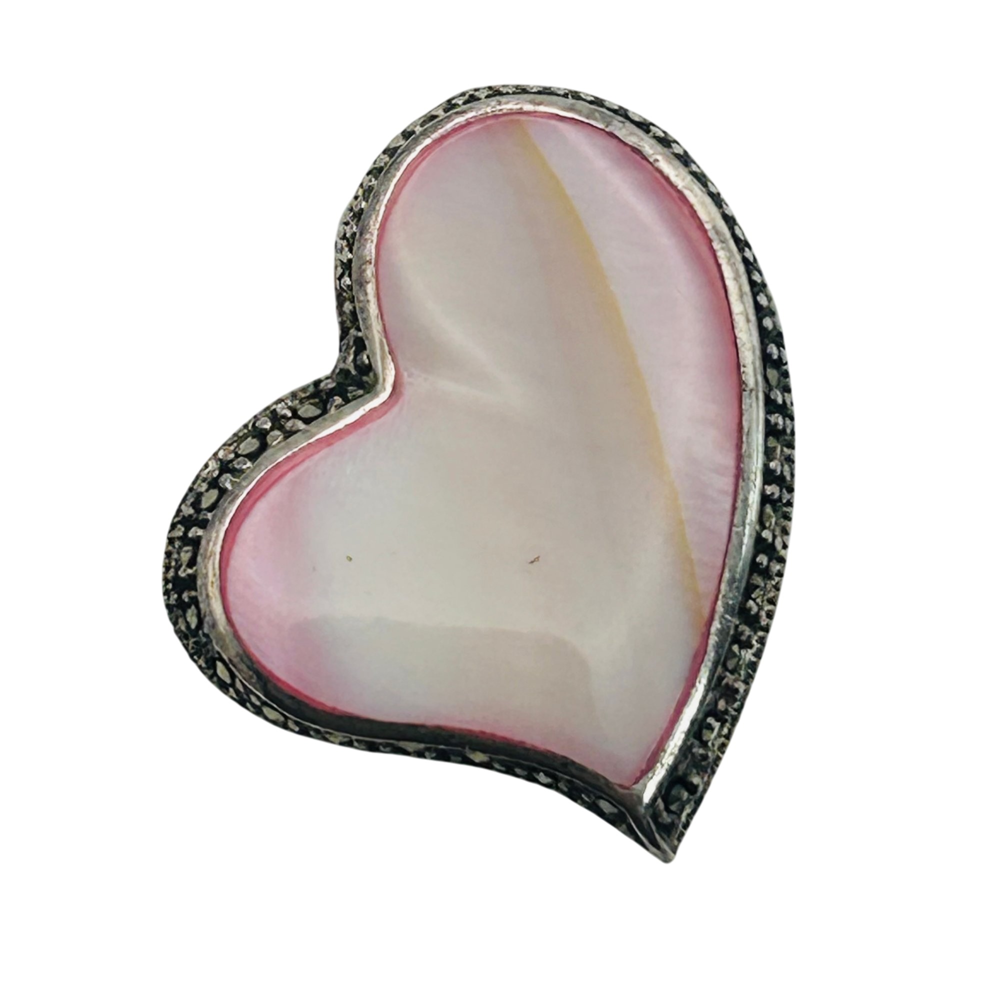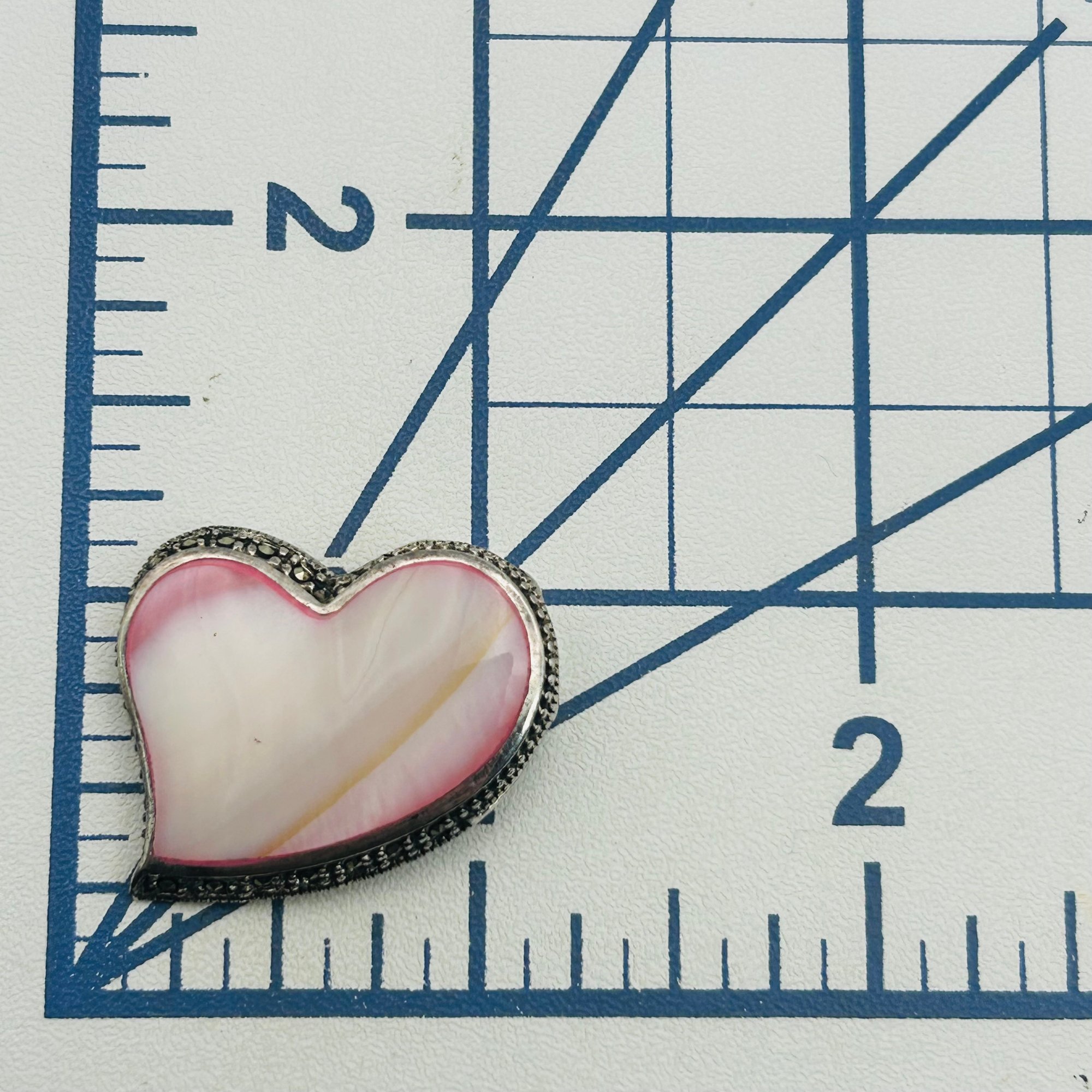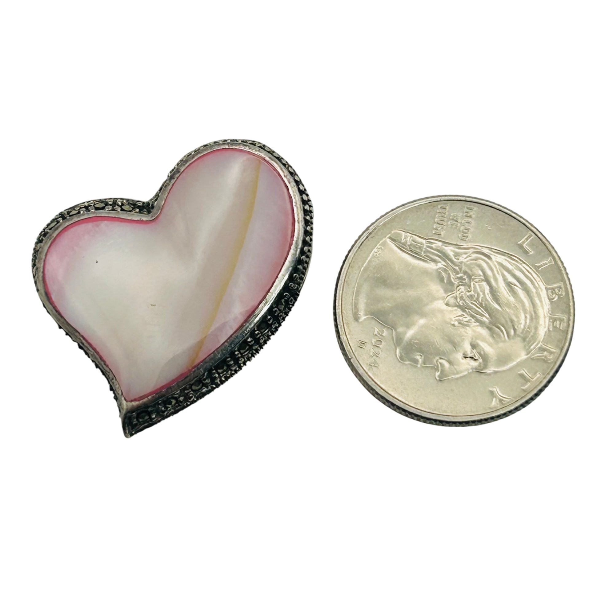Sterling mother of pearl and marcasite heart pendant. 8.30g