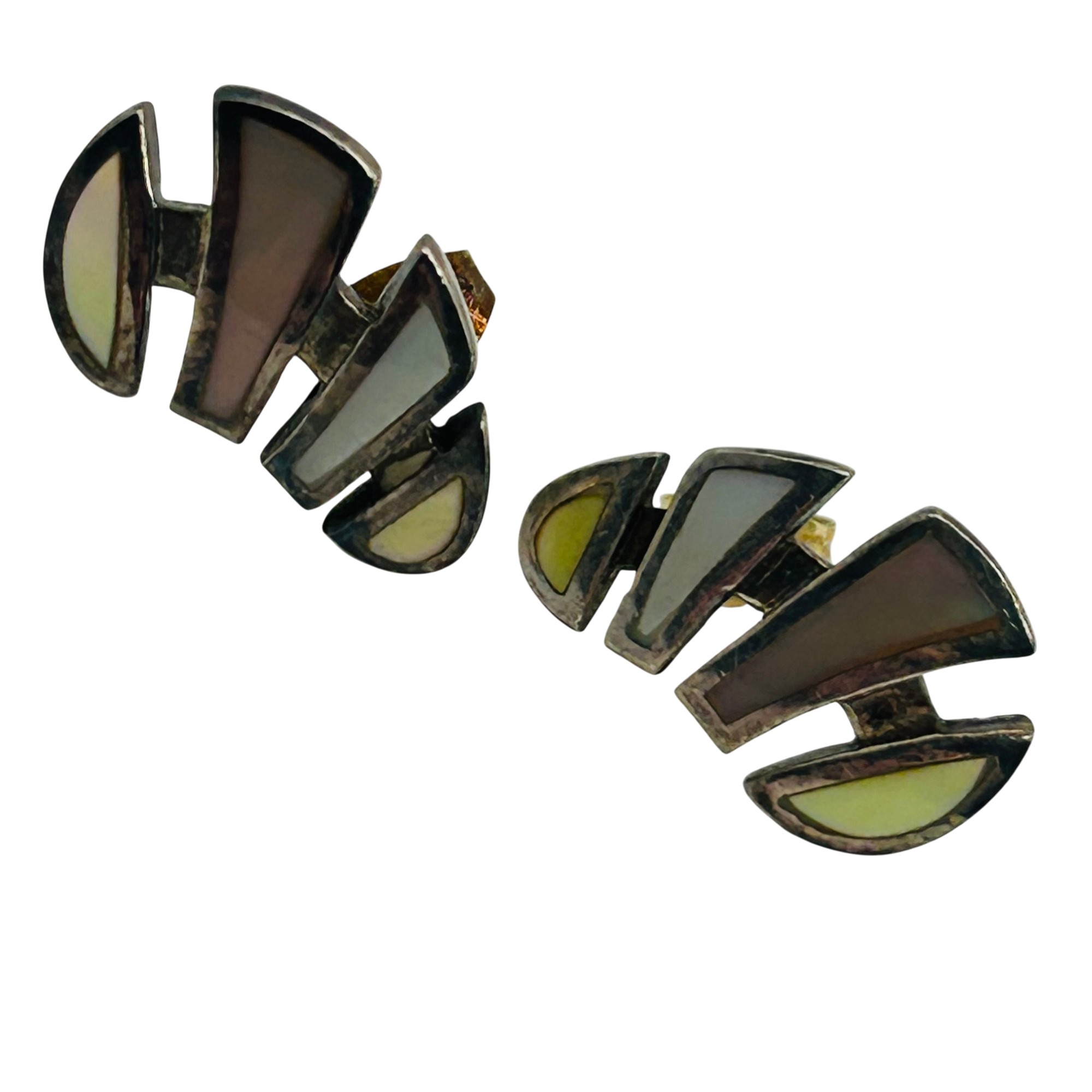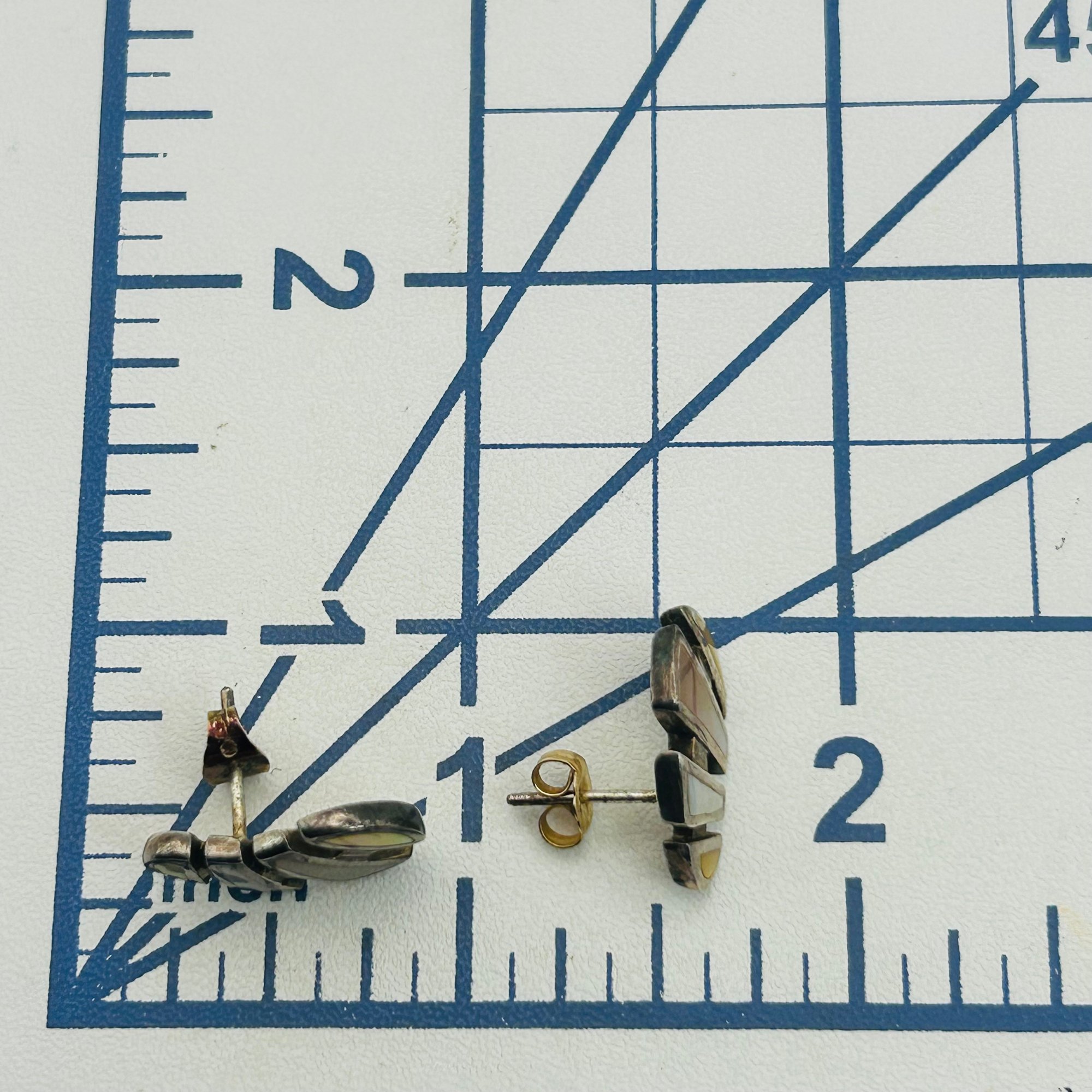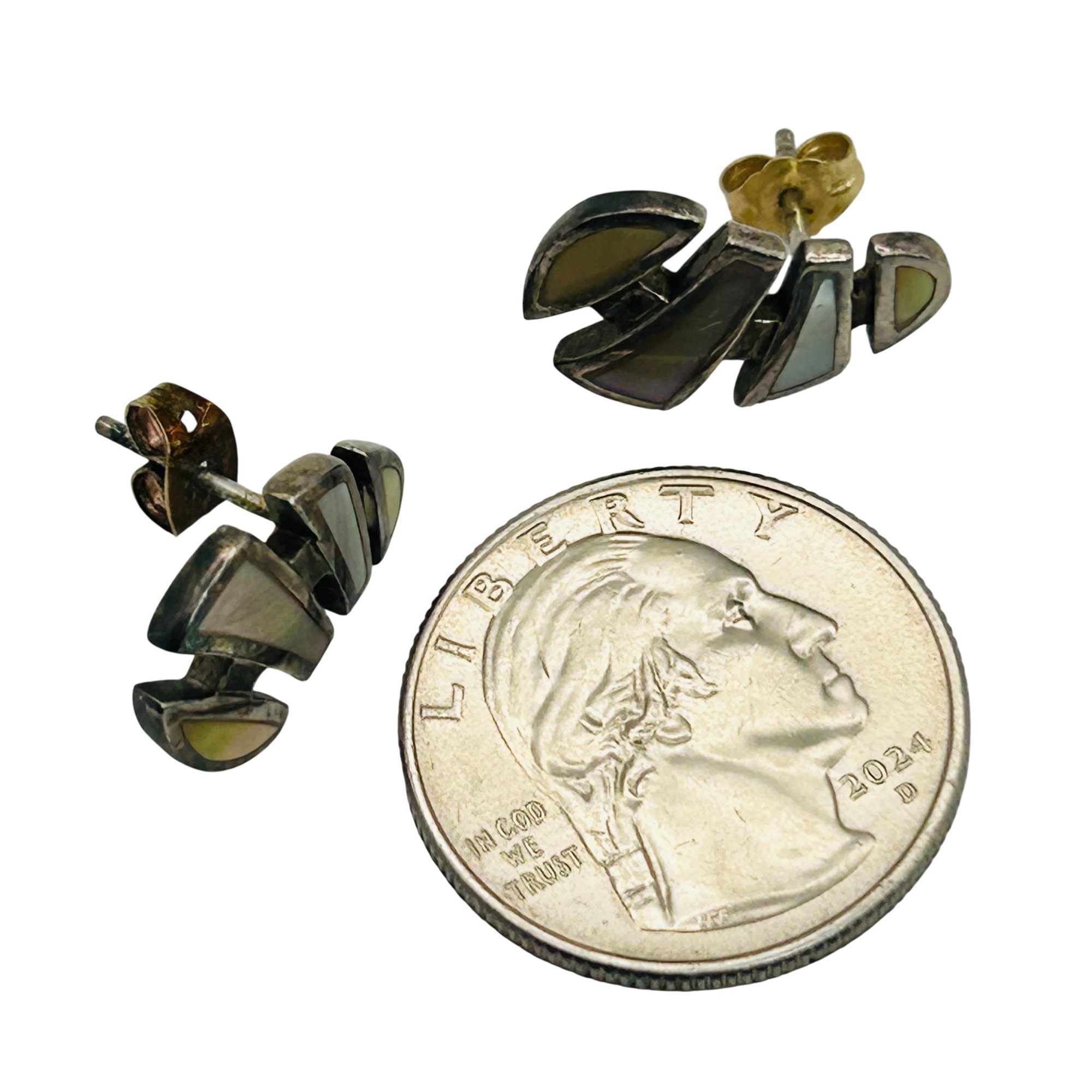 Sterling mother of pearl modern stud earrings. 4.10g