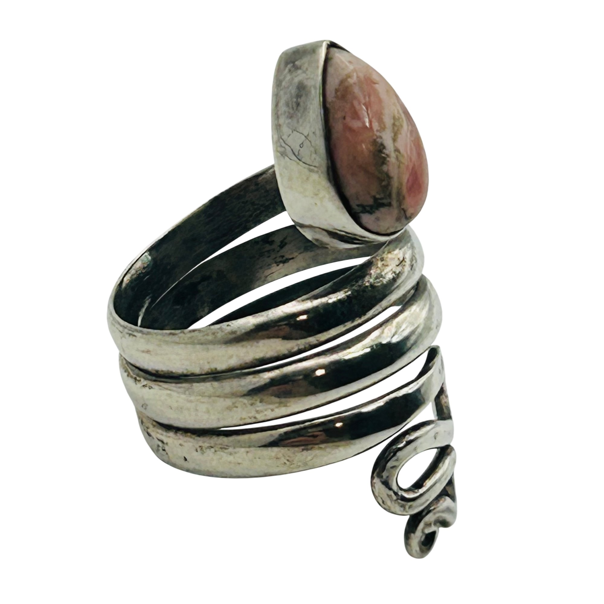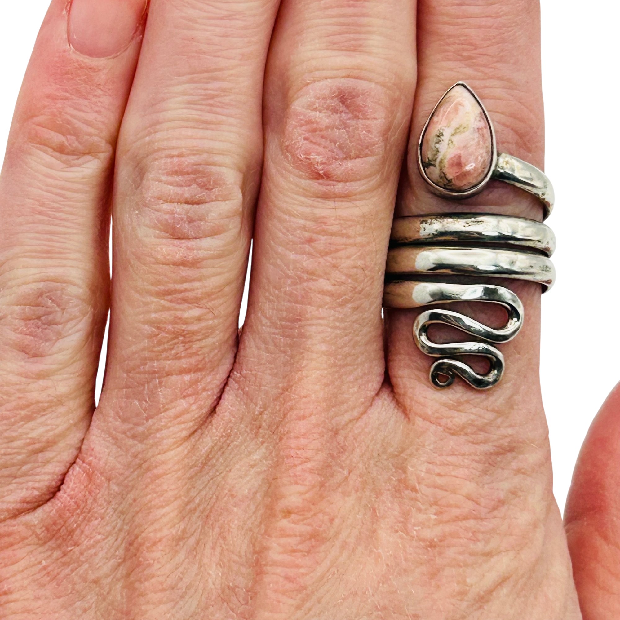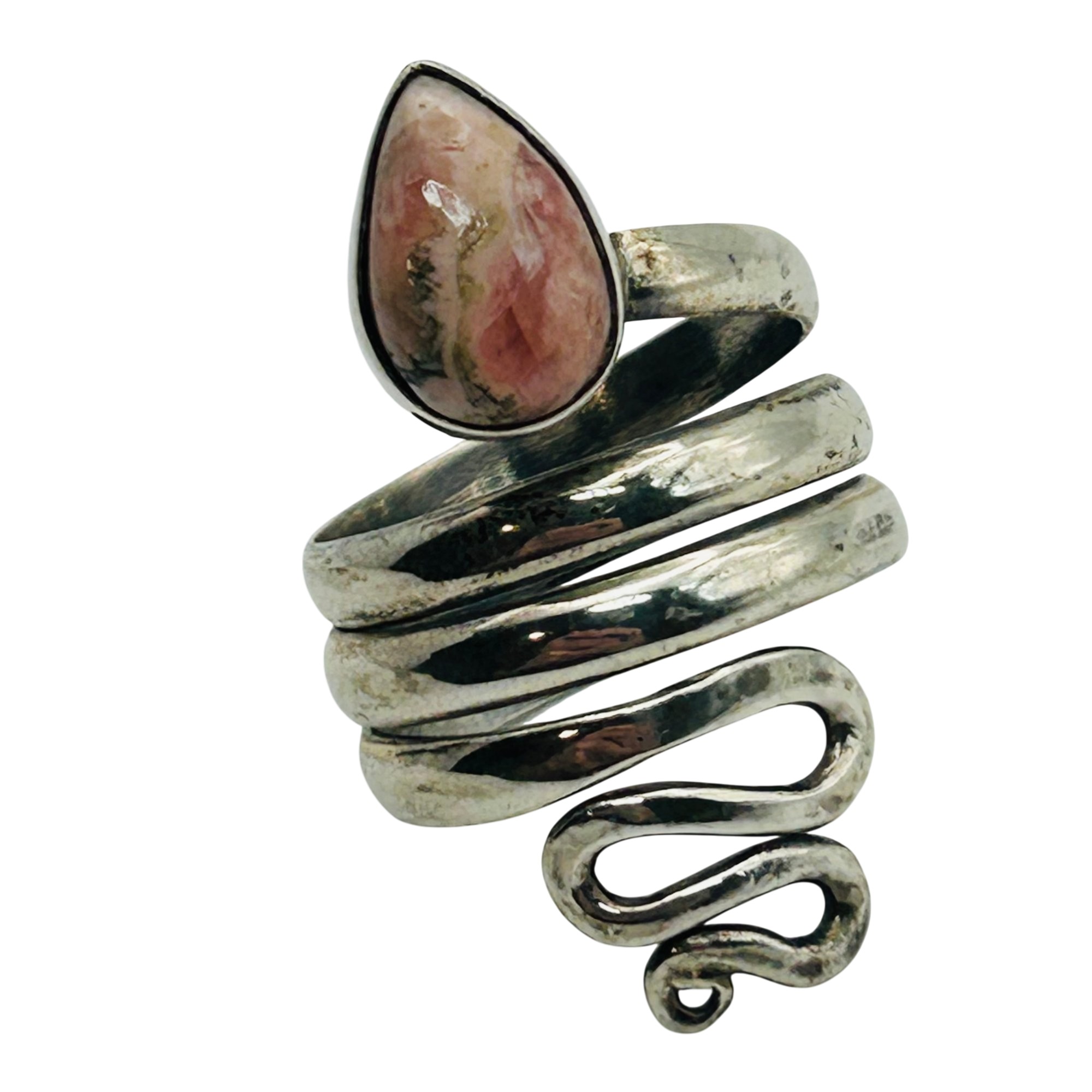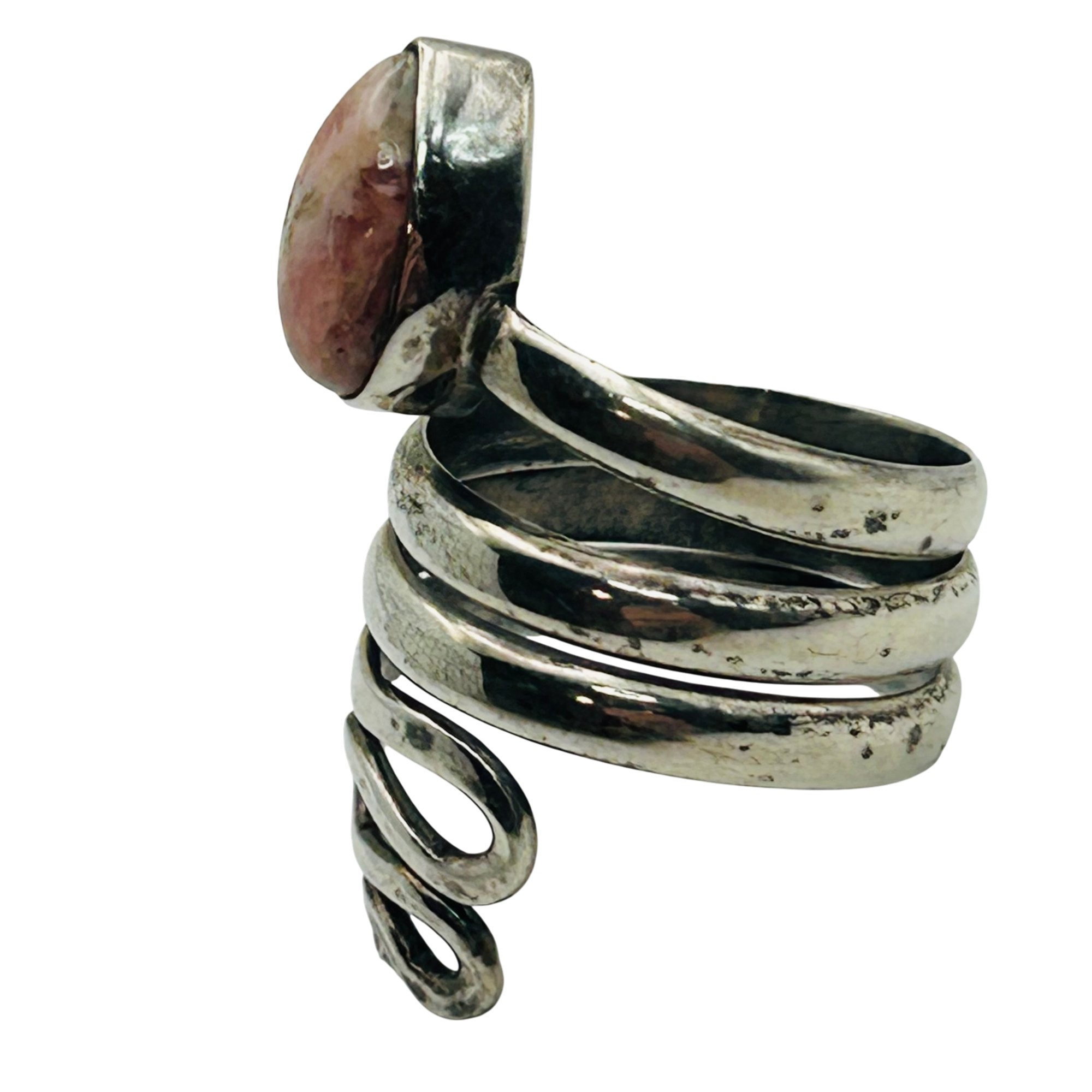 Sterling Rhodochrosite Adjustable Wrap Snake Ring.