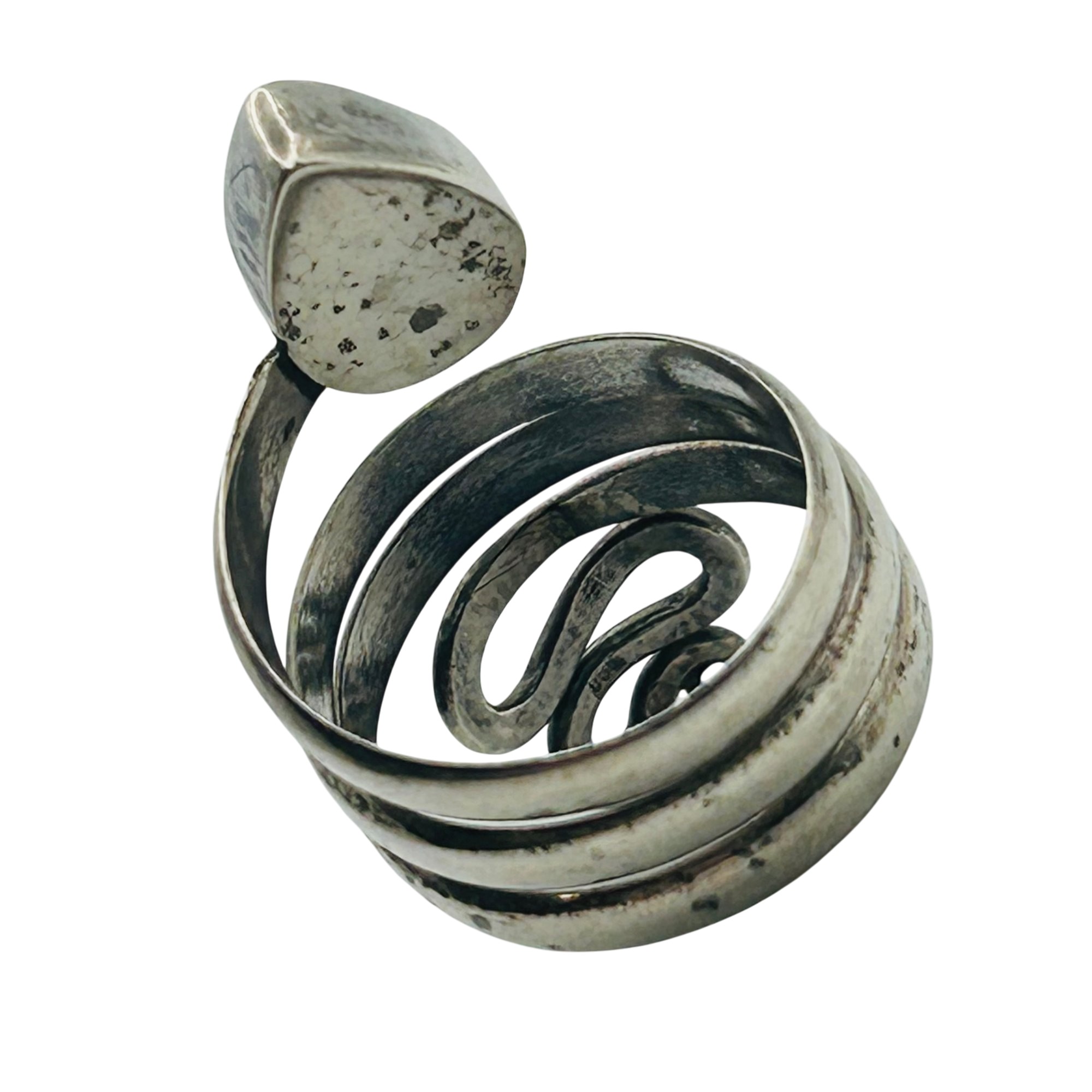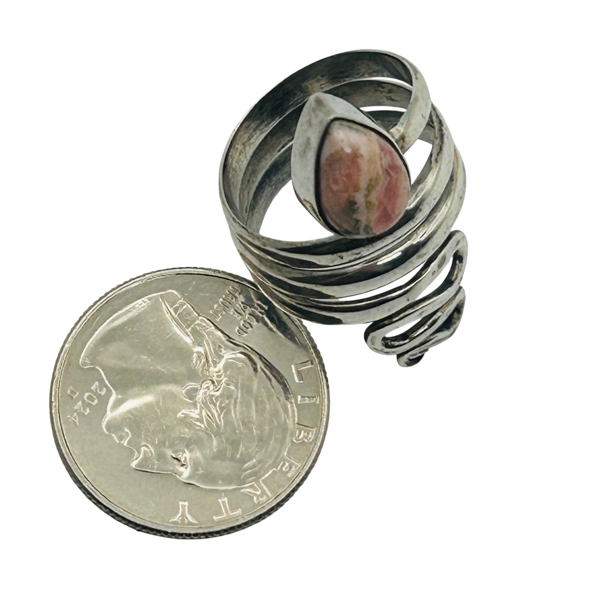 Sterling rhodochrosite adjustable wrap snake ring. 7.60g