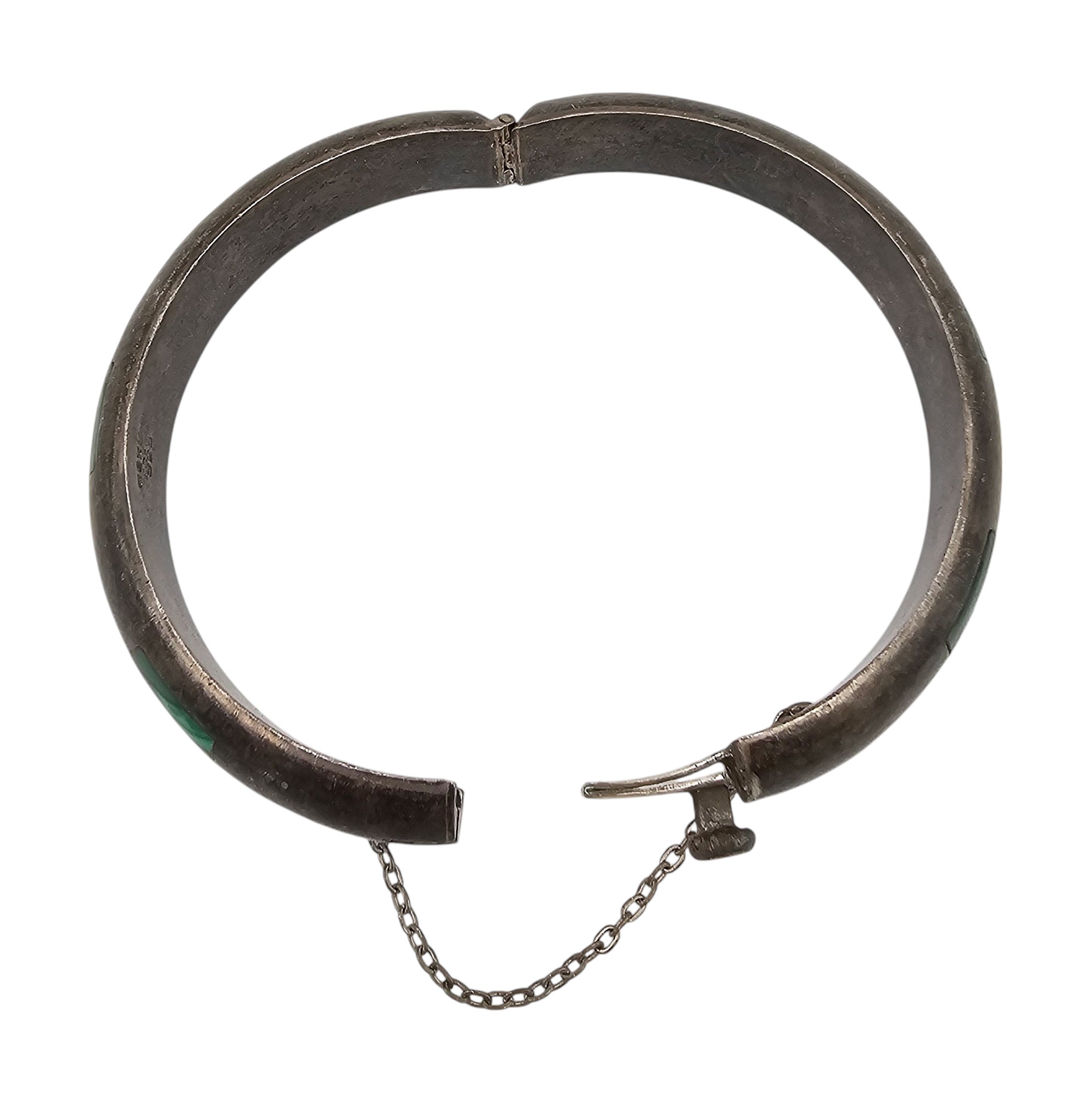 Mexico TC-? Sterling Malachite Hinge Bangle Bracelet 49.1 G