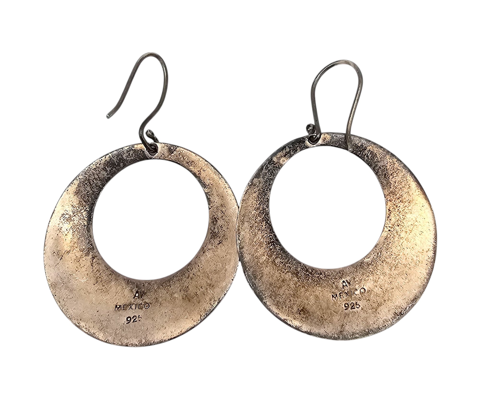 AV Mexico Sterling Hammered Drop Dangle Earrings 10.9 G