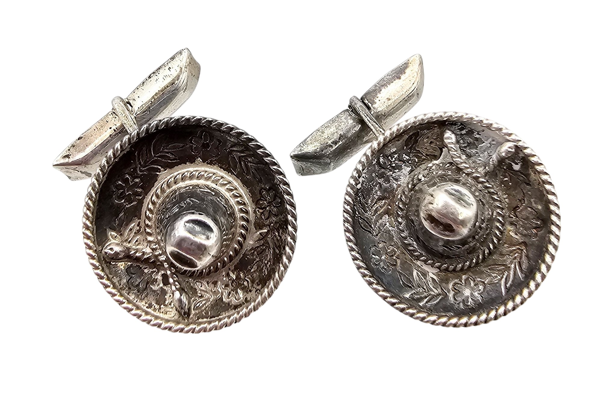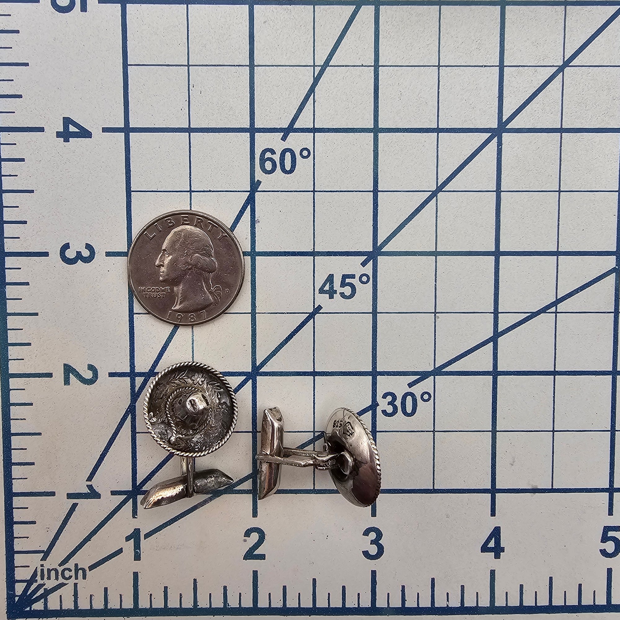 Signed Mexico Sterling Sombrero Hat Cufflinks 9.5 G