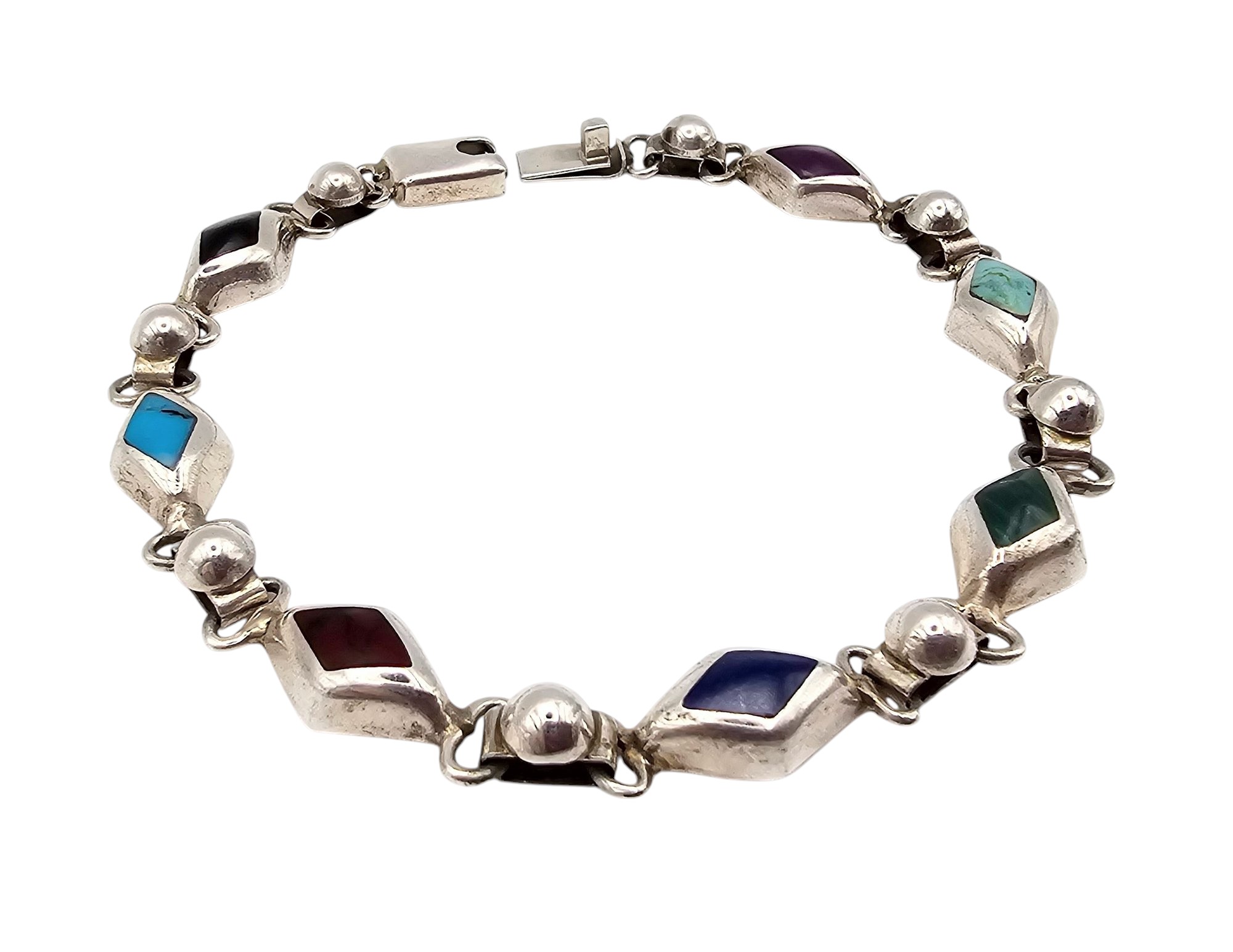 Mexico Sterling Multi Stone Bracelet 22.1 G