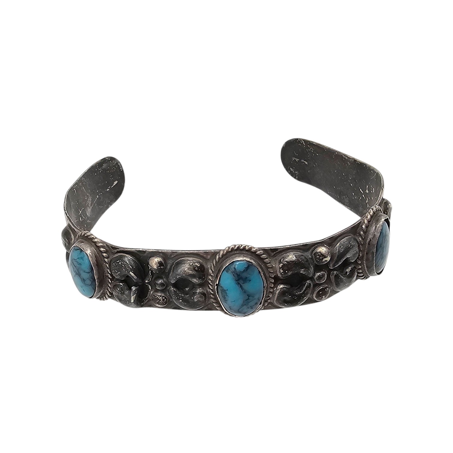 Signed Mexico Sterling Turquoise Cuff Bracelet 12.7 G