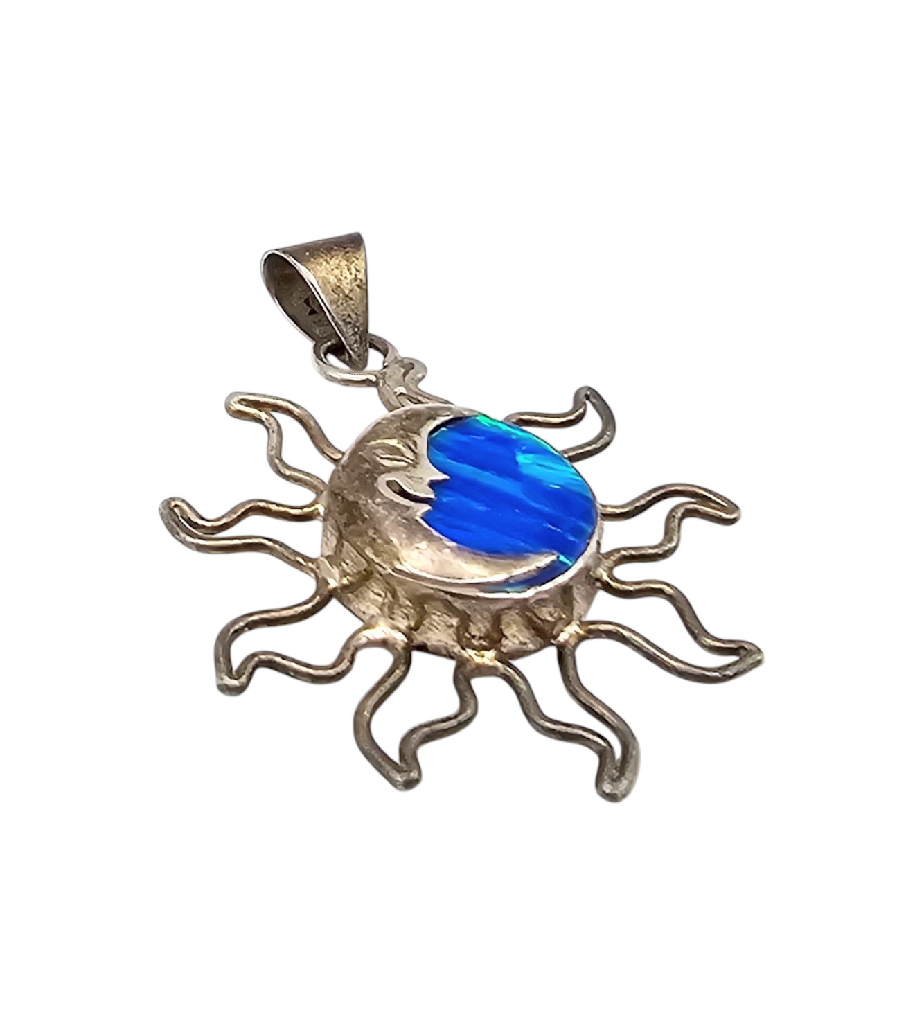 Mexico Sterling Opal Sun Moon Pendant 2 G