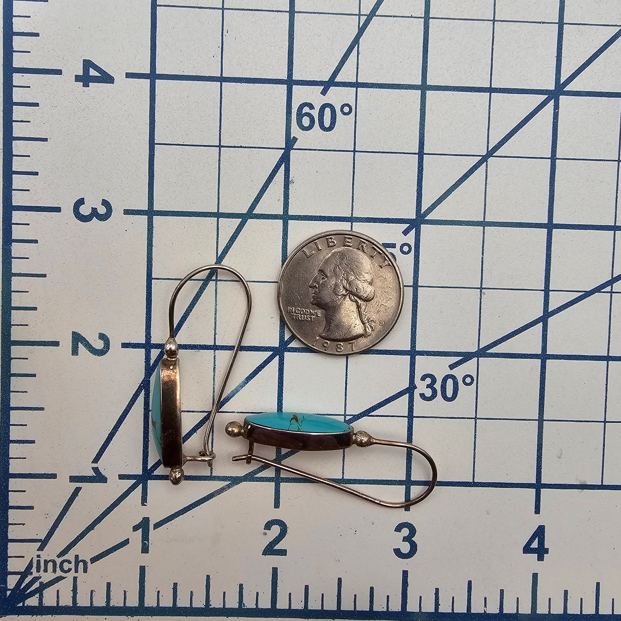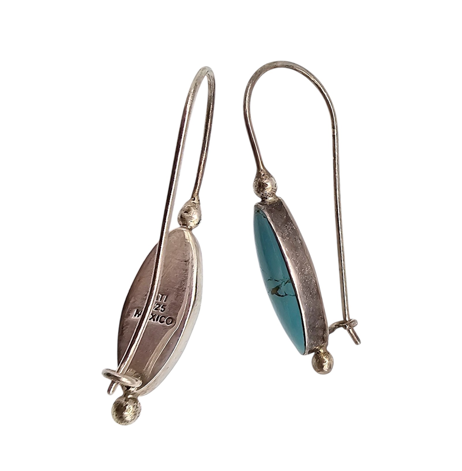 ATI Mexico Sterling Turquoise Drop Dangle Earrings 4.9 G