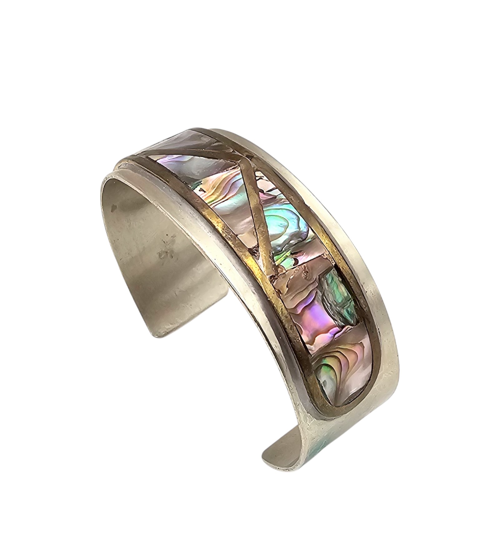Signed Mexico Sterling Abalone Cuff Bracelet 30 G