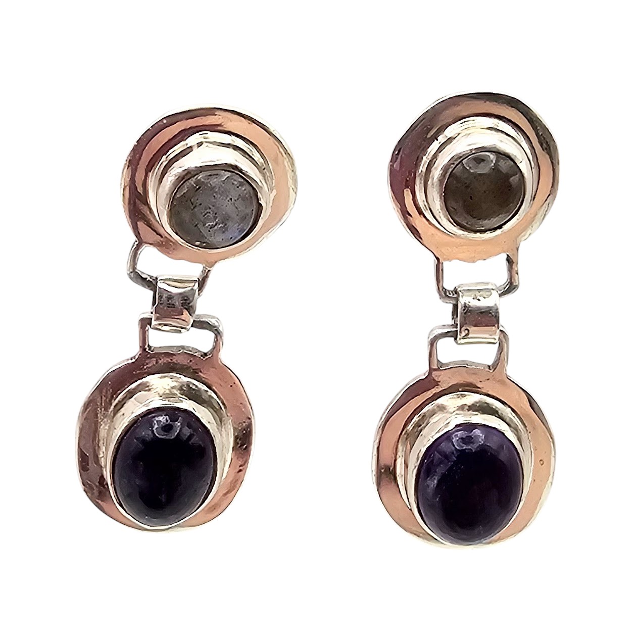 Mexico Sterling Labradorite Amethyst Drop Dangle Earrings