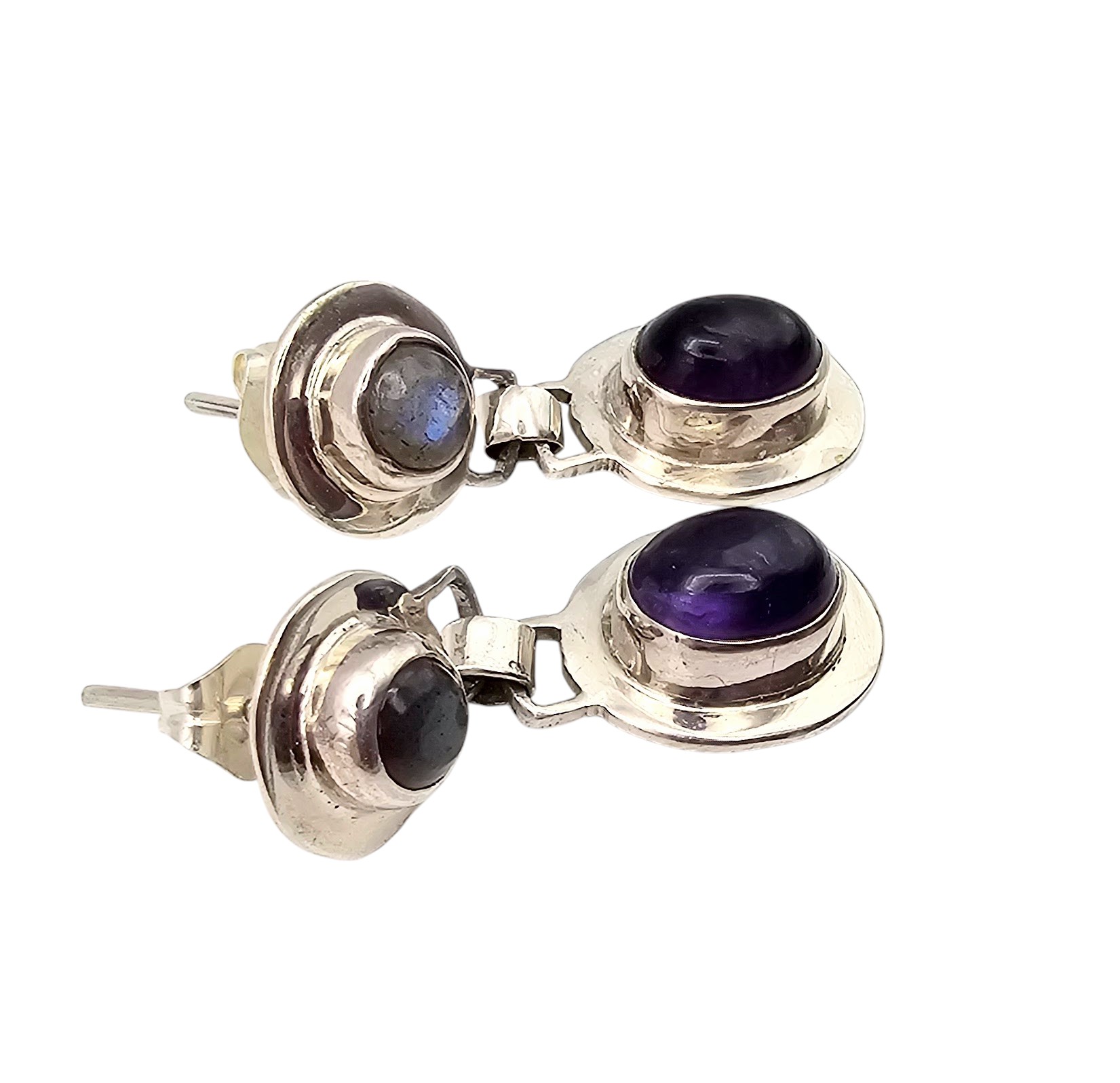 Mexico Sterling labradorite Amethyst Drop Dangle Earrings 5.9 G