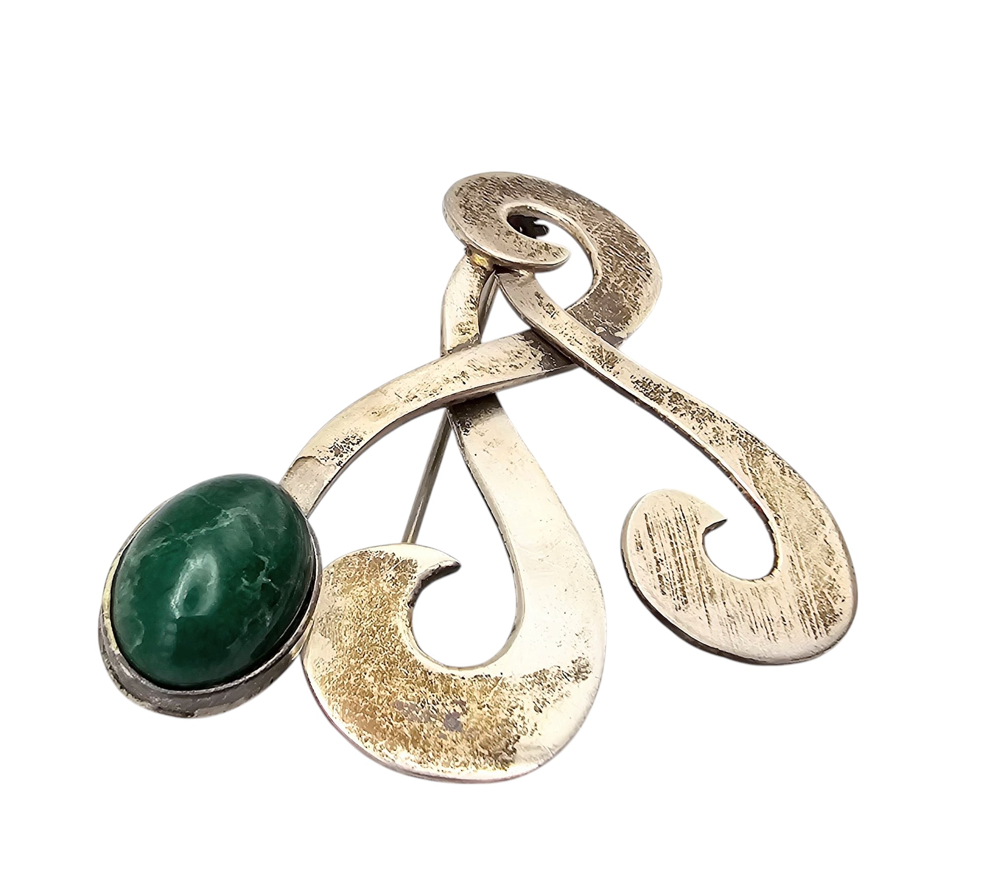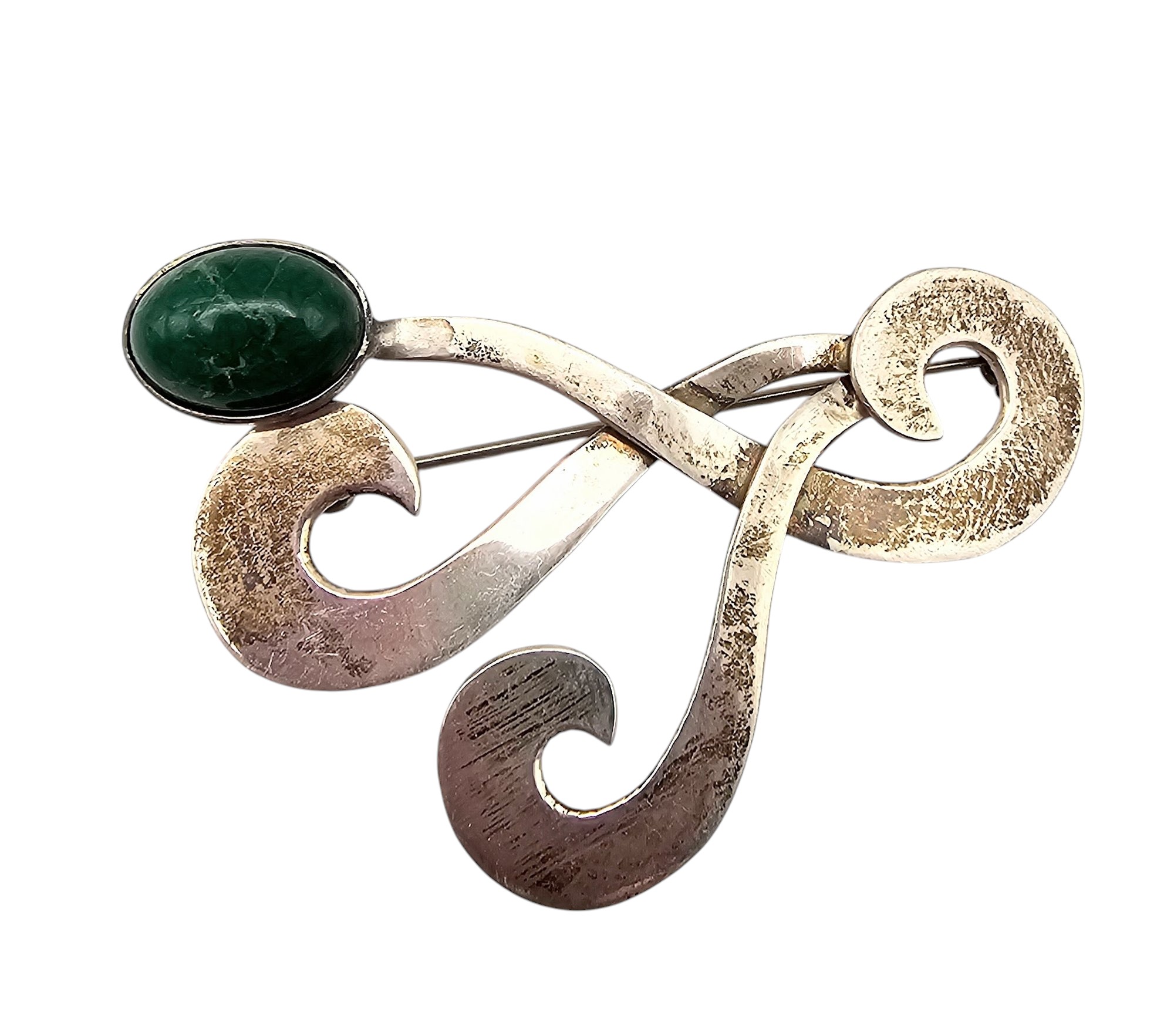 Mexico TD-35 Sterling Malachite Brooch 12.1 G