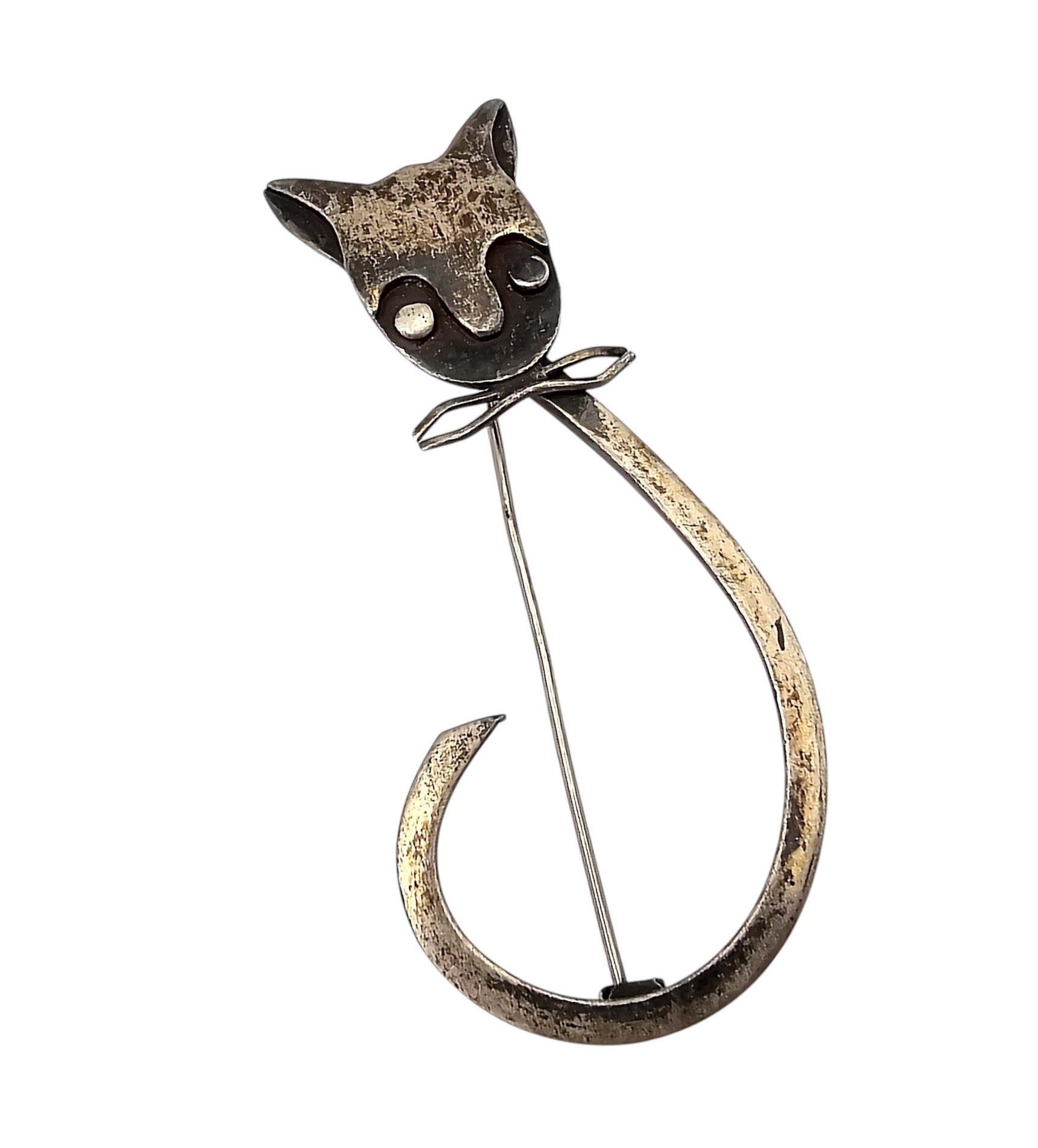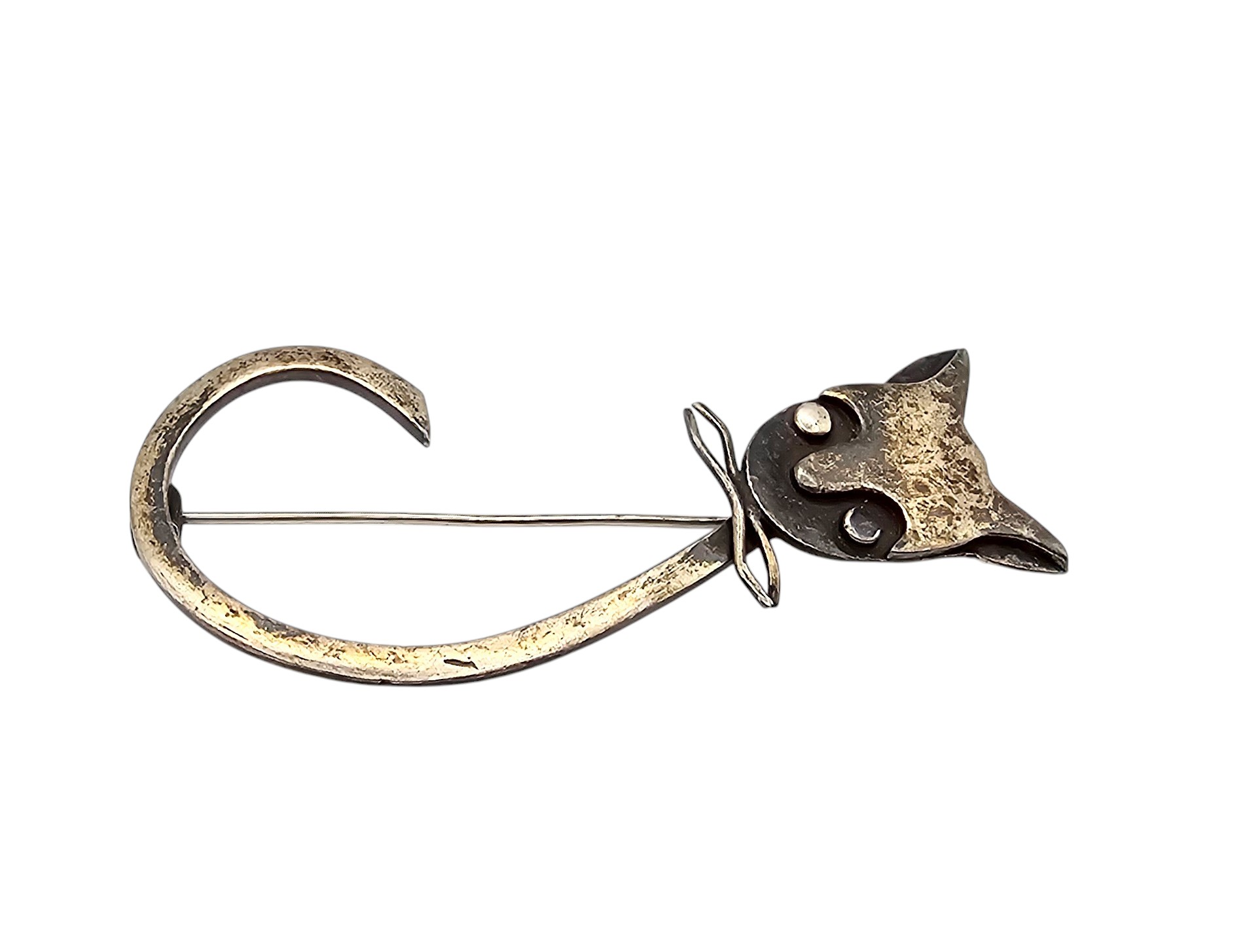 Signed ICJ? Mexico Sterling Cat Brooch 5.7 G