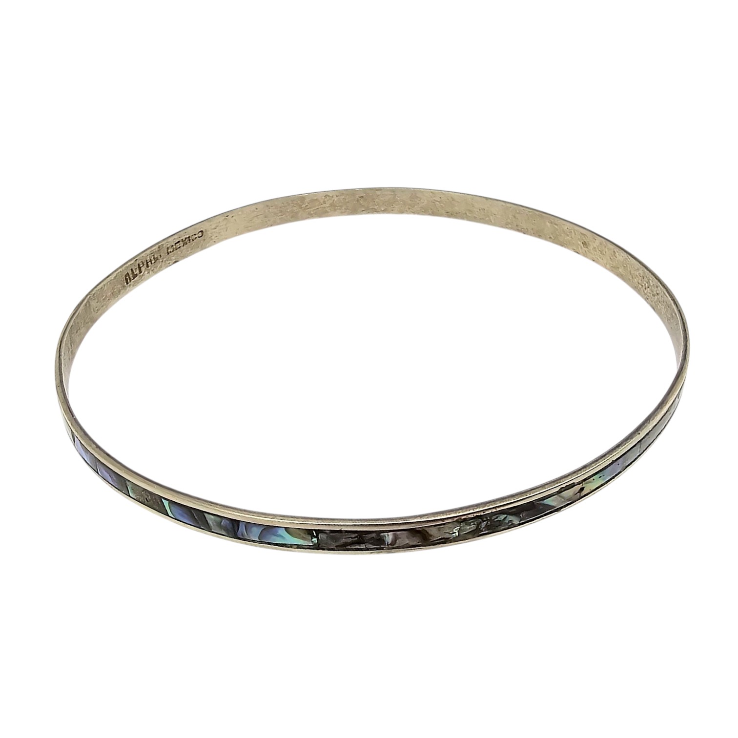 Mexico Alpaca Silver Abalone Bangle Bracelet