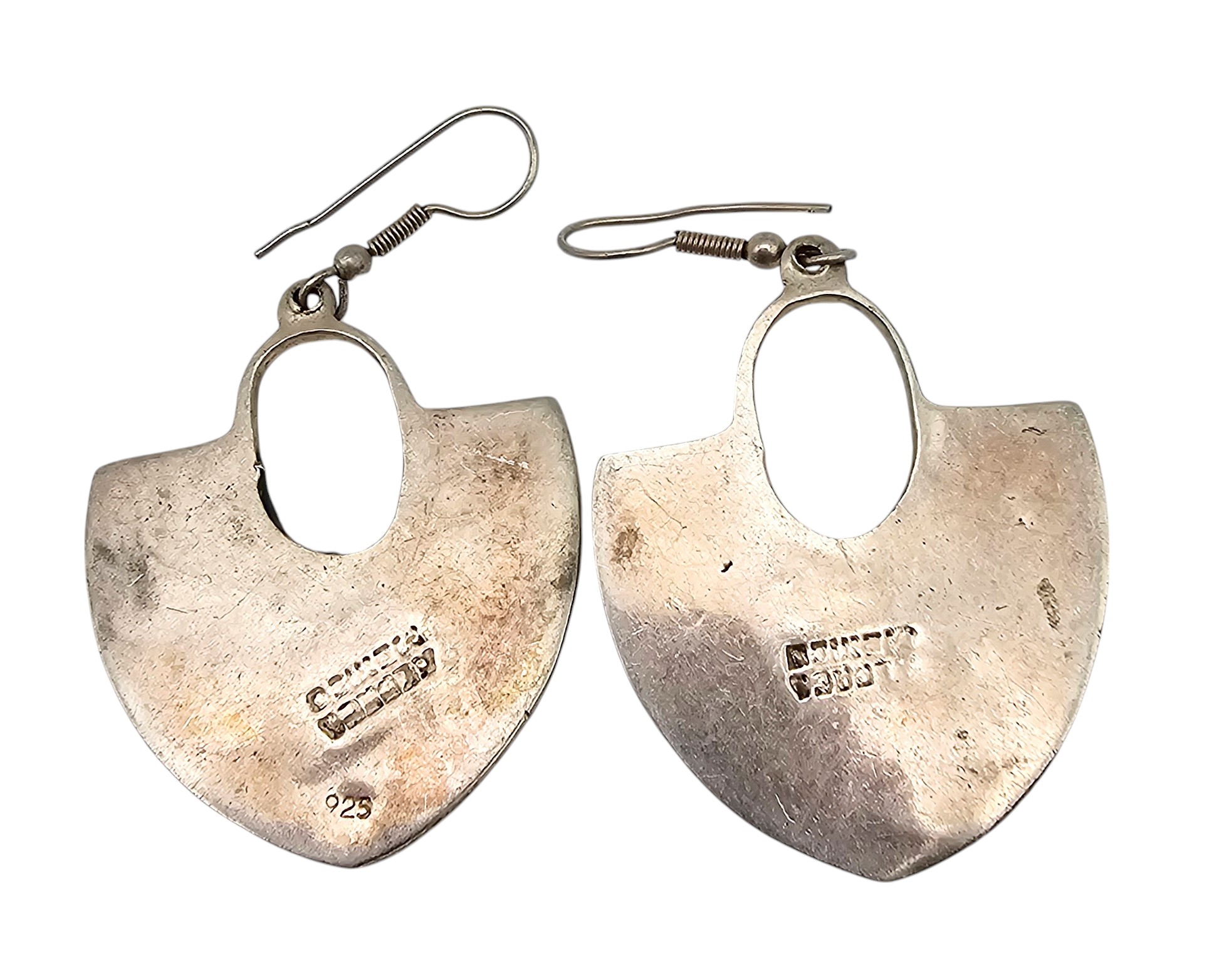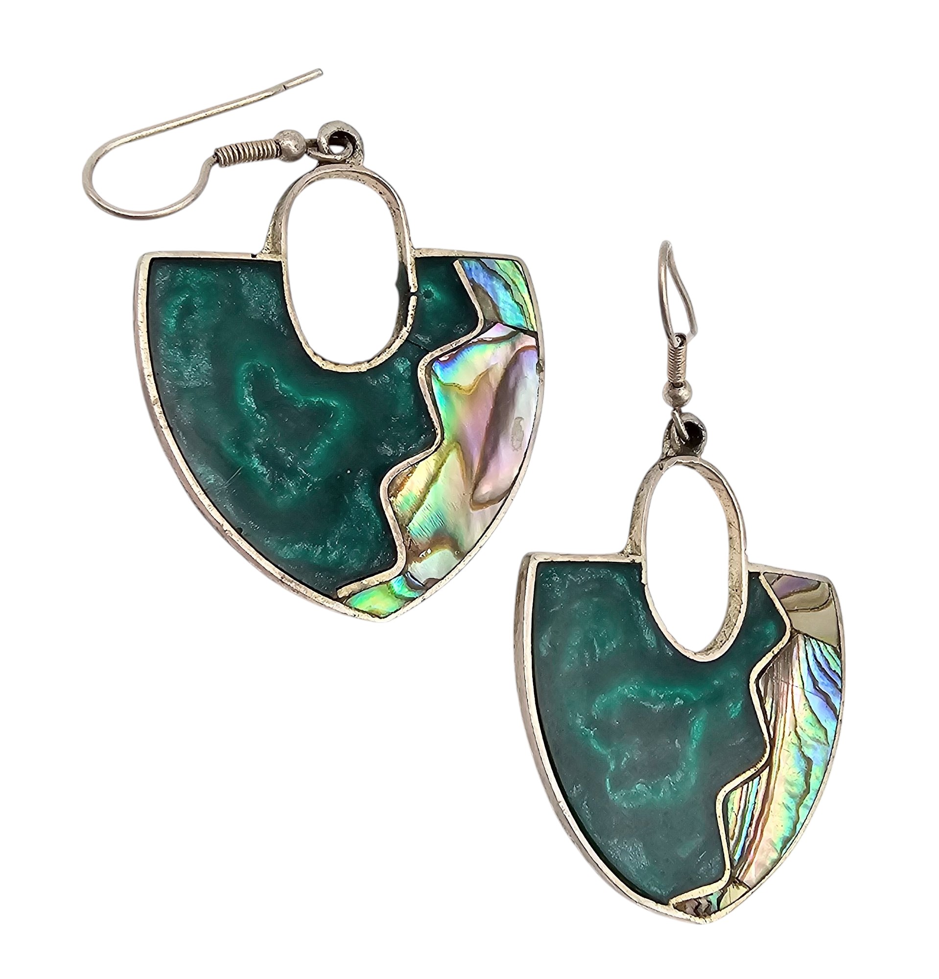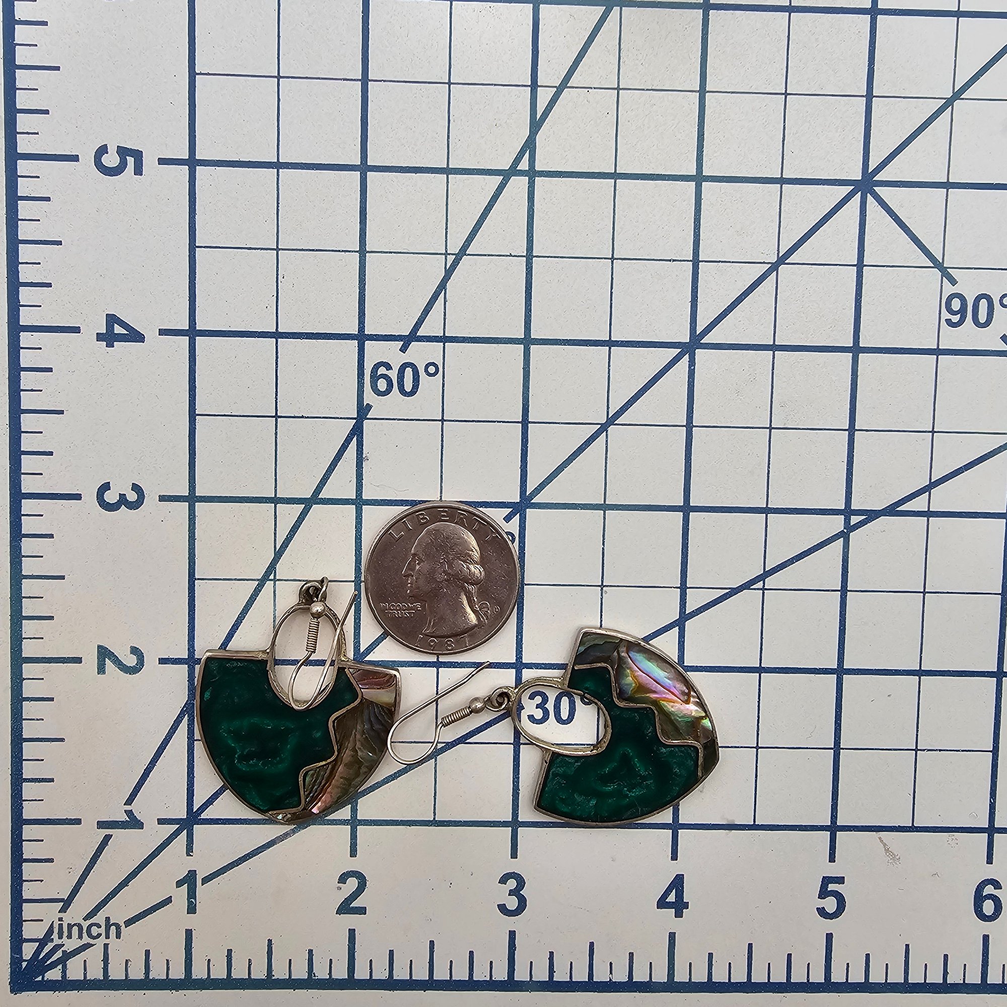 Mexico Alpaca Silver Malachite Abalone Drop Dangle Earrings 9.3 G