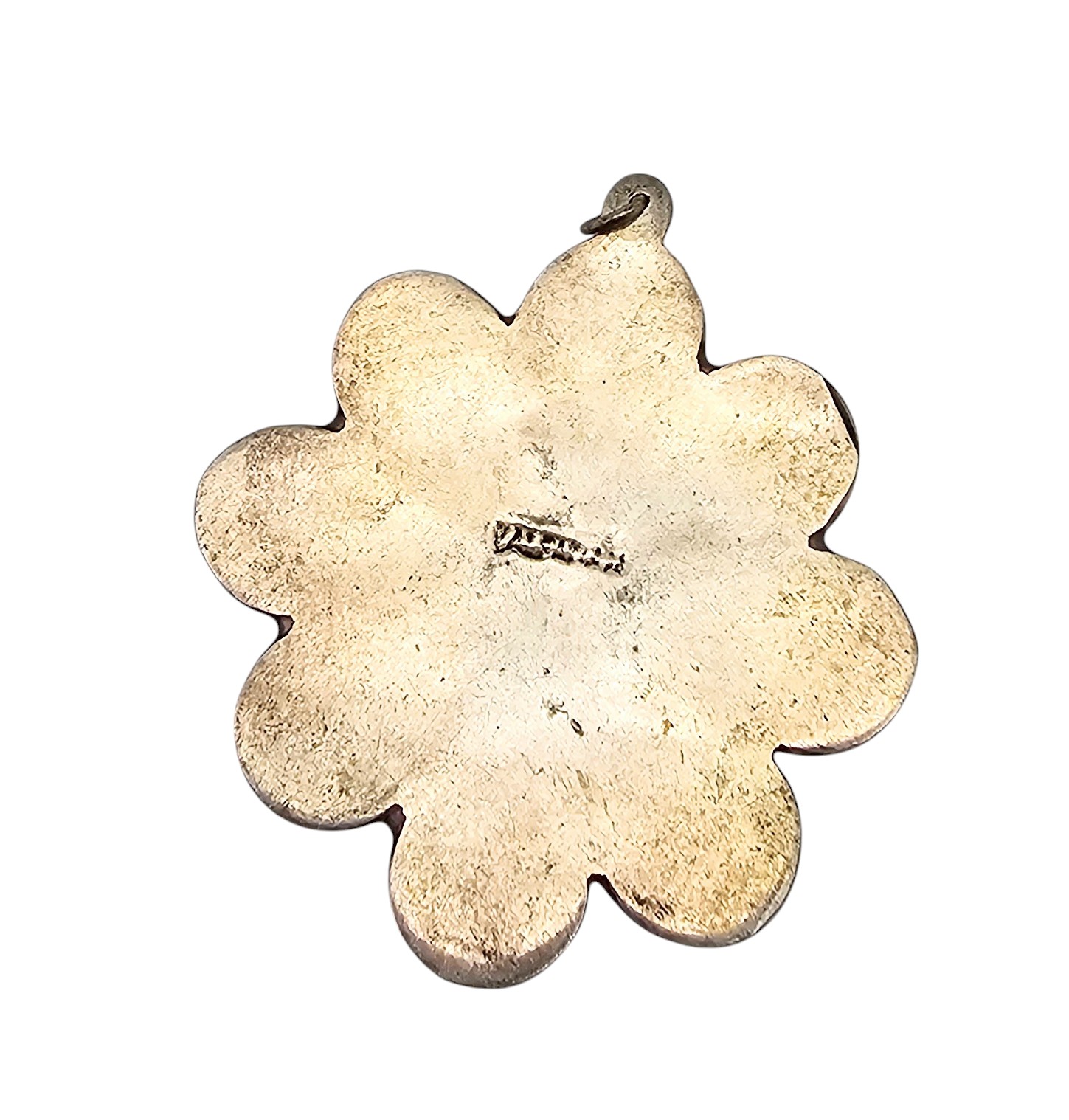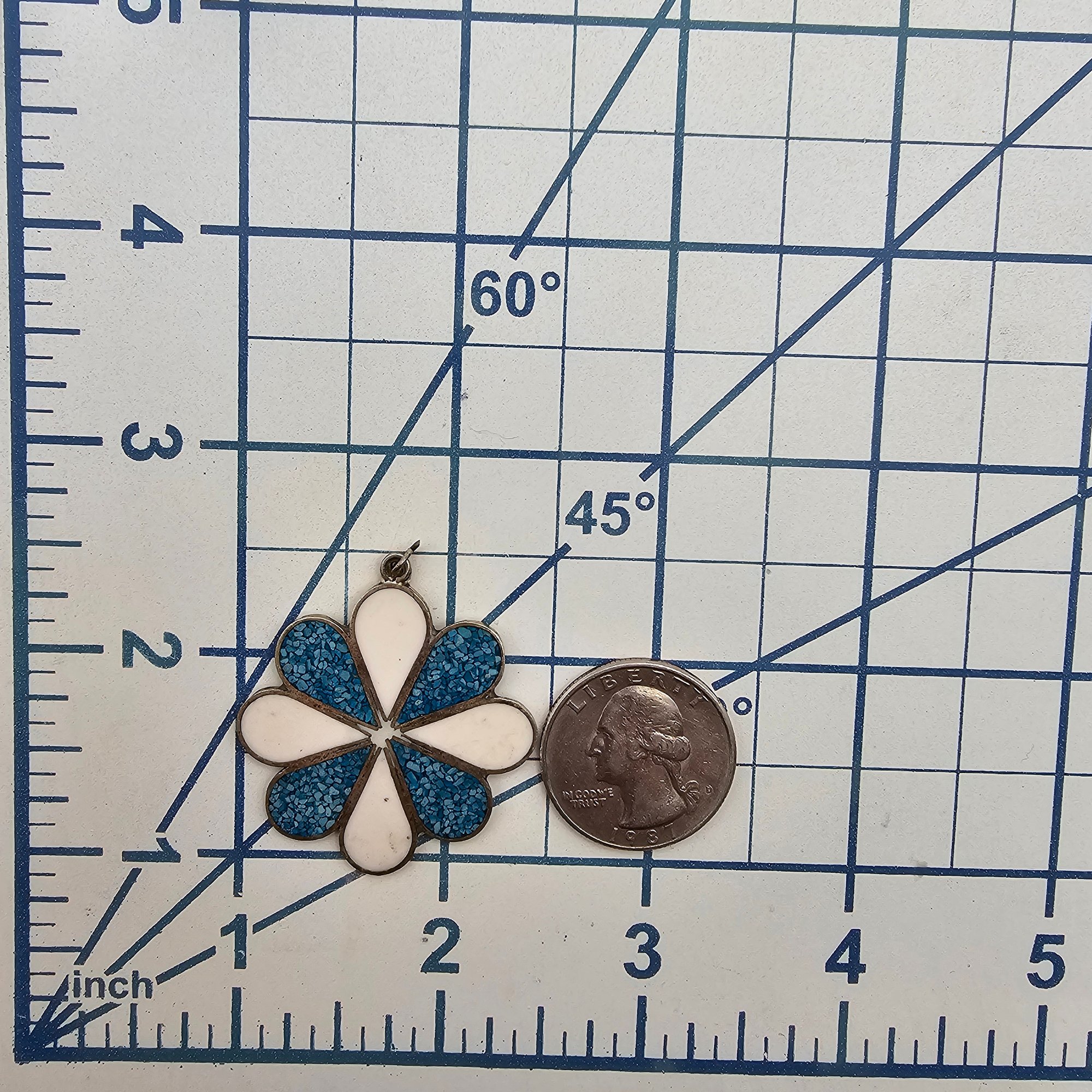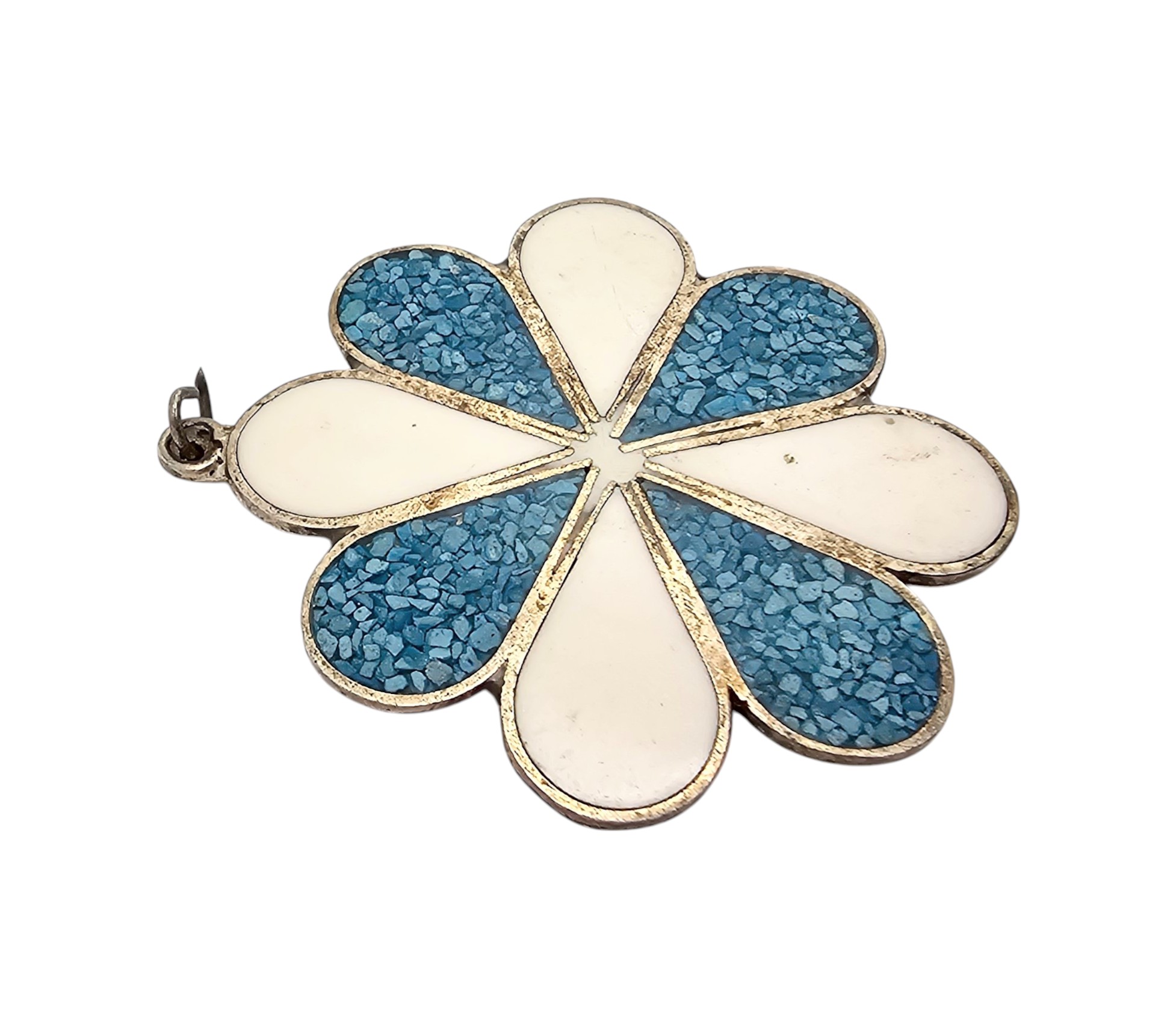 Mexico Alpaca Silver Crushed Turquoise Enamel Flower Pendant 4.8 G
