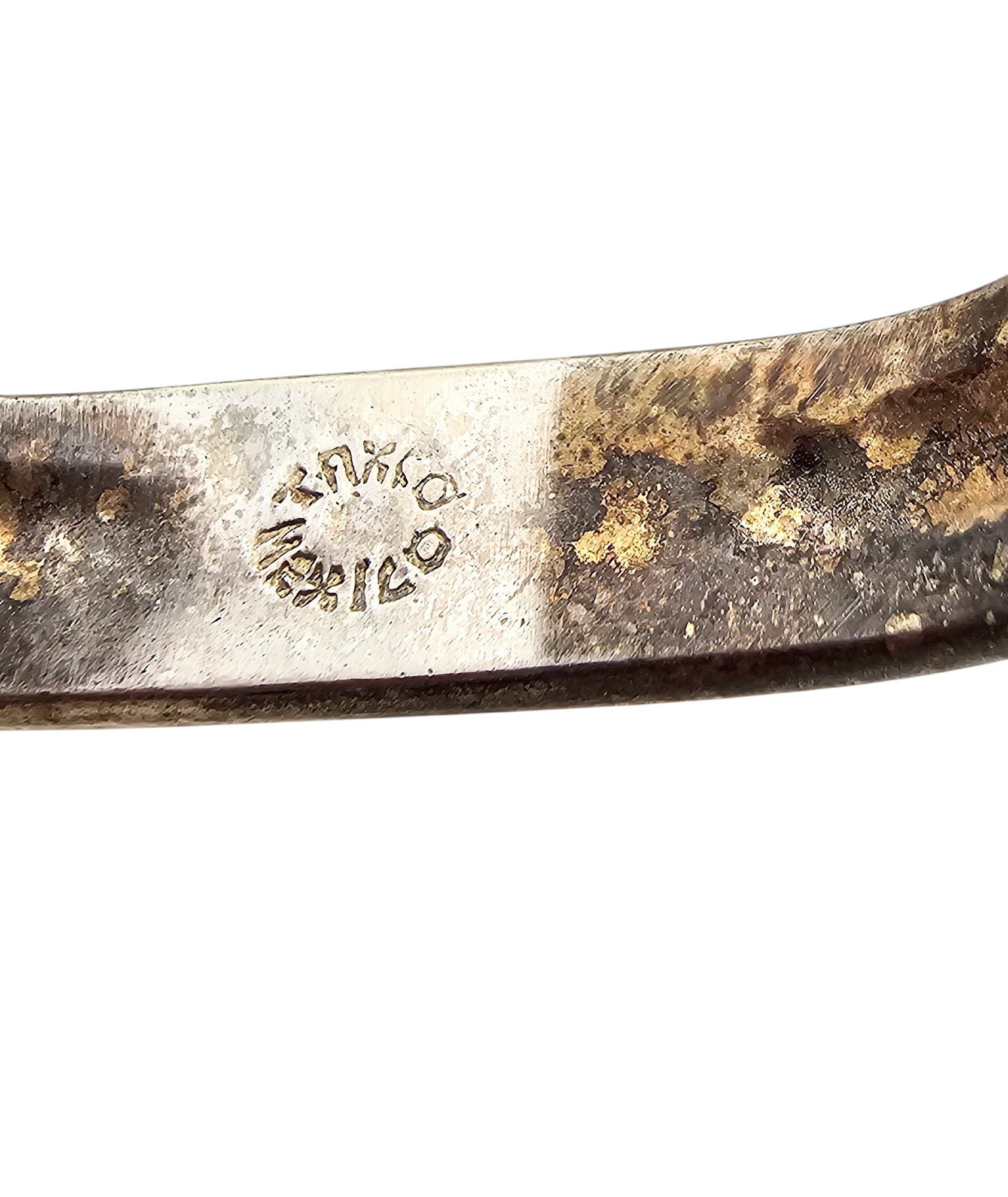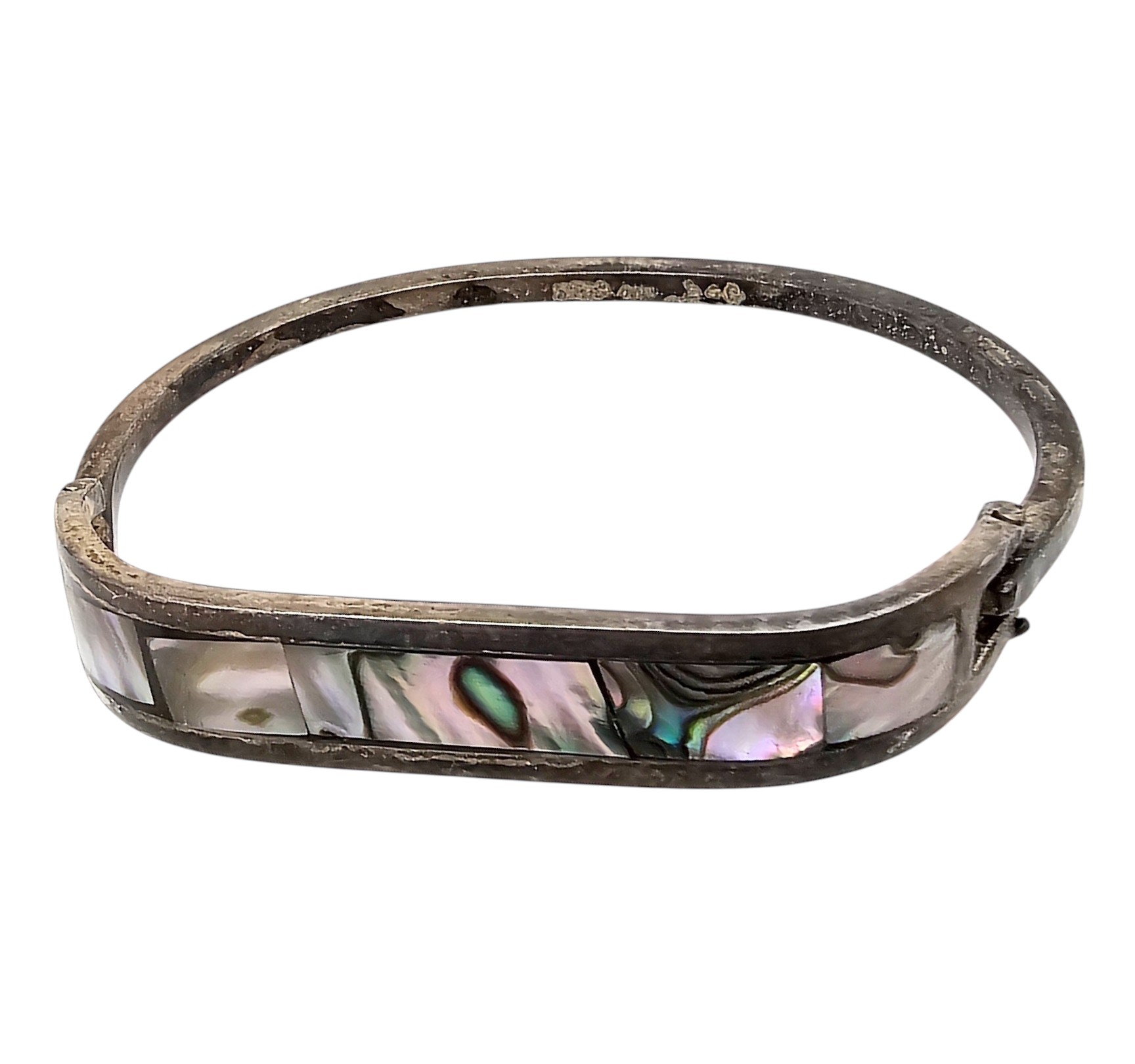 Mexico Taxco Sterling Abalone Eye Hook Bangle Bracelet 14.1 G