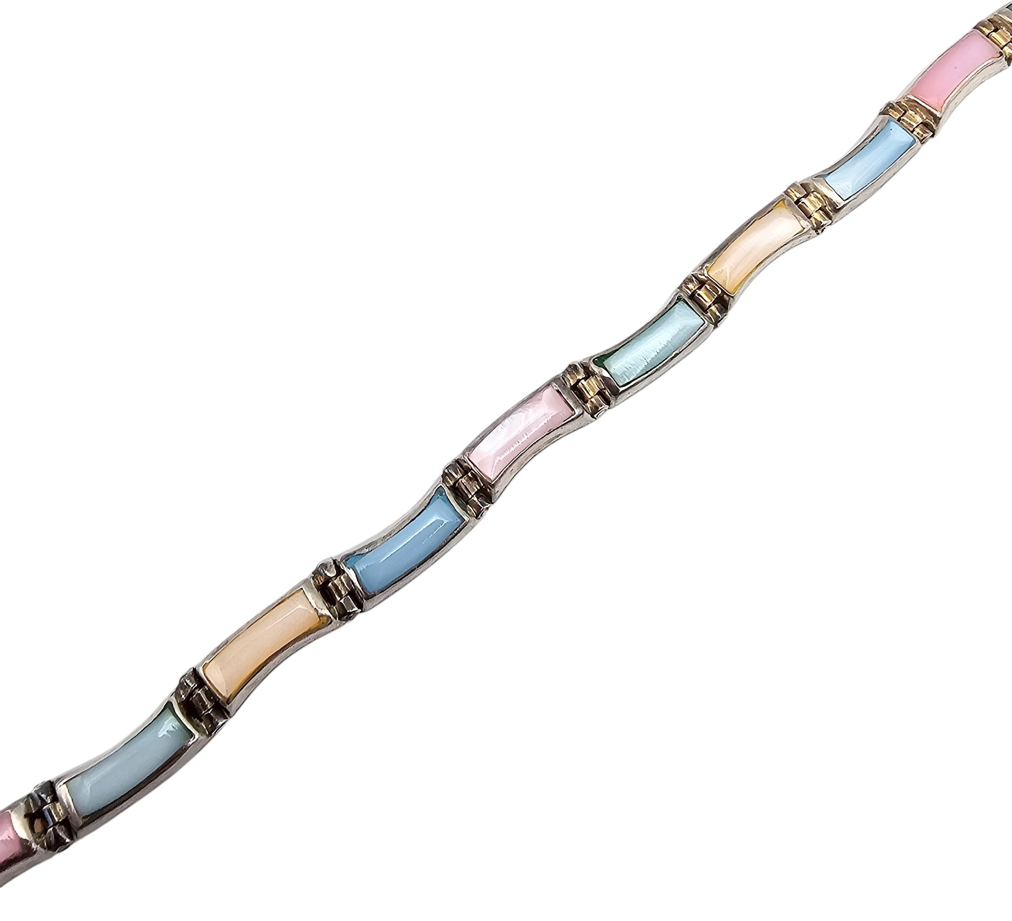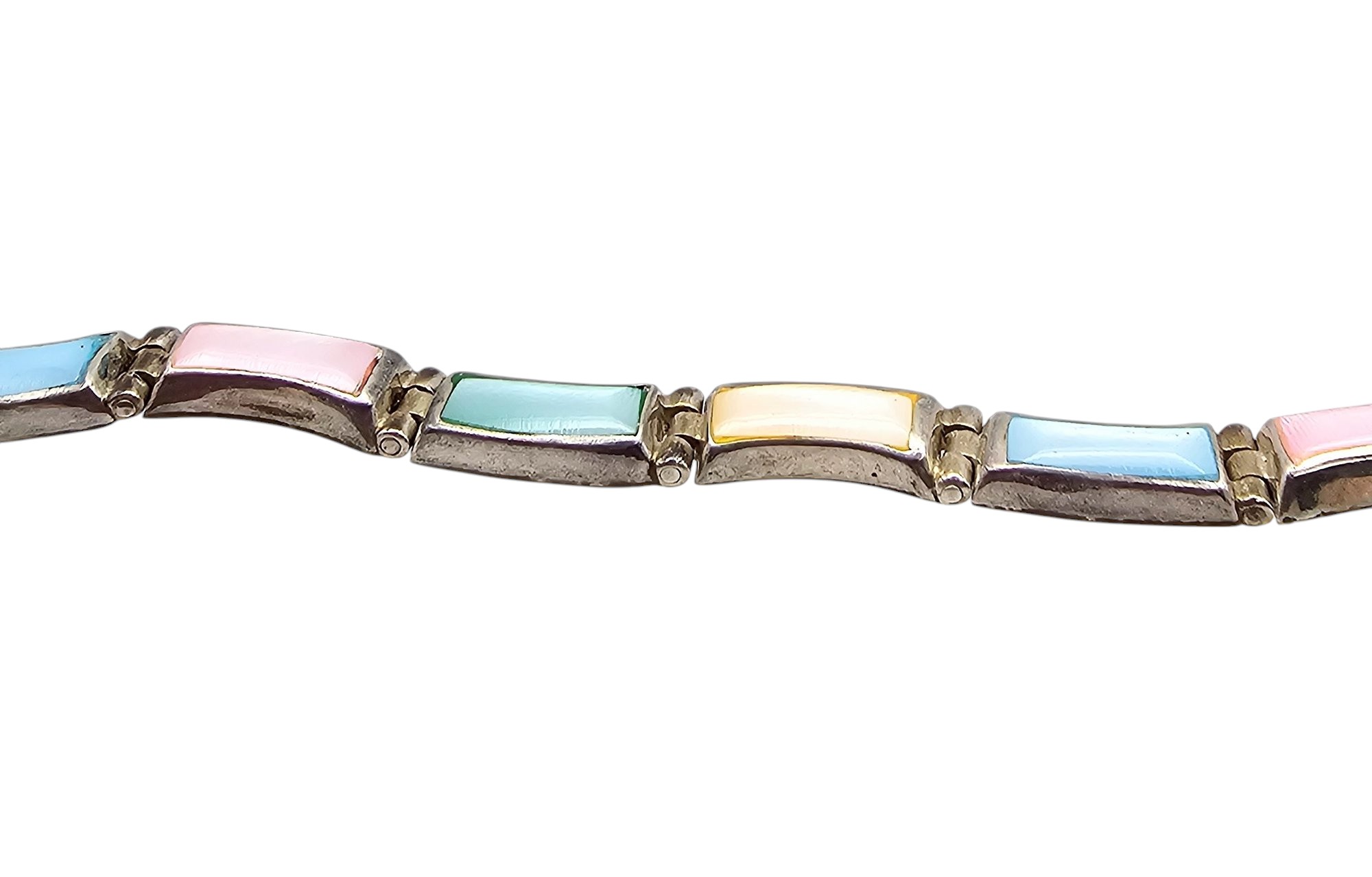 Mexico Sterling Mother Of Pearl Hinge Link Bracelet