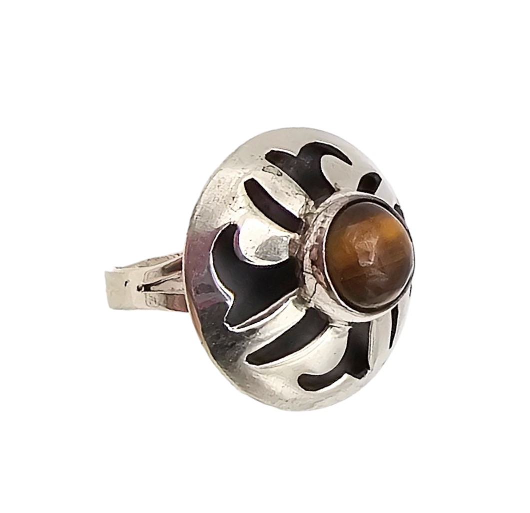 Margarita Vera Laguna Sterling Tiger’s Eye Shadow Box Ring Size 6.25 4.8 G