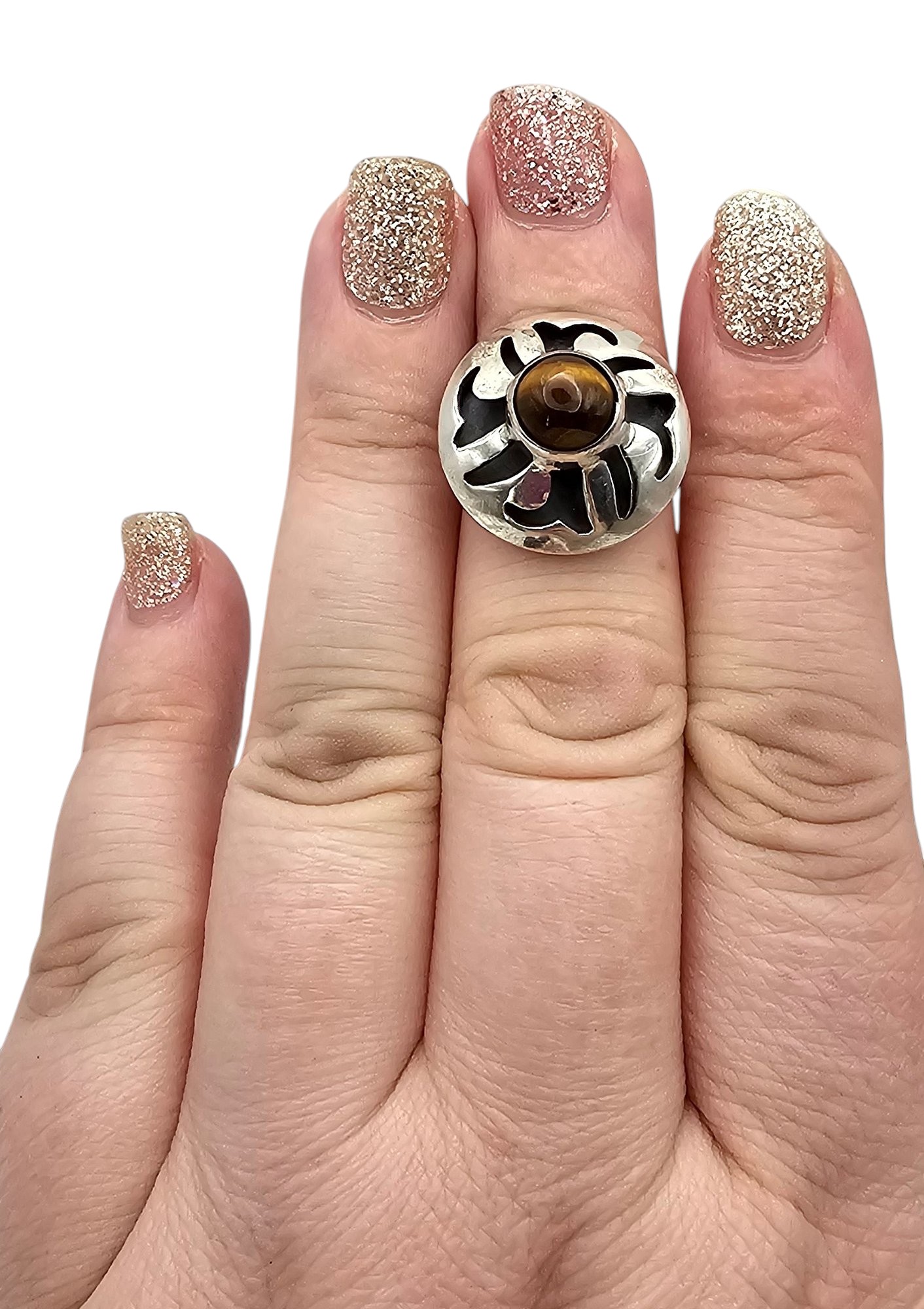 Margarita Vera Laguna Sterling Tiger's Eye Shadow Box Ring Size 6.25