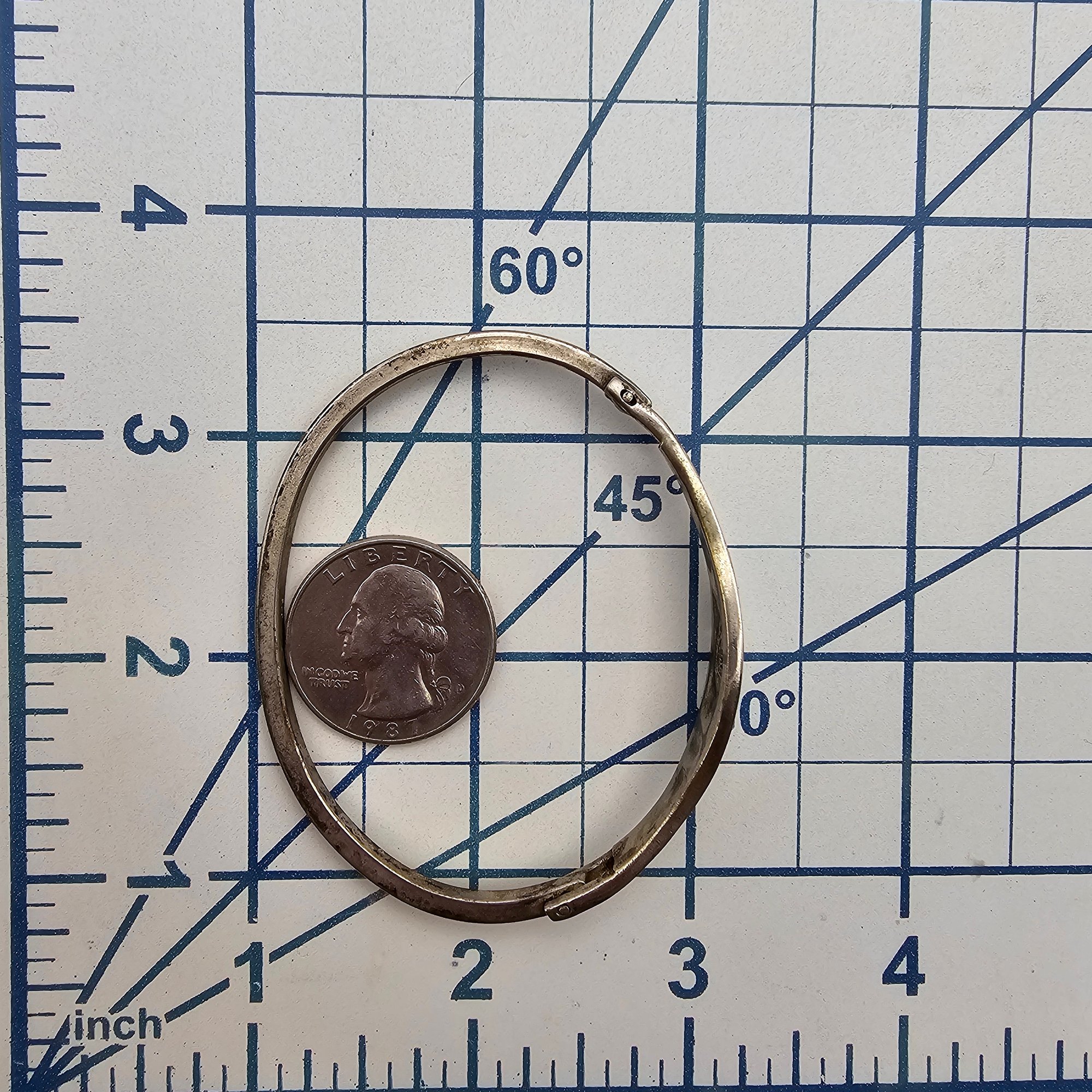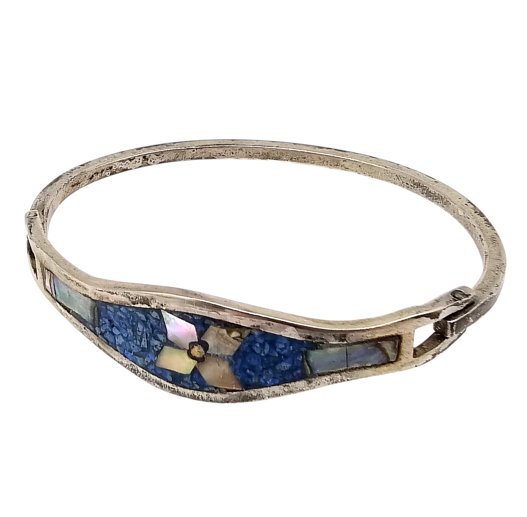 Mexico Taxco Sterling Crushed Turquoise Abalone Eye Hook Bangle Bracelet 13.6 G